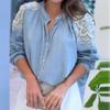 Camisa de manga larga elegante con cuentas, holgada, de cuello redondo, de color sólido, estilo Amazon, para mujer, otoño de 2024, estilo europeo y americano.