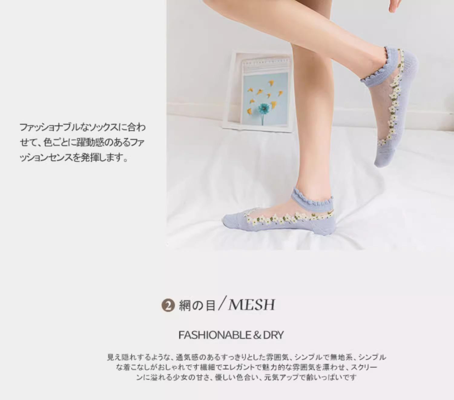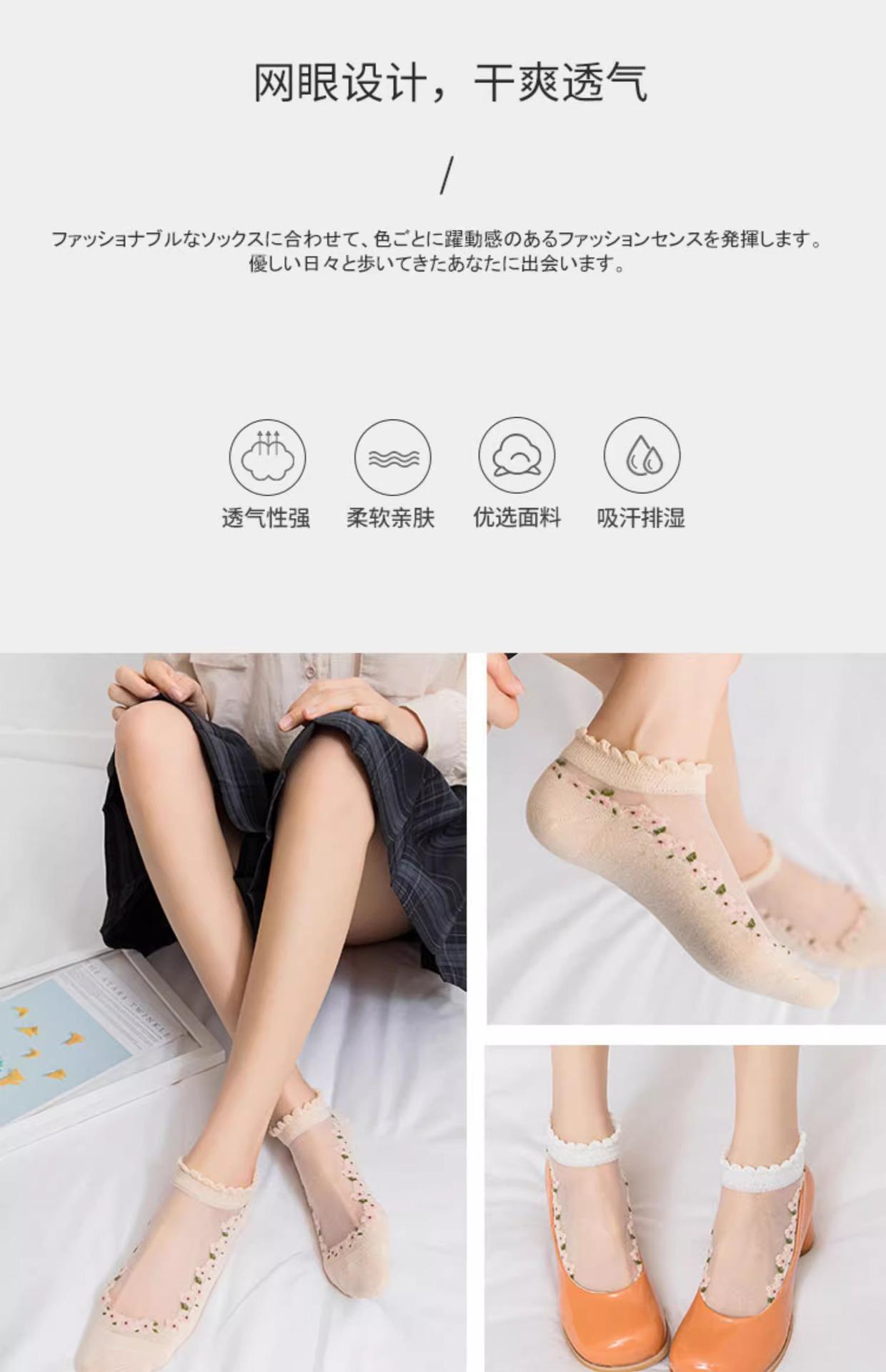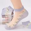 Calcetines de cristal para mujer de verano delgados crisantemo pequeño ins calcetines cortos para mujer de corte bajo desodorantes transpirables calcetines invisibles tipo barco
