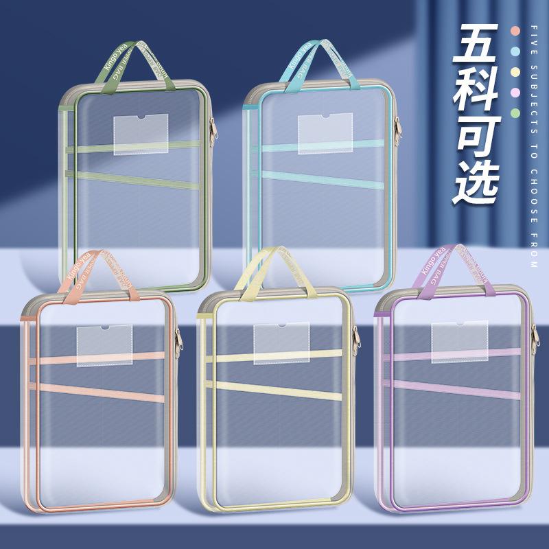 Bolsa Portafolios A4 Portátil Clasificación para Estudiantes Malla Multicapa Bolsa para Archivos Transparente en Forma de L Gran Capacidad Bolsa para Guardar Libros
