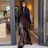 Otoño 2024 Nuevo conjunto de dos piezas de vestido de media longitud de satén de color sólido de alta calidad para mujer de Amazon transfronterizo europeo y americano