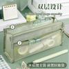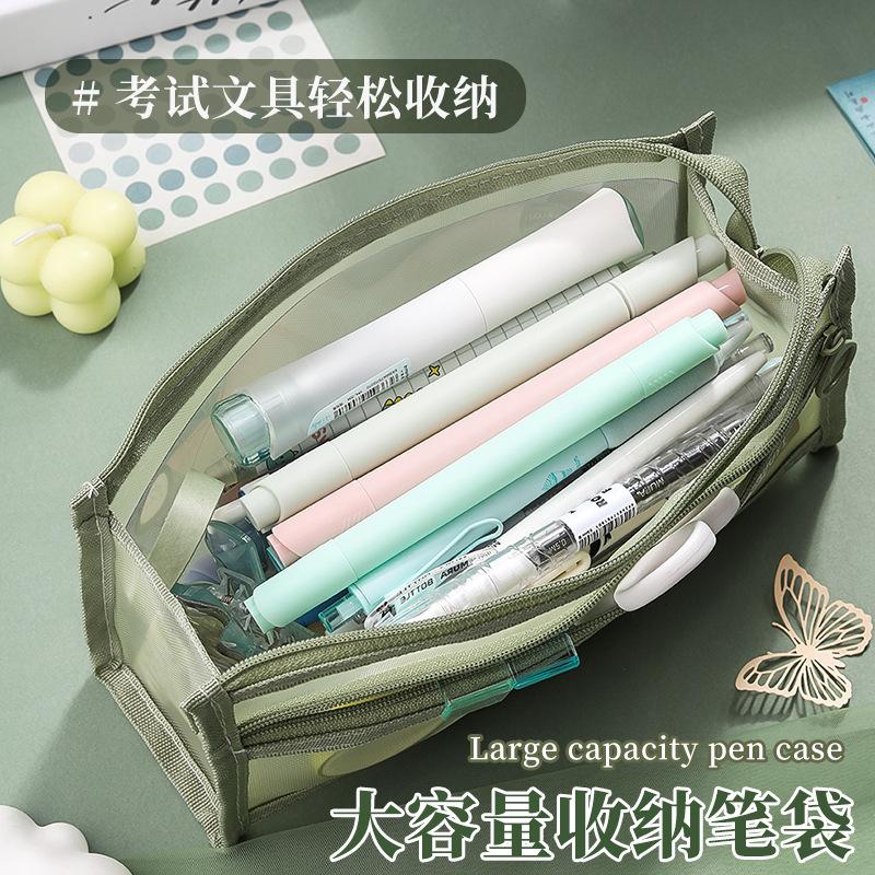 Estuche Morandi estilo Ins, sencillo, transparente, de malla, doble capa, gran capacidad, para exámenes de estudiantes, con cremallera, bolsa de almacenamiento de papelería