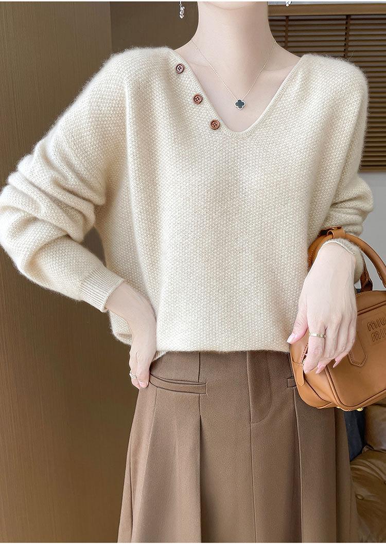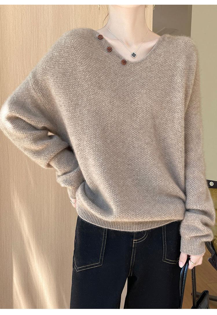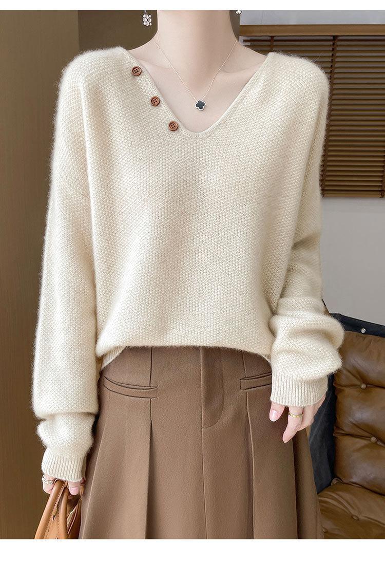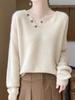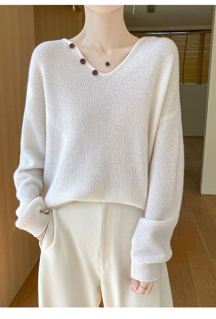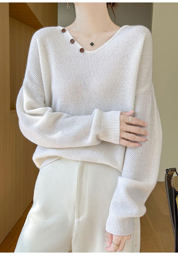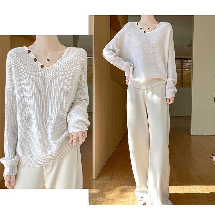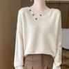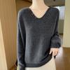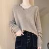 Suéter de Lana para Mujer Otoño e Invierno 2025, Cuello en V Corazón, Color Sólido, Versátil, Suave y Holgado, Suéter Base de Punto Cachemira