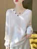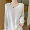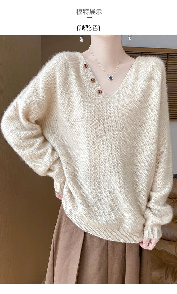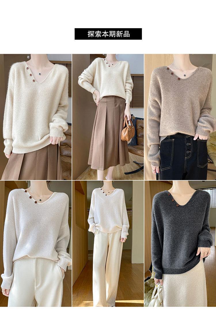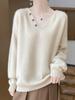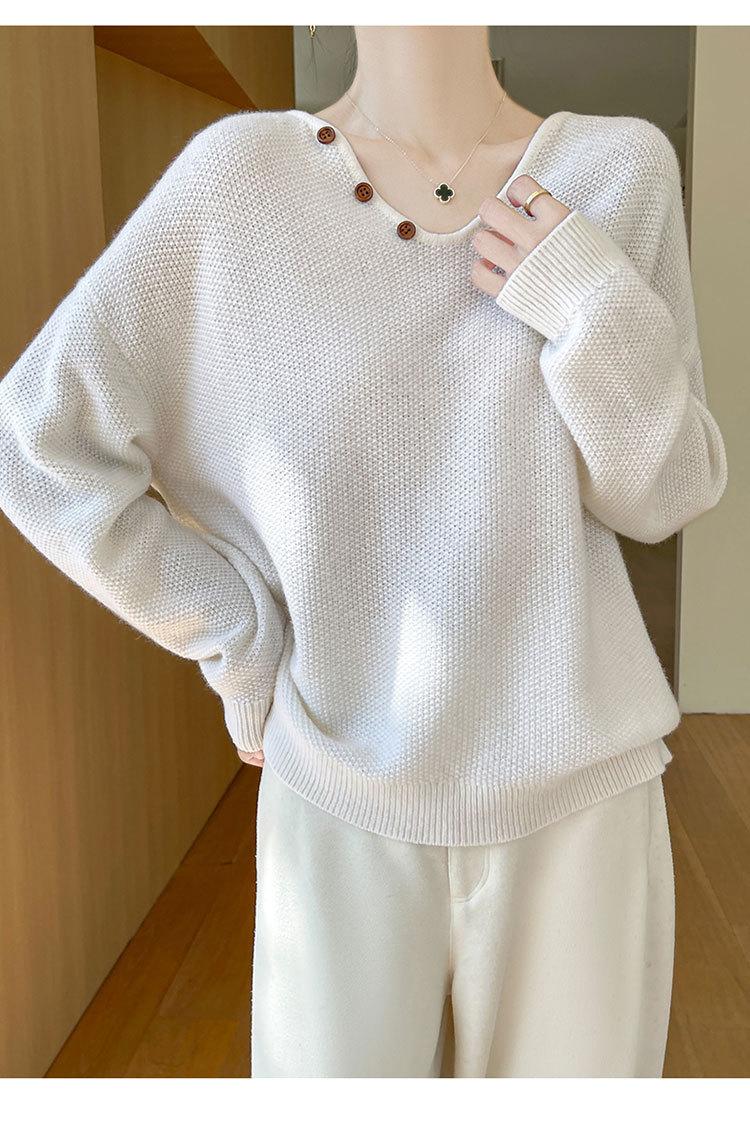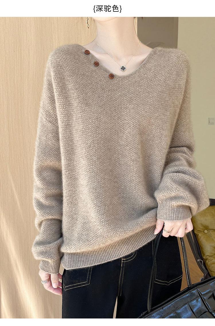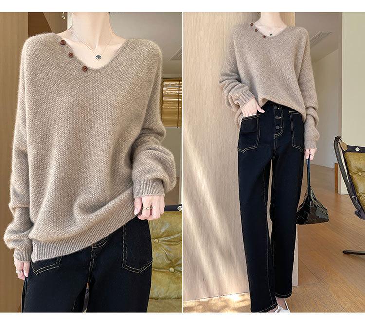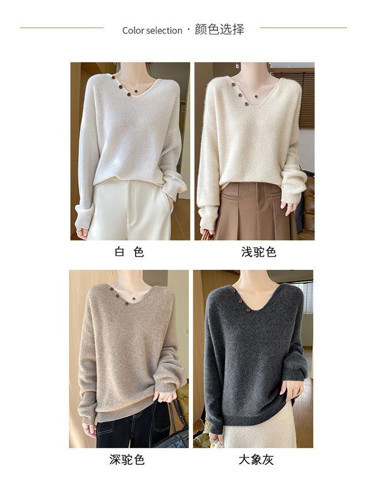 Suéter de Lana para Mujer Otoño e Invierno 2025, Cuello en V Corazón, Color Sólido, Versátil, Suave y Holgado, Suéter Base de Punto Cachemira