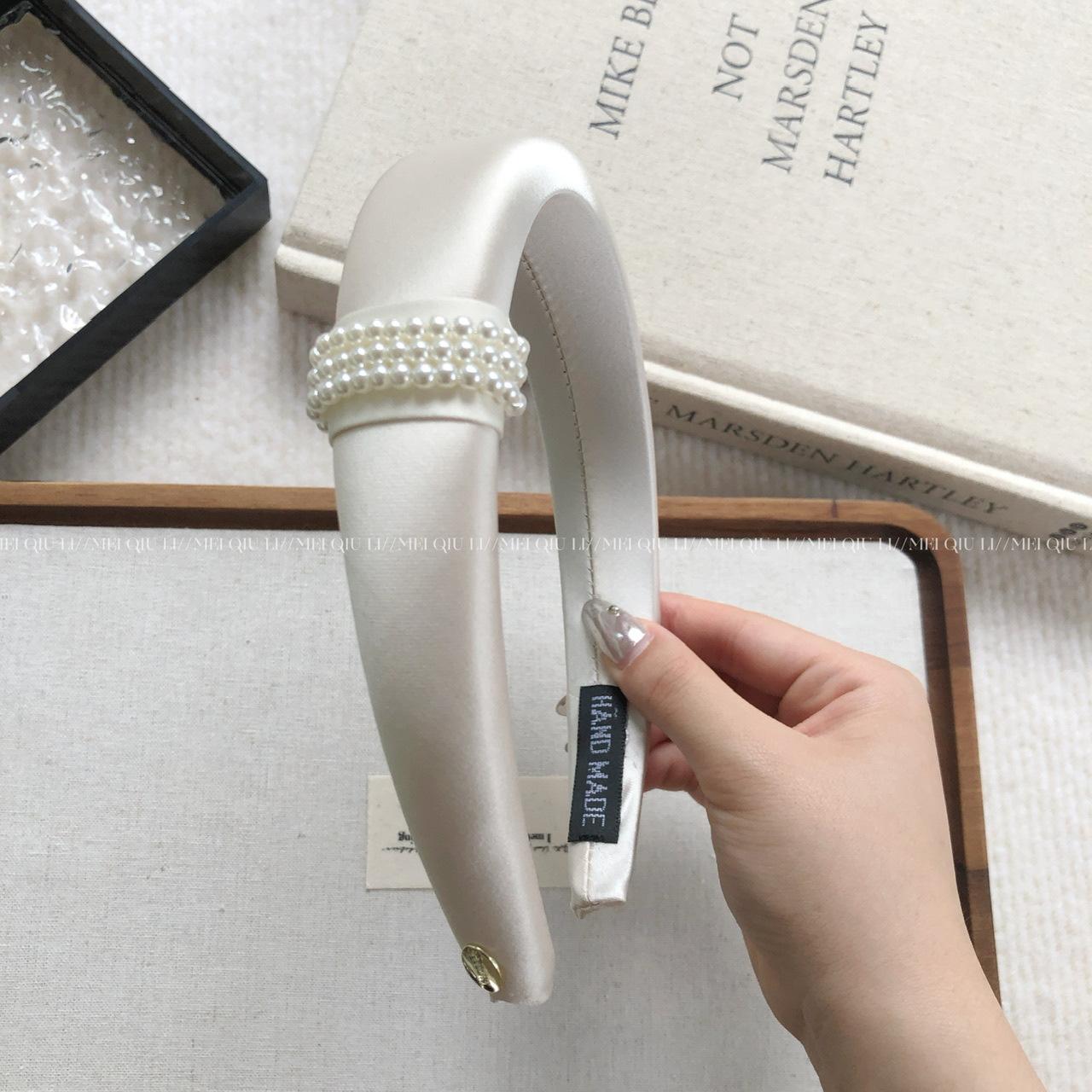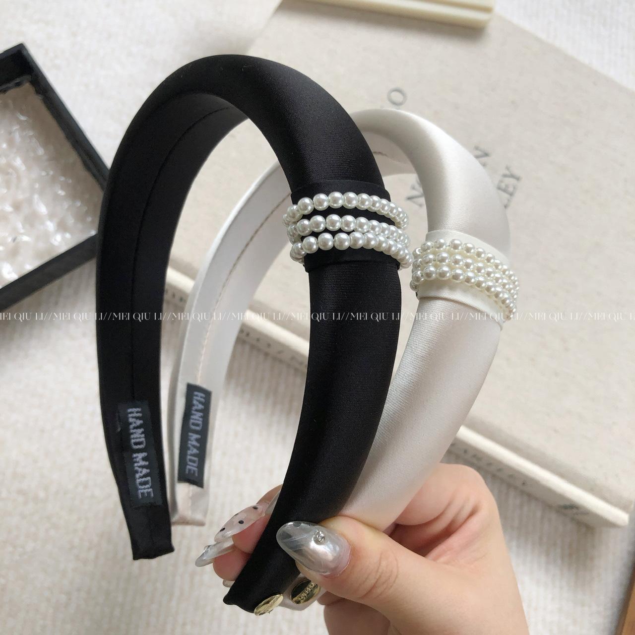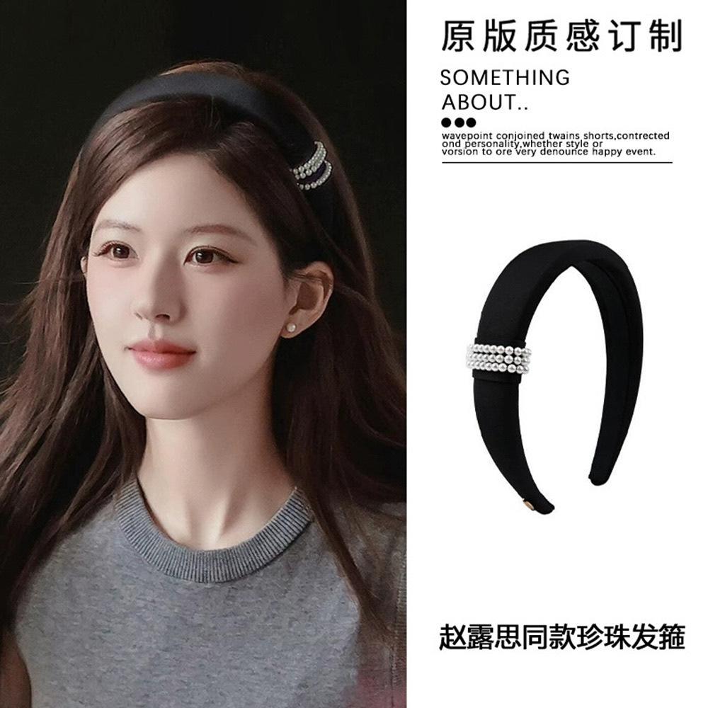 Xu I Deslumbrante Zhao Lusi Mismo Estilo Lujo Ligero Banda para el Cabello de Perlas Alto Sentido Xu Yan Estilo Extranjero Diadema para la Parte Superior Craneal Alta Sombrerería para Mujeres