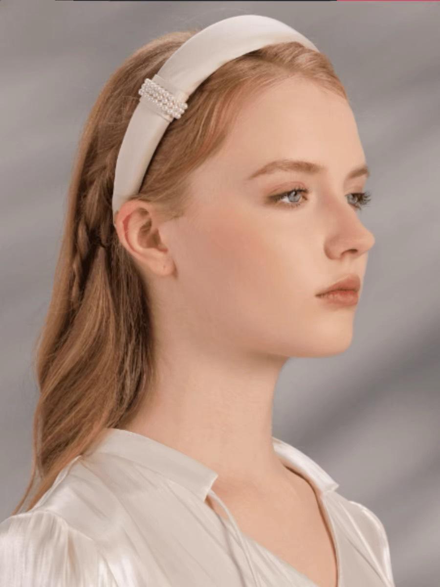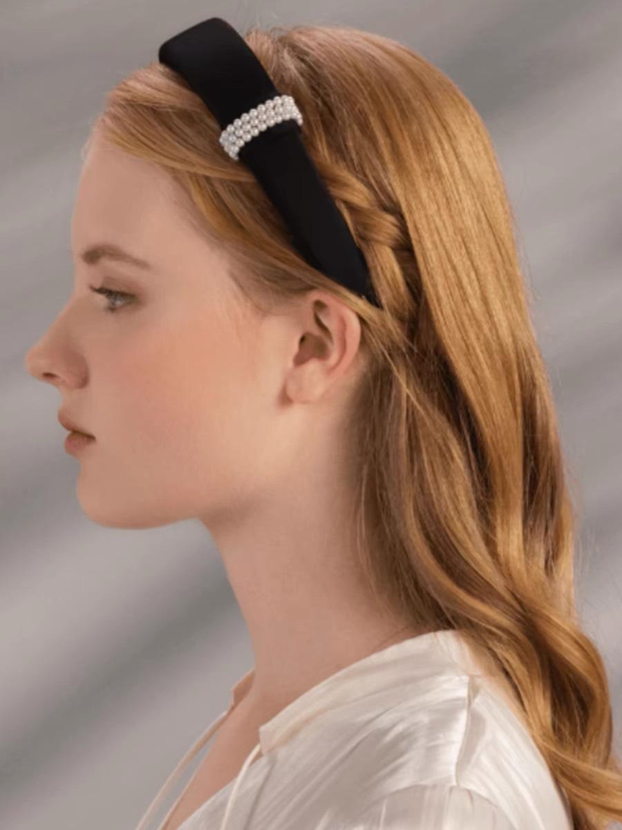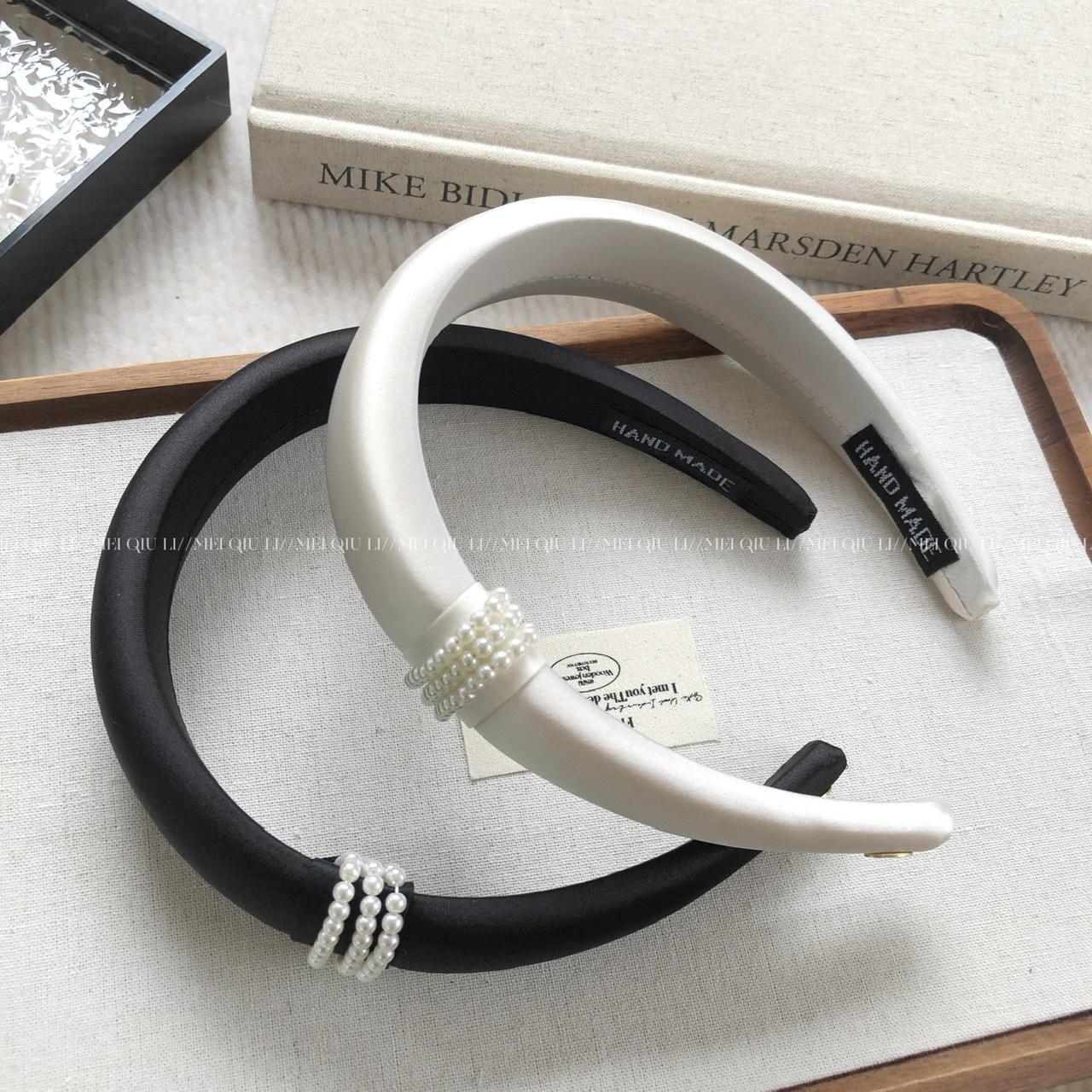 Xu I Deslumbrante Zhao Lusi Mismo Estilo Lujo Ligero Banda para el Cabello de Perlas Alto Sentido Xu Yan Estilo Extranjero Diadema para la Parte Superior Craneal Alta Sombrerería para Mujeres