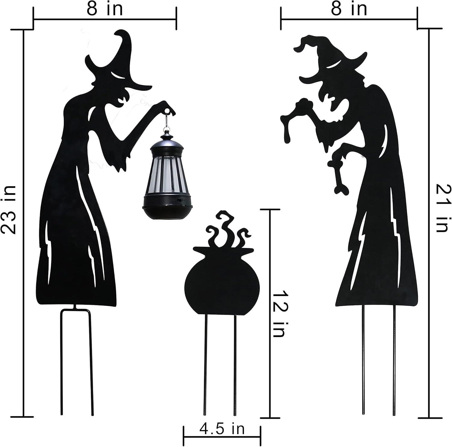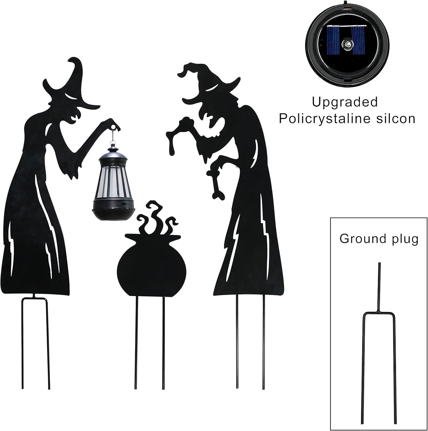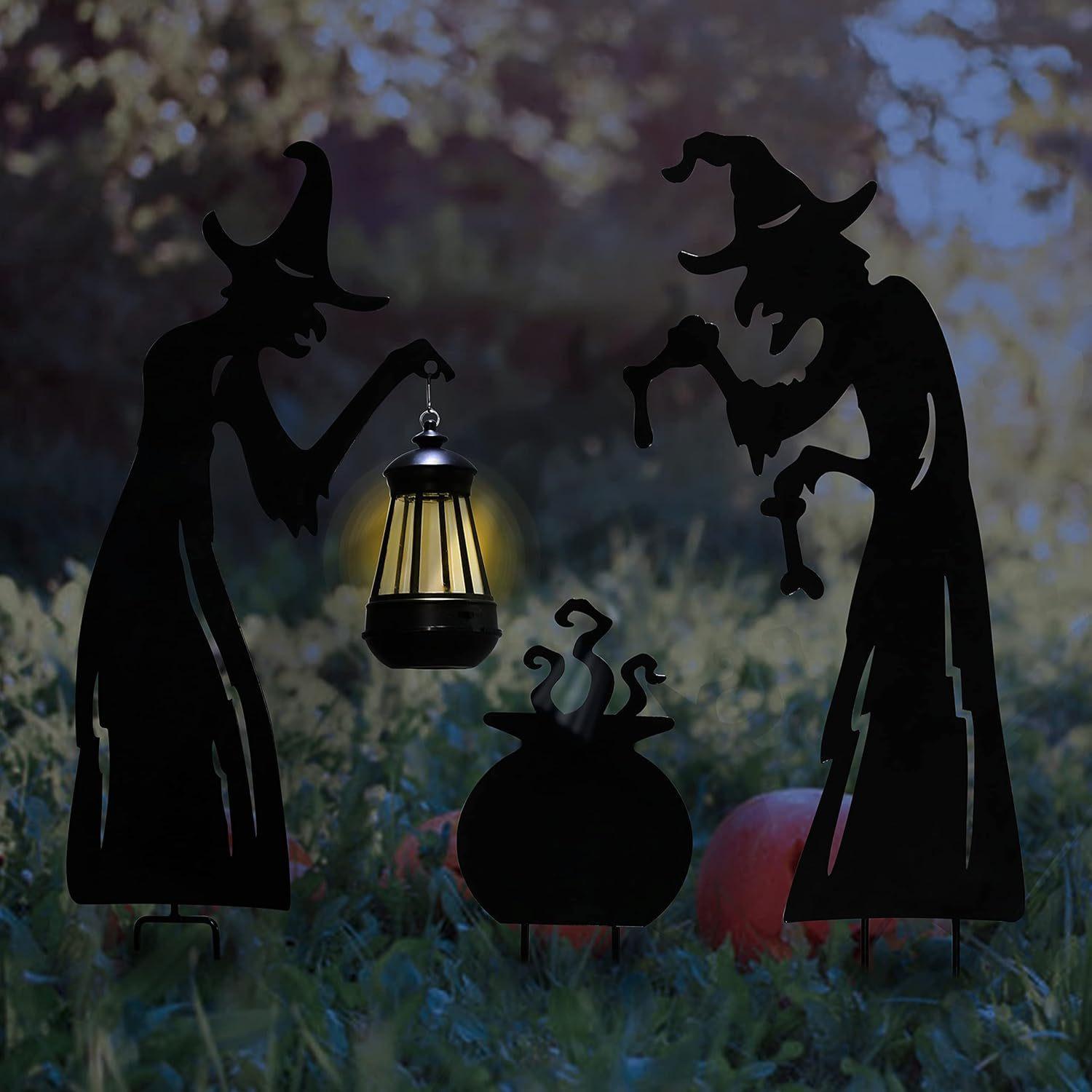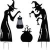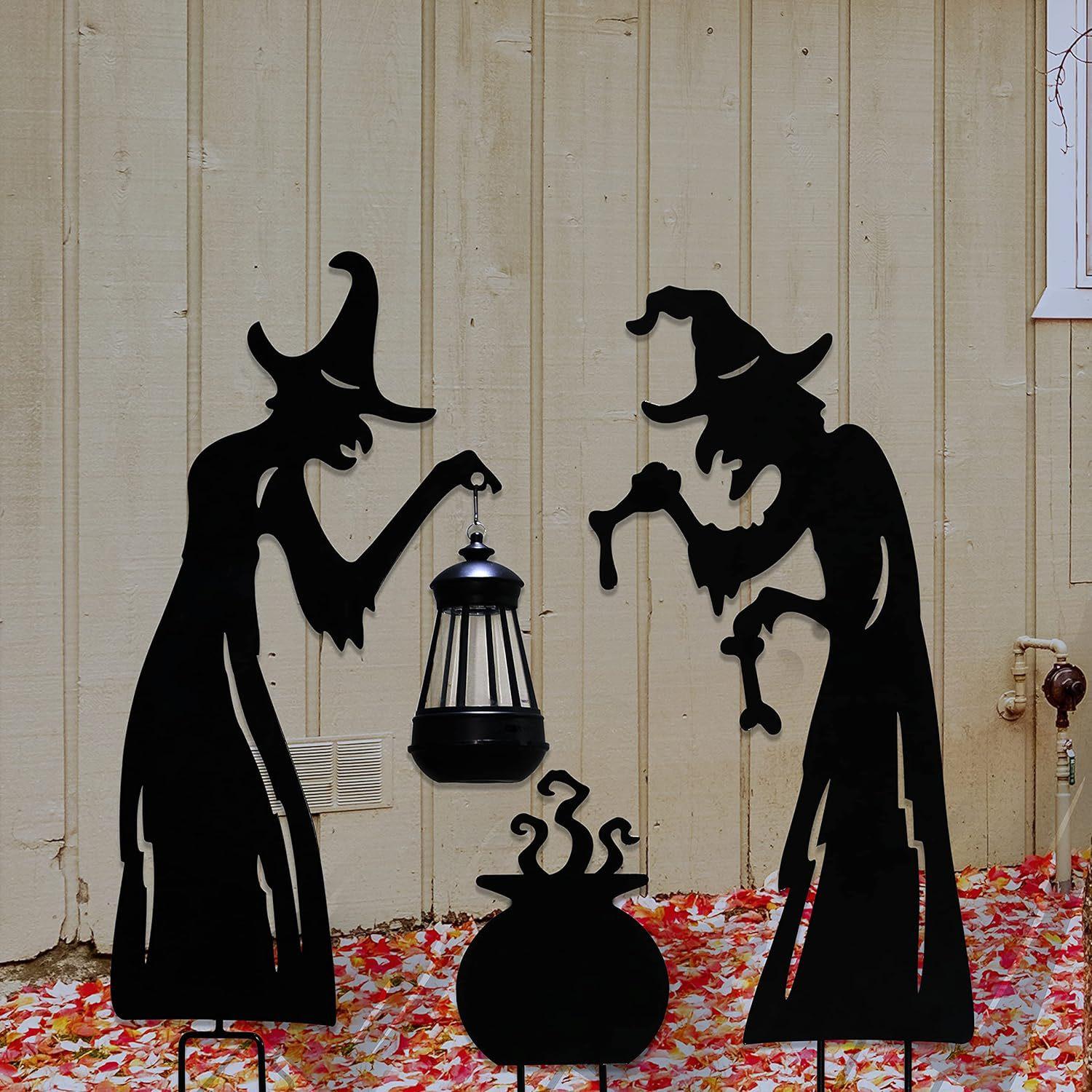 Placa de Halloween para patio, luminosa, para exteriores, con silueta de gato negro, bruja y caldero, con logotipo decorativo (2024)
