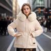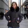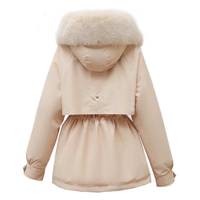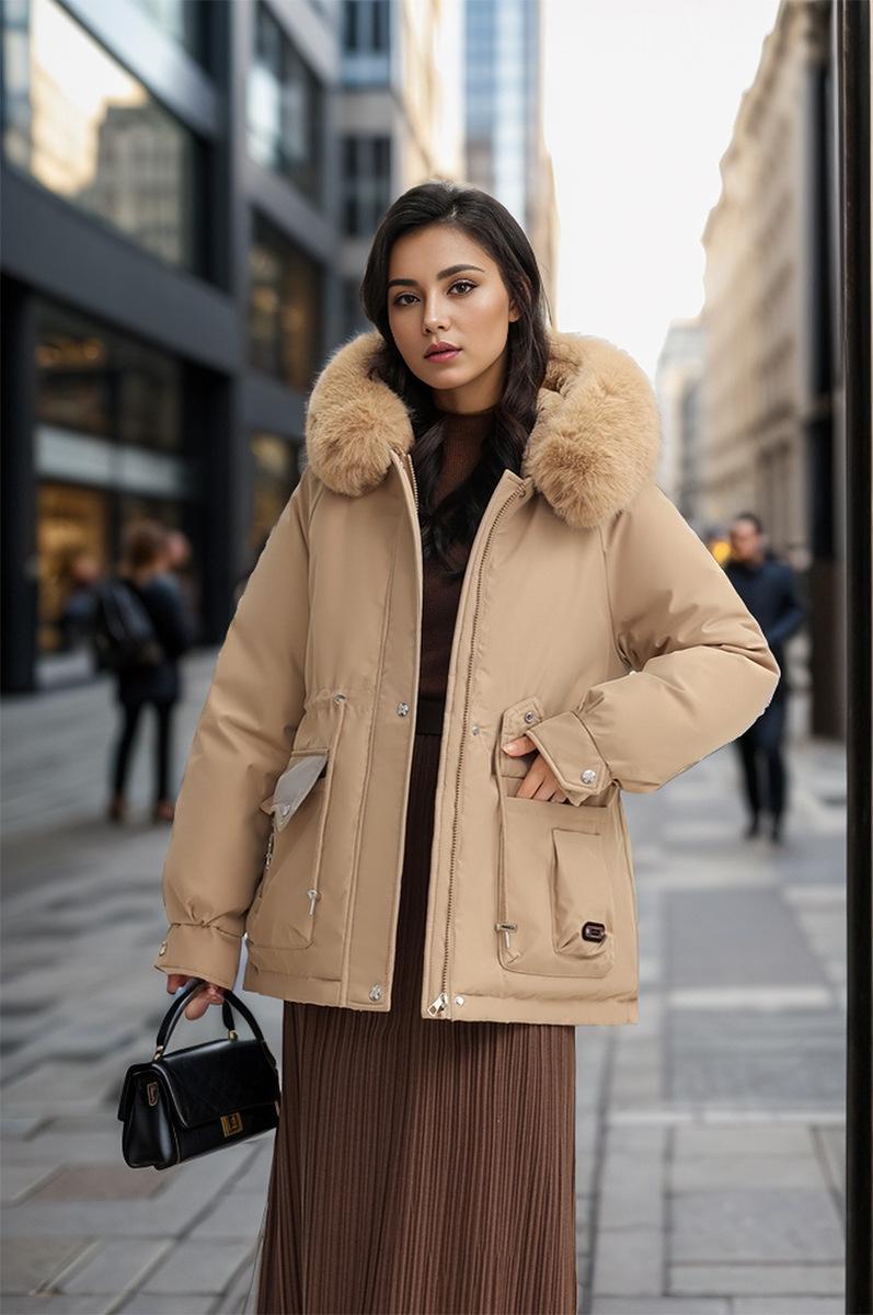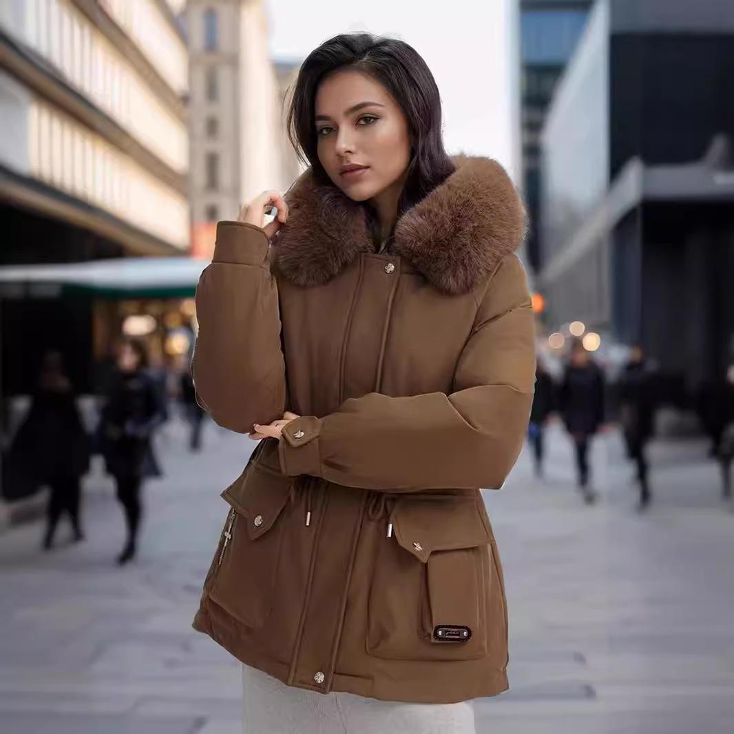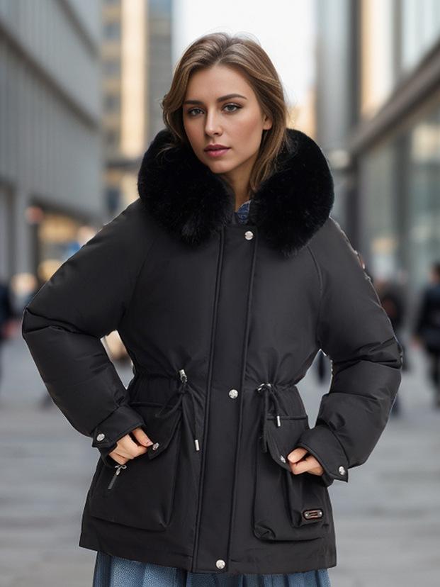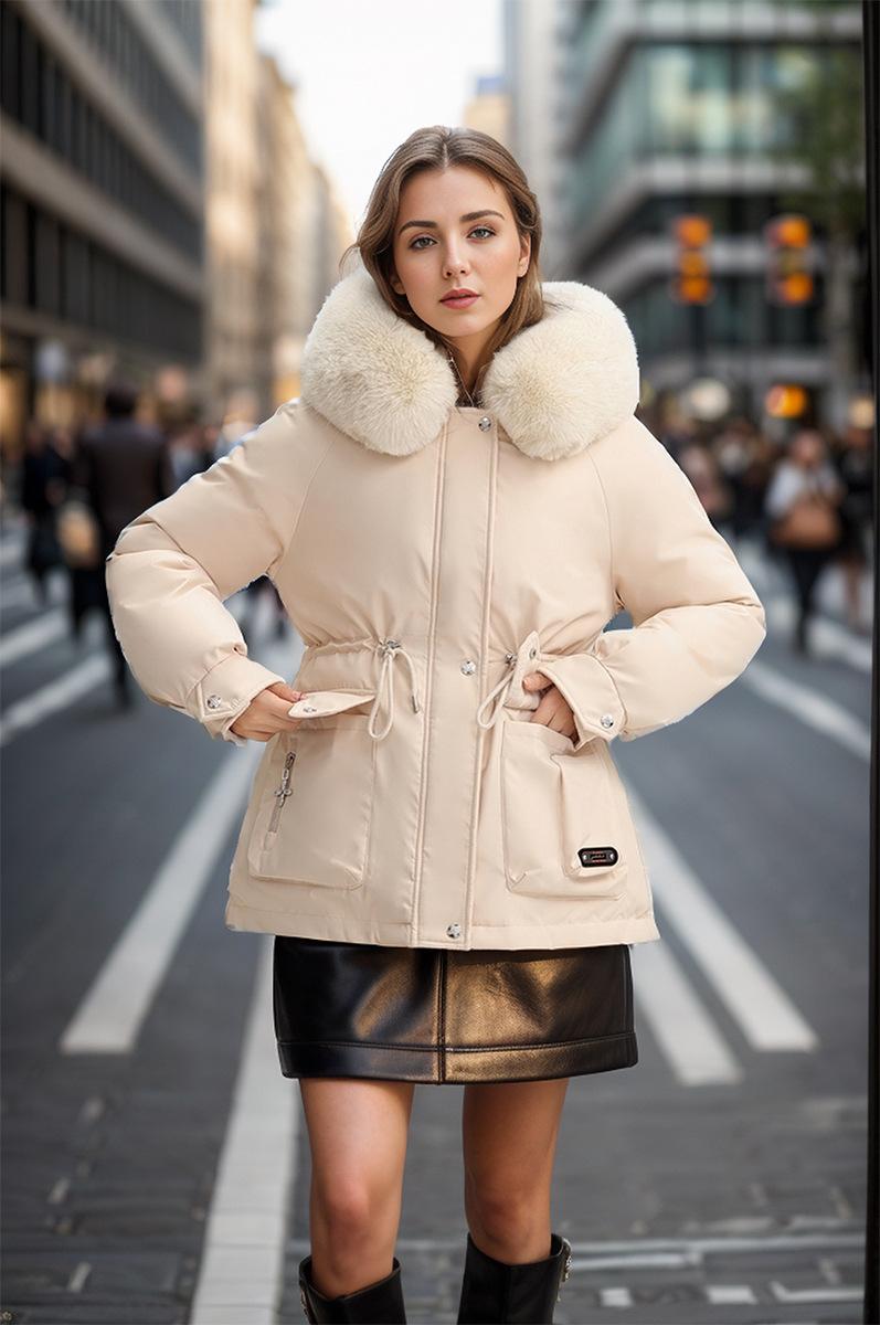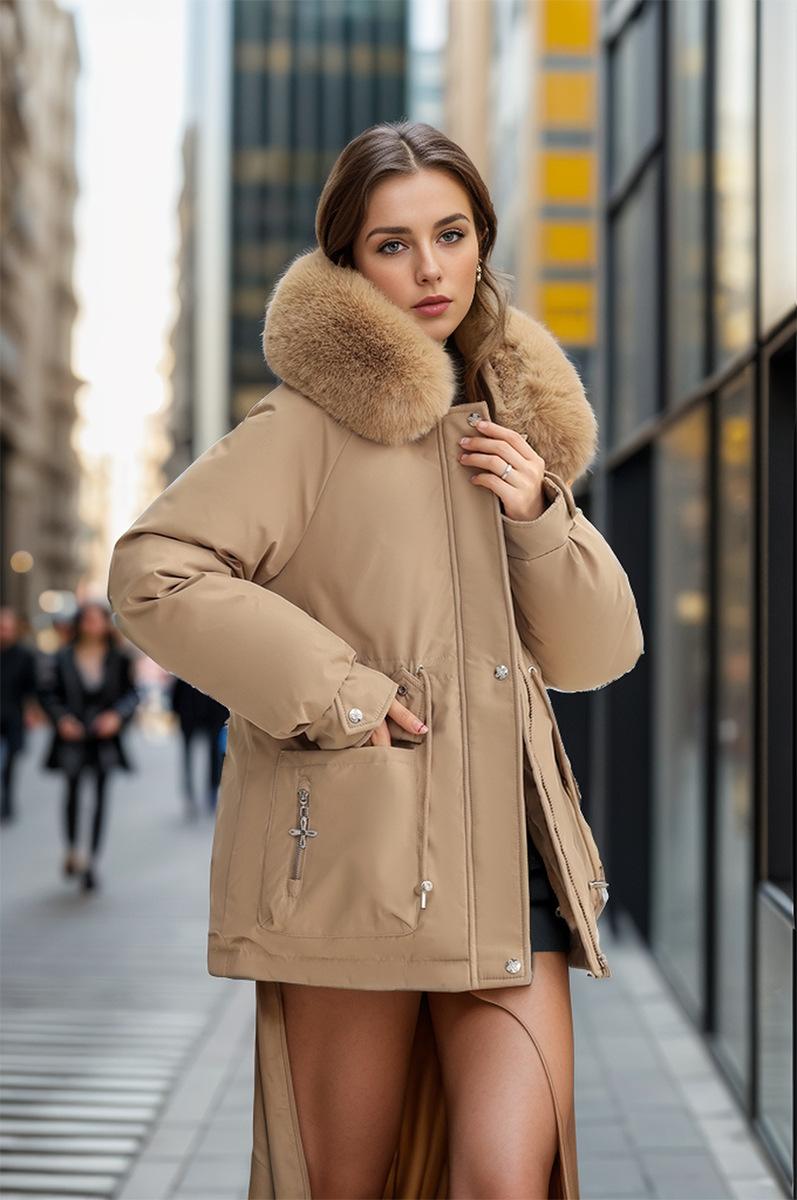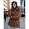Abrigo de algodón cálido con cuello de lana grande y capucha adelgazante para mujer de invierno 2024 de Parker Clothing.