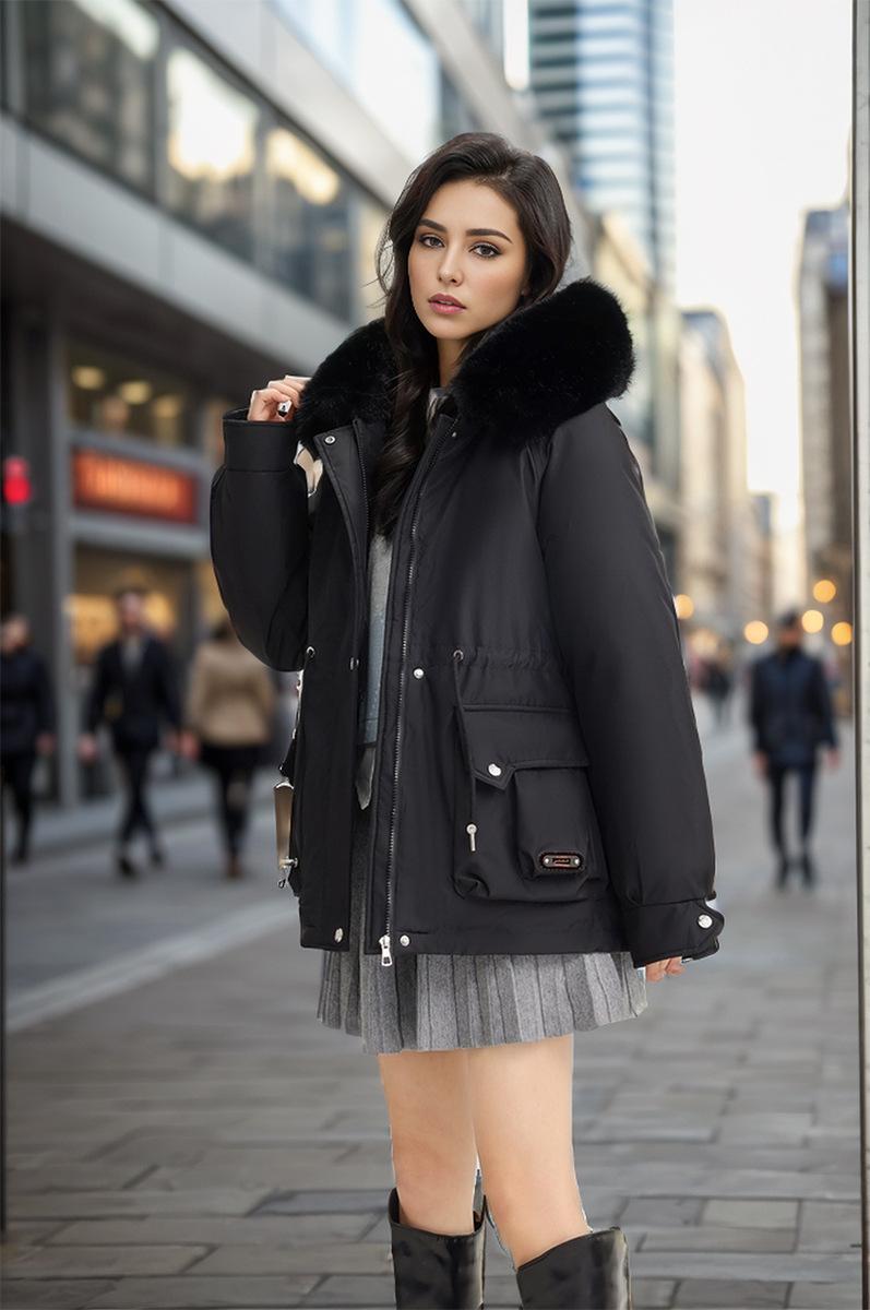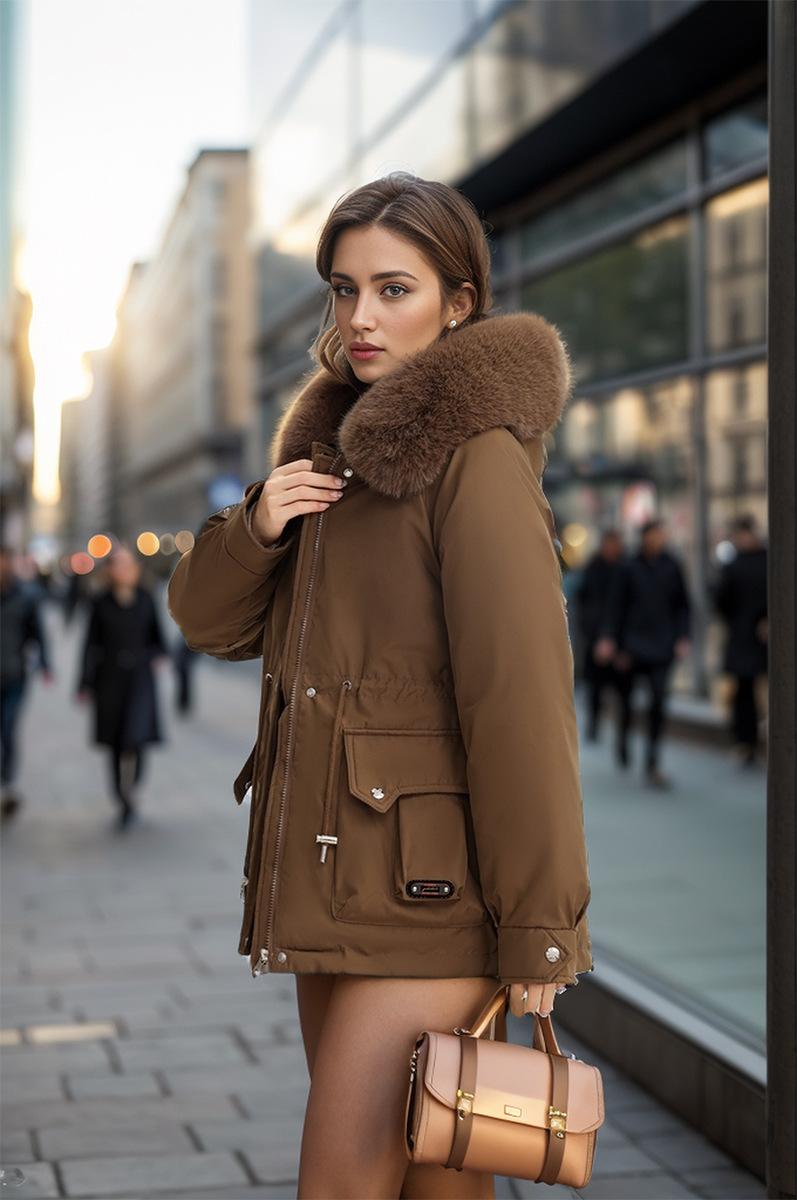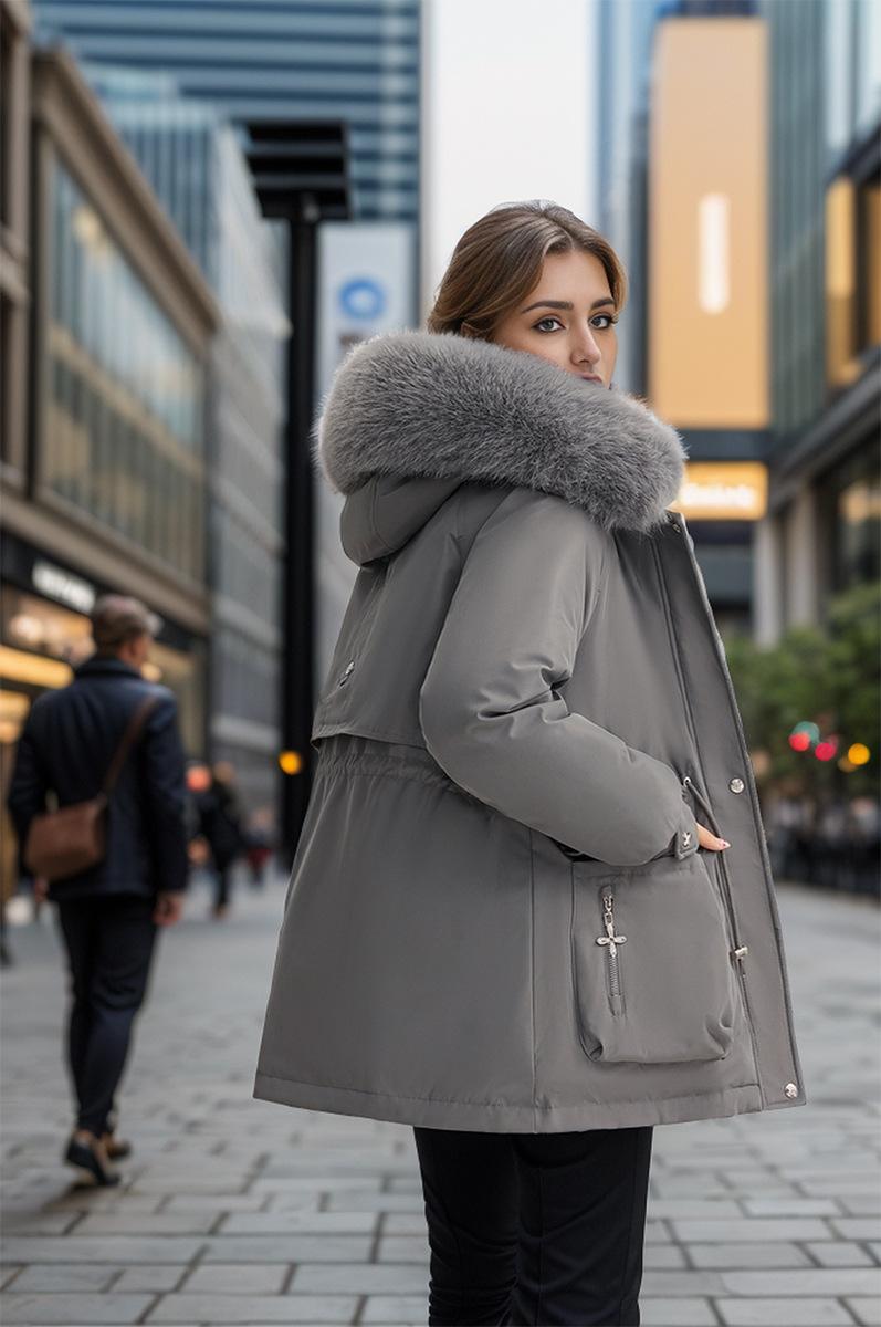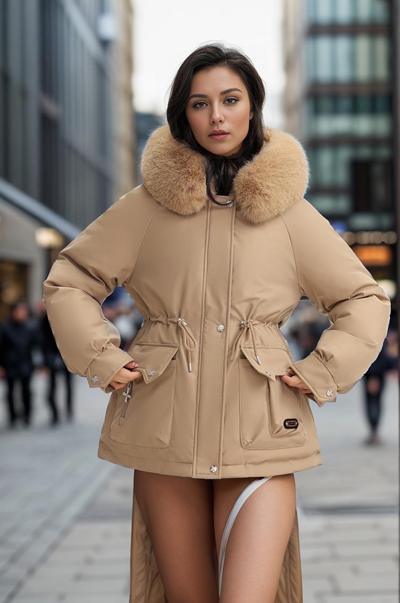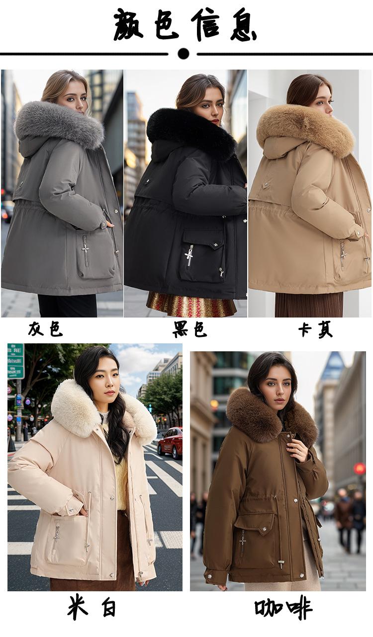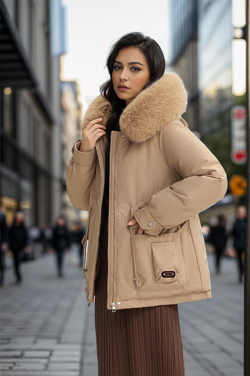 Abrigo de algodón cálido con cuello de lana grande y capucha adelgazante para mujer de invierno 2024 de Parker Clothing.