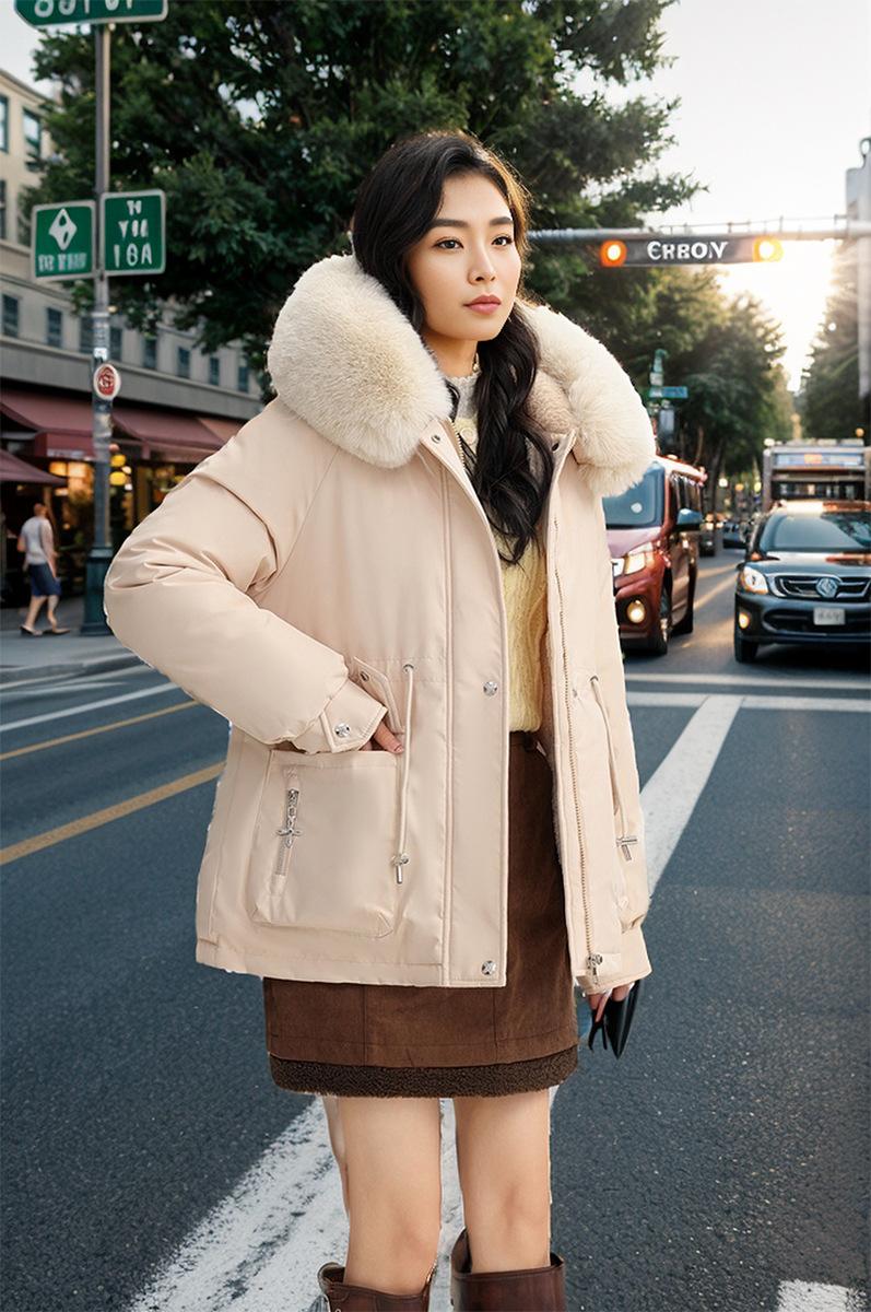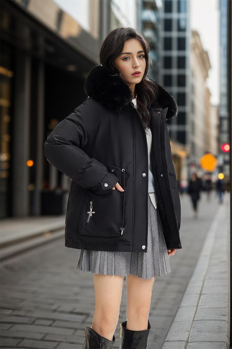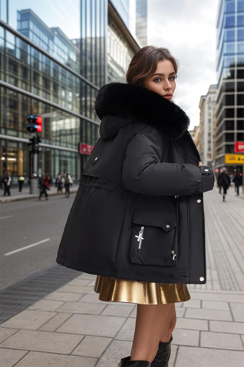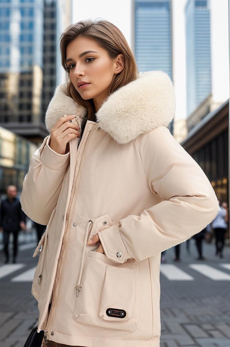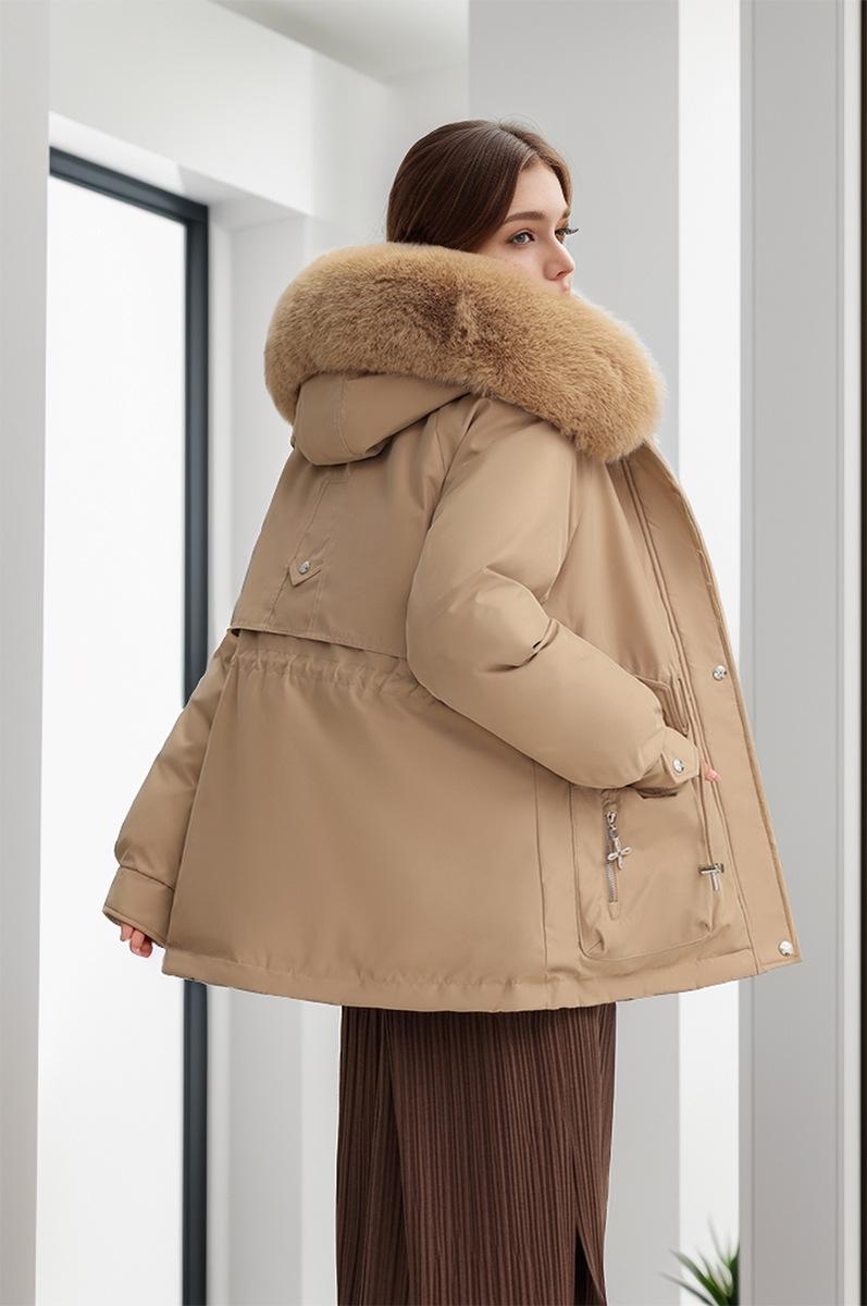 Abrigo de algodón cálido con cuello de lana grande y capucha adelgazante para mujer de invierno 2024 de Parker Clothing.