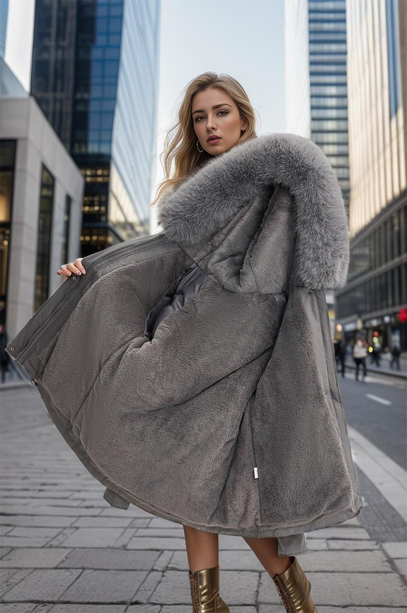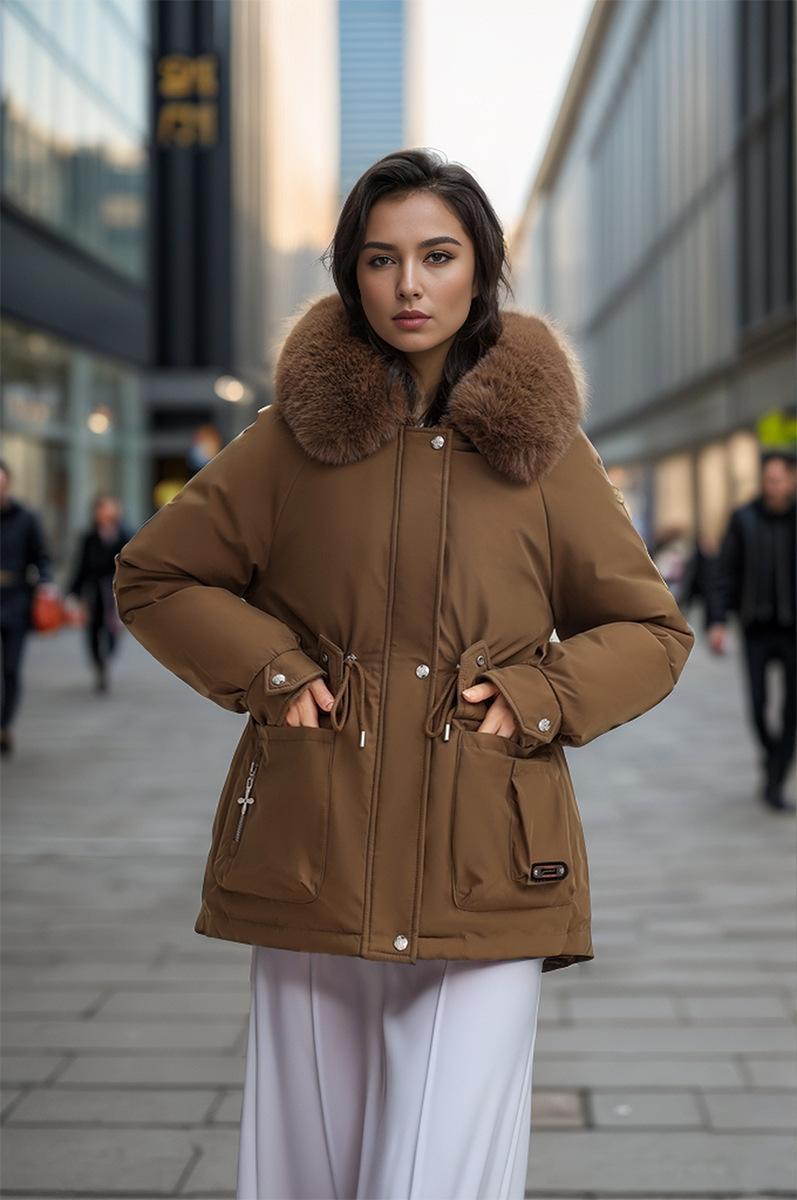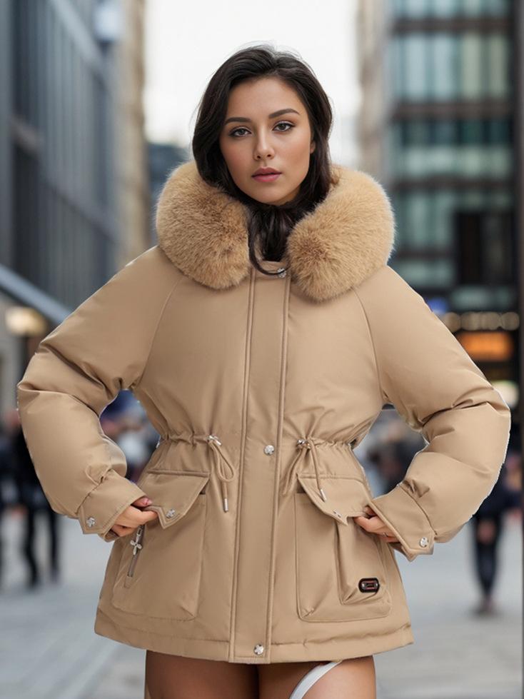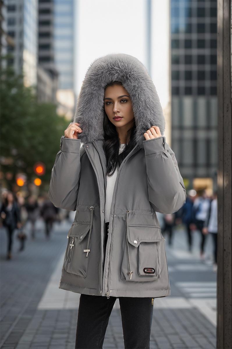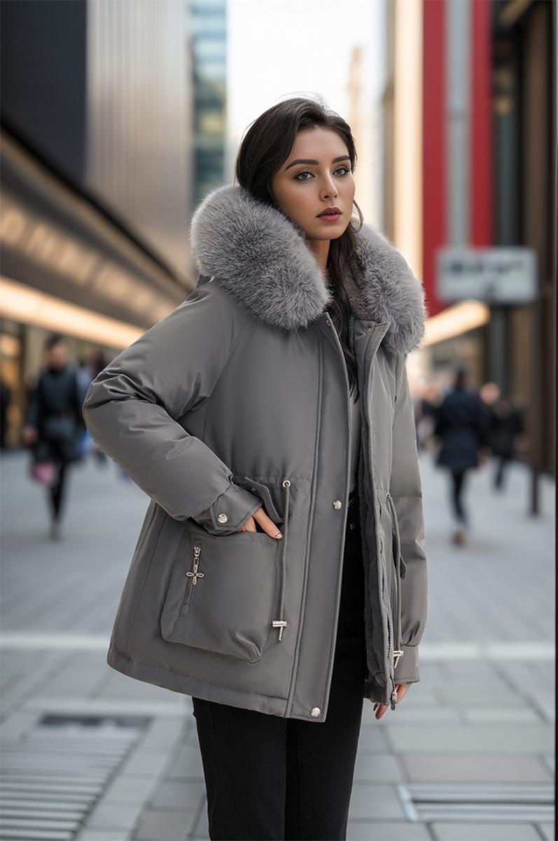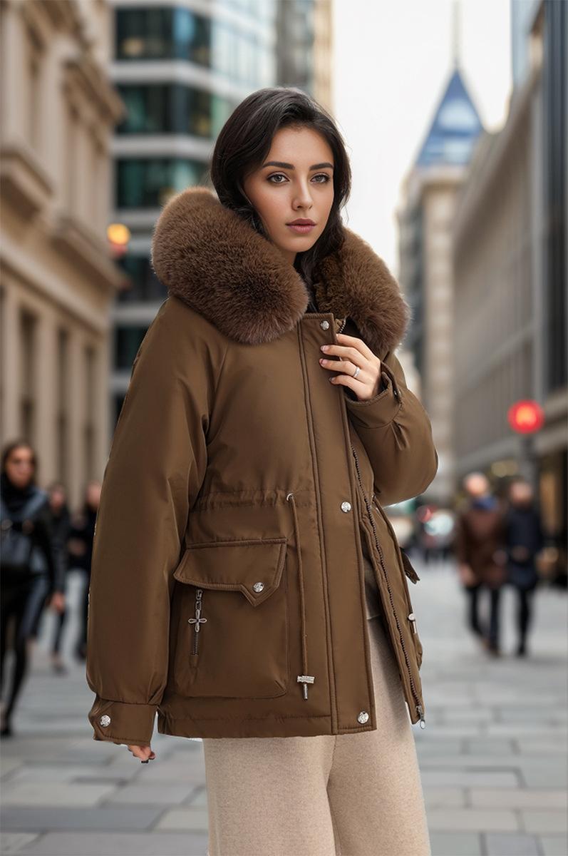Abrigo de algodón cálido con cuello de lana grande y capucha adelgazante para mujer de invierno 2024 de Parker Clothing.