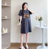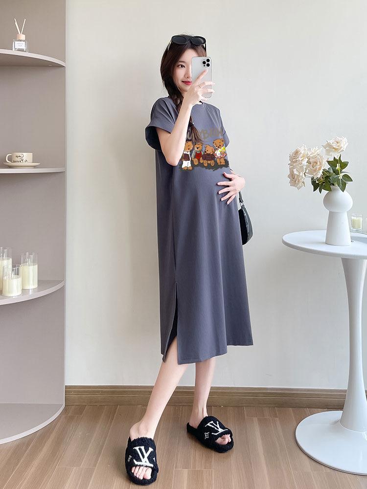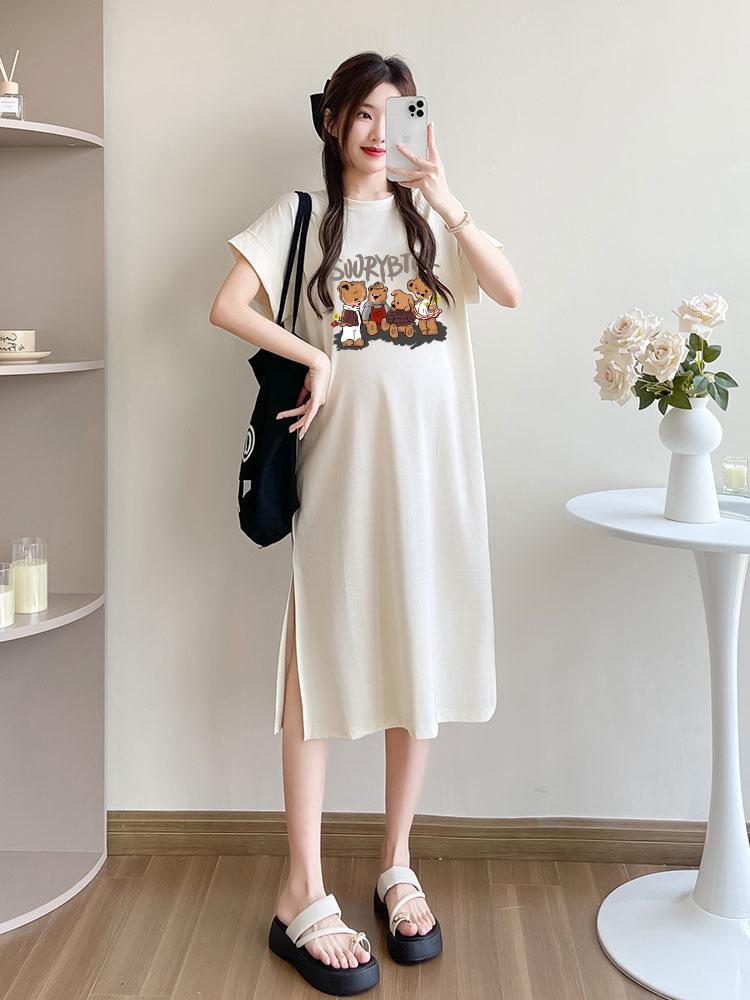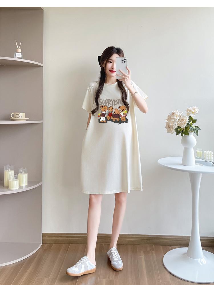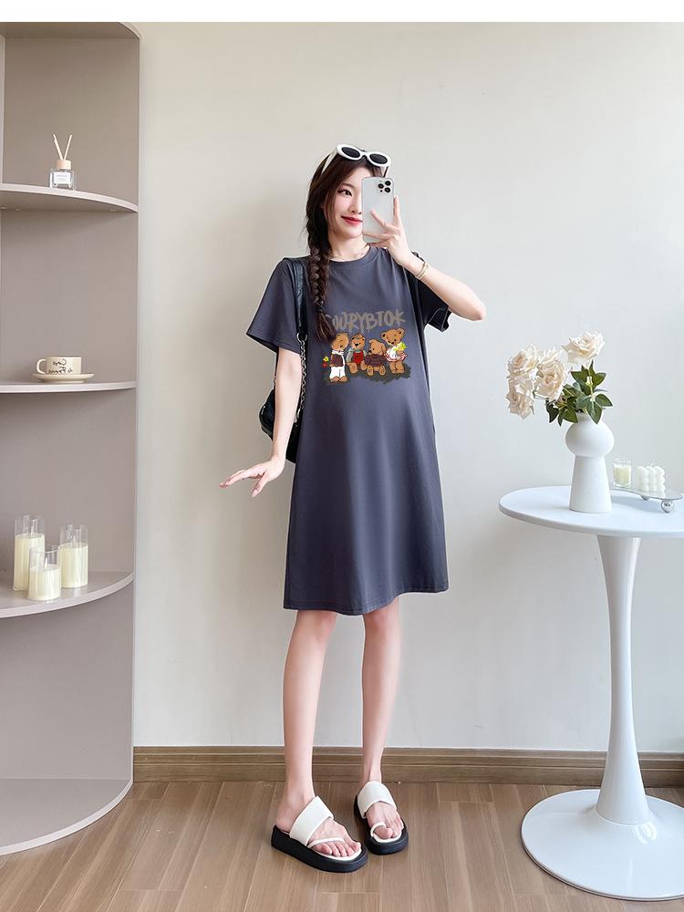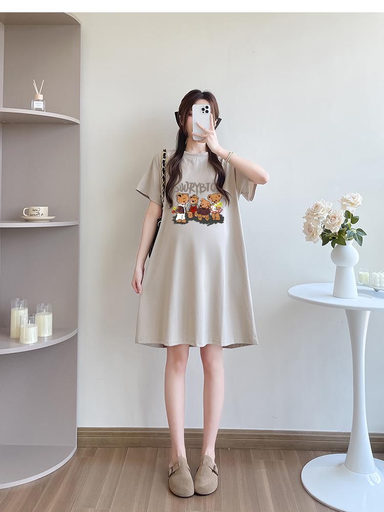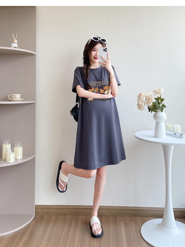 Vestido de maternidad para mujer, camiseta informal de dibujos animados de moda de verano, falda de longitud media, top de verano