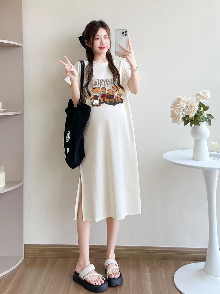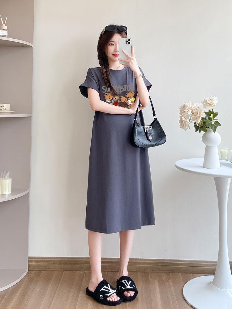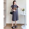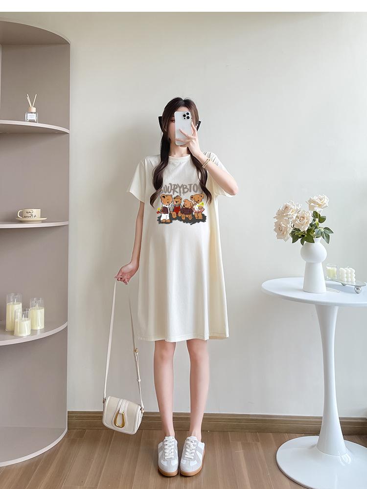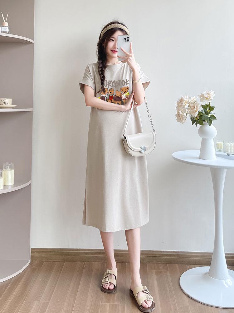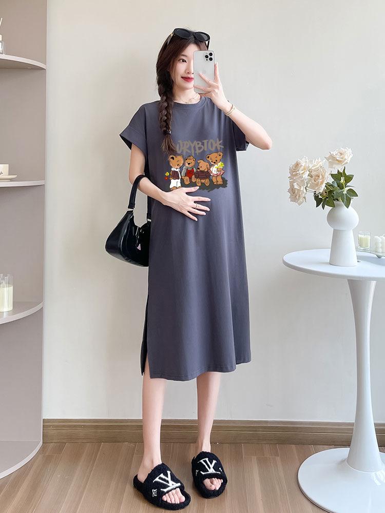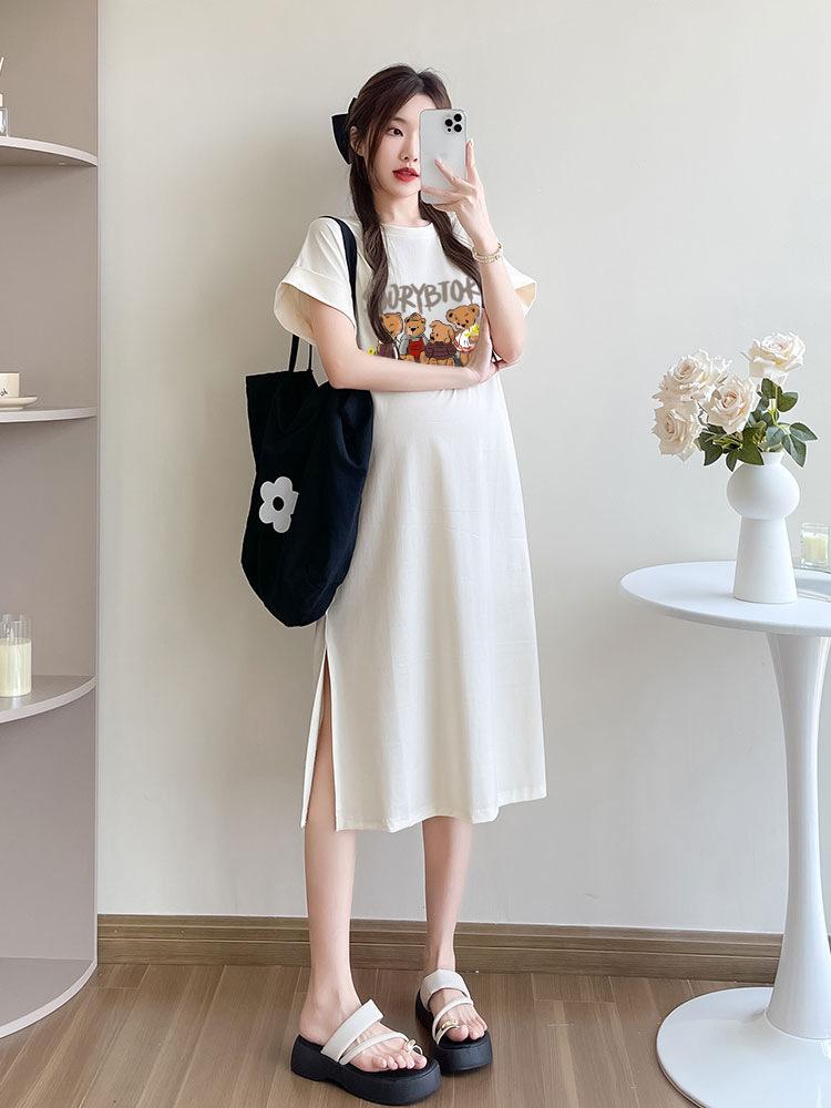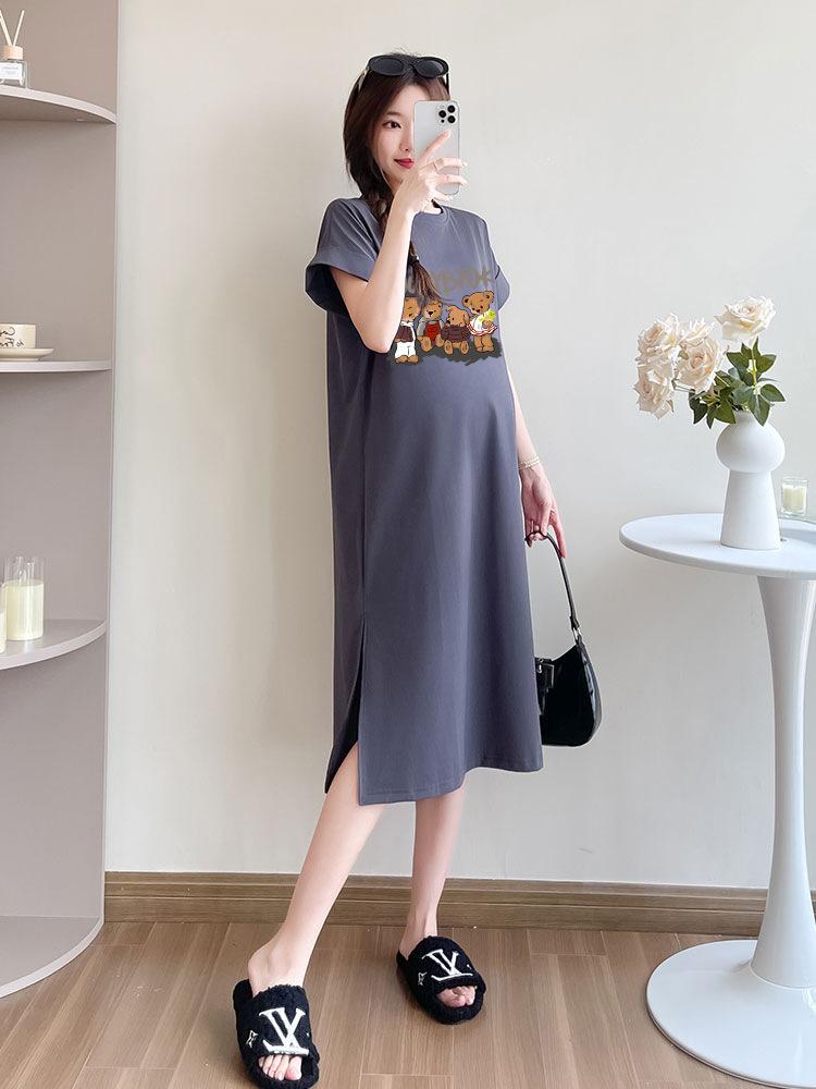 Vestido de maternidad para mujer, camiseta informal de dibujos animados de moda de verano, falda de longitud media, top de verano
