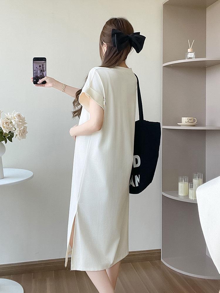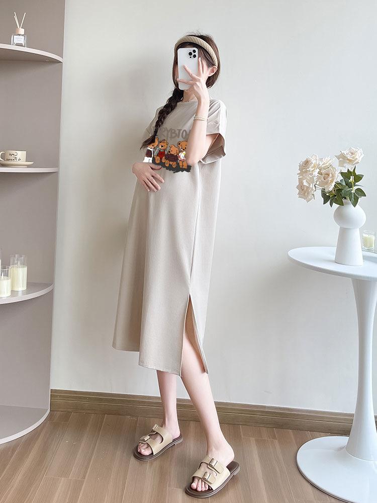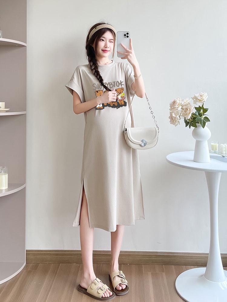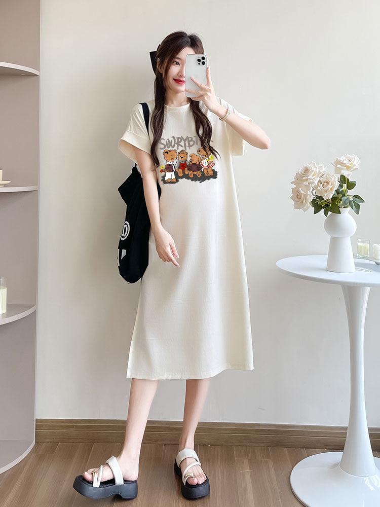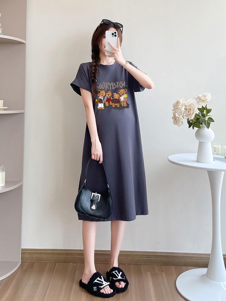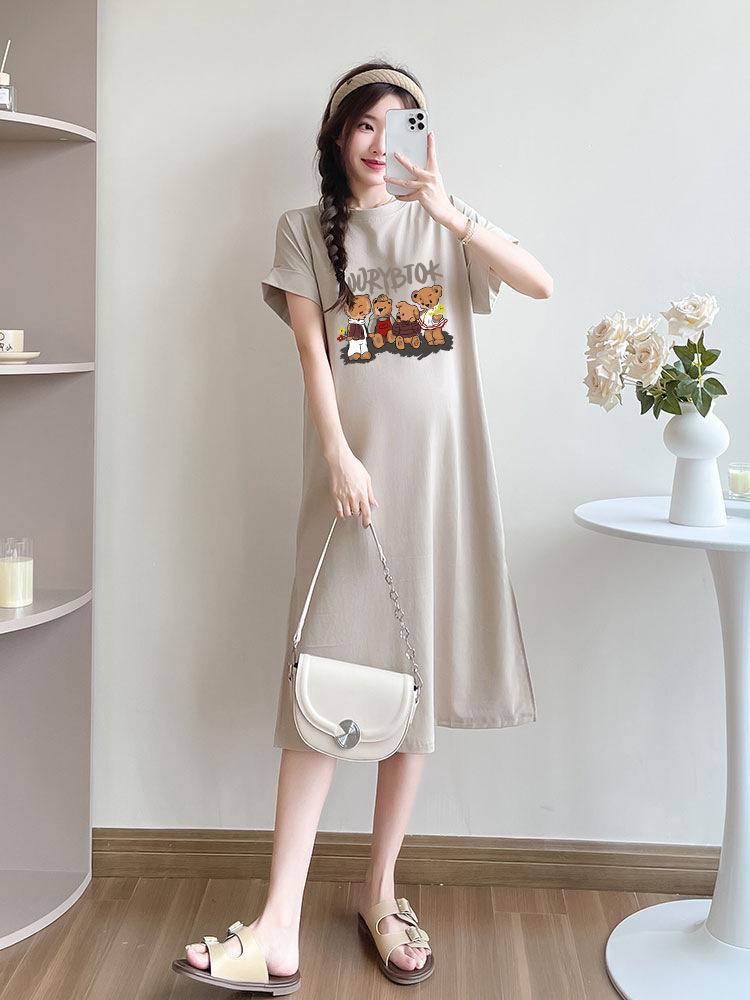 Vestido de maternidad para mujer, camiseta informal de dibujos animados de moda de verano, falda de longitud media, top de verano