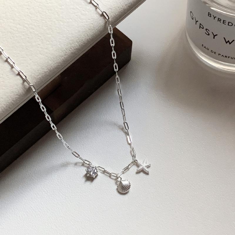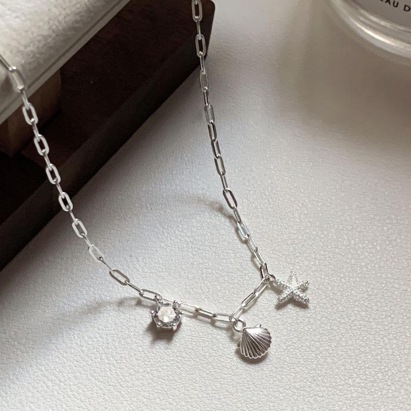 Collar de circón con forma de estrella de mar y concha estilo coreano para mujer, estilo frío, moderno, exquisito, combinable con todo, cadena de clavícula de alta gama, nuevo estilo 2024