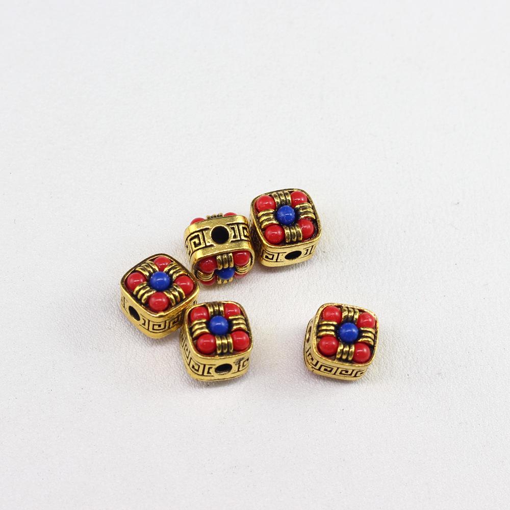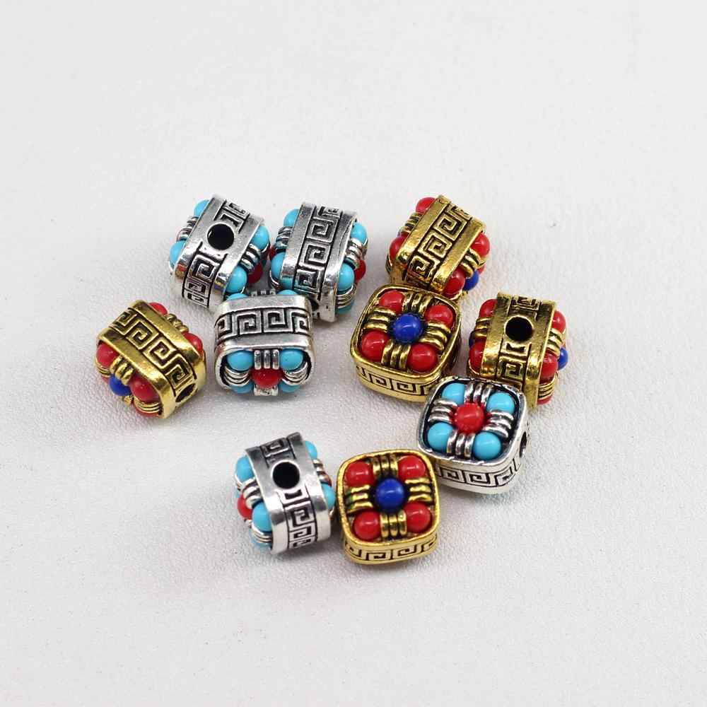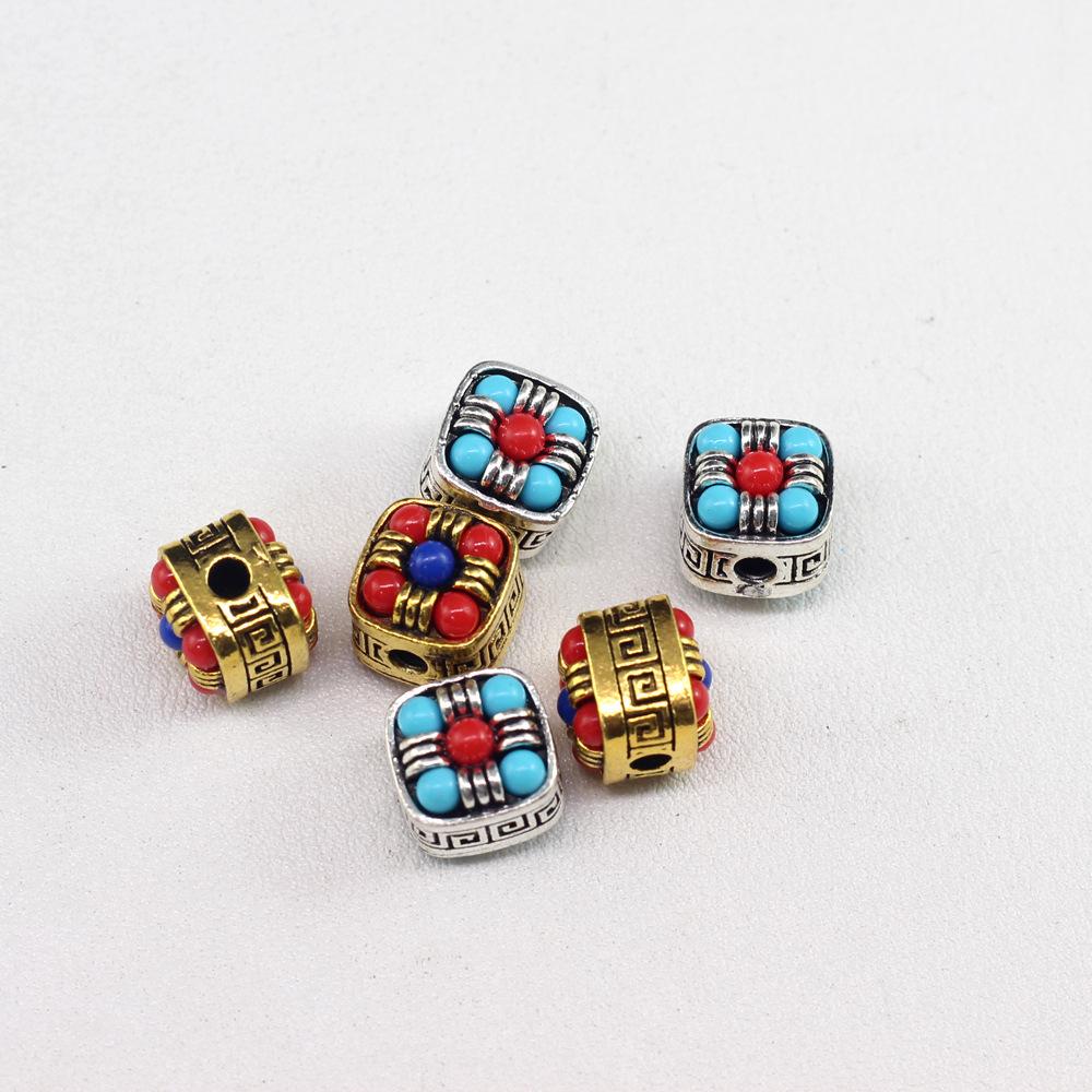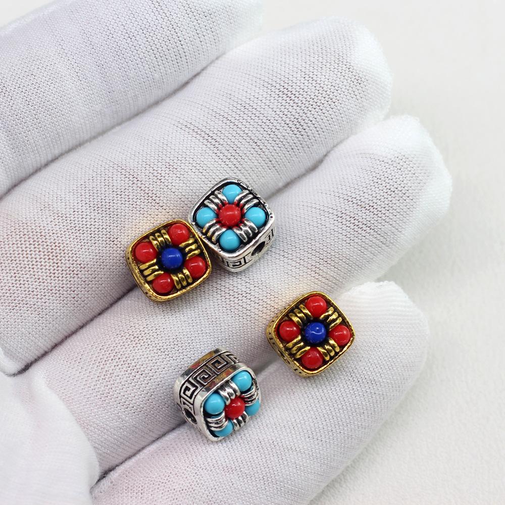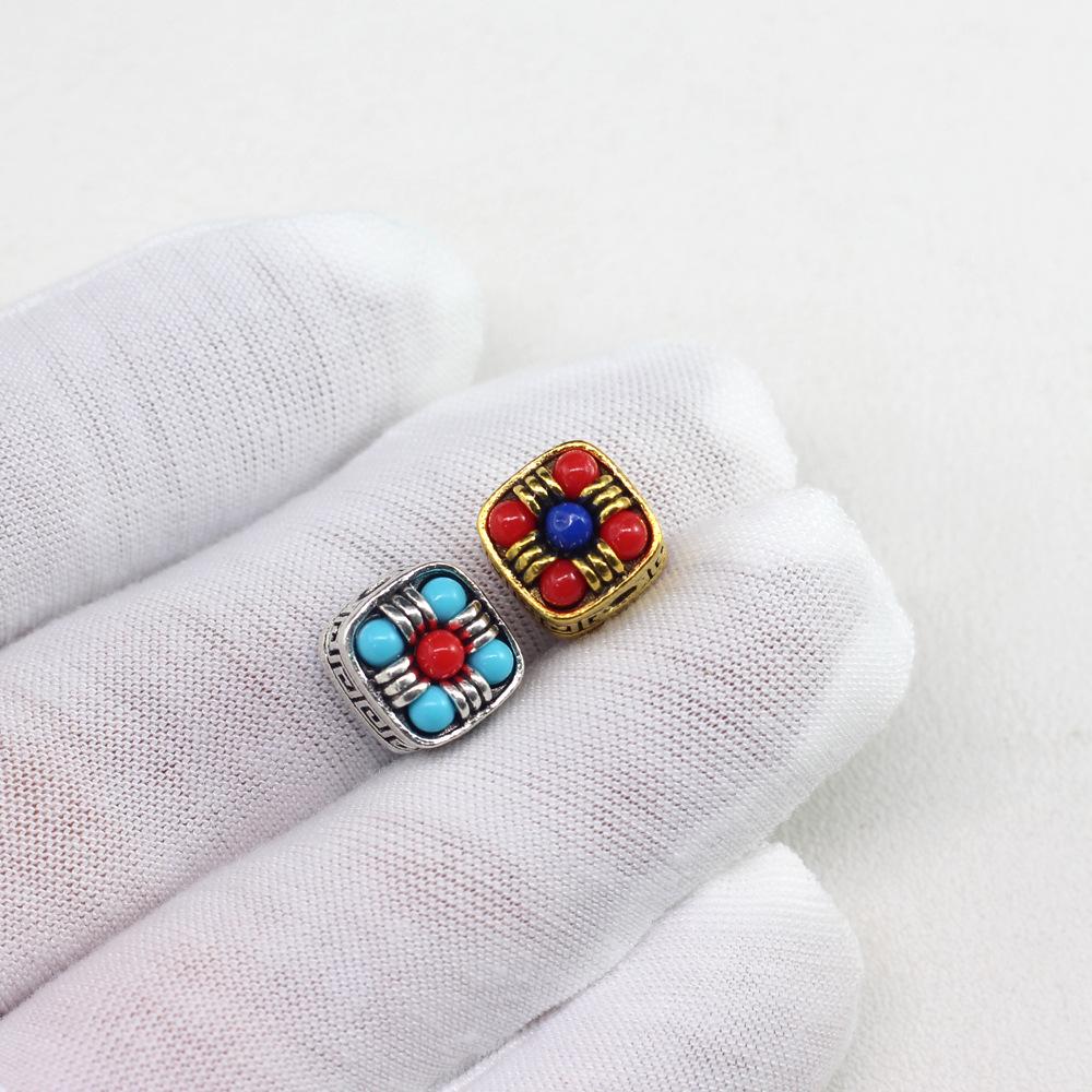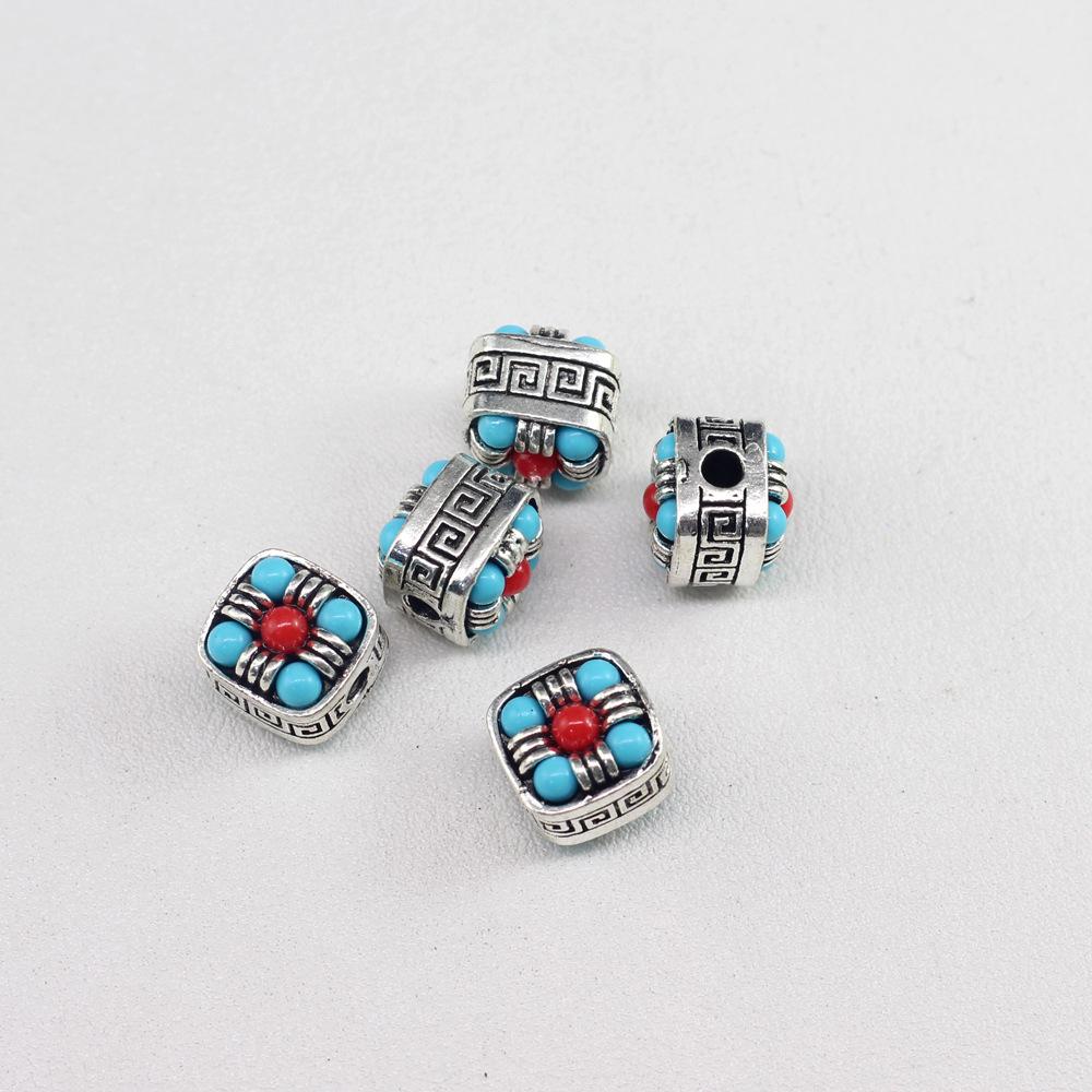Nombre: Aleación de plata tibetana incrustada con nube cuadrada en forma de espalda DIY imitación turquesa espaciadores para pulsera cuentas joyería hecha a mano pulsera con cuentas