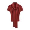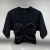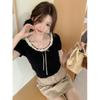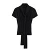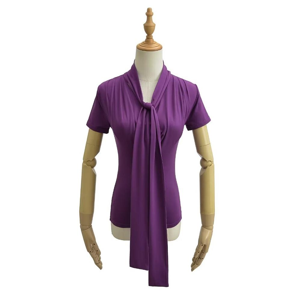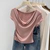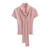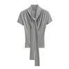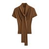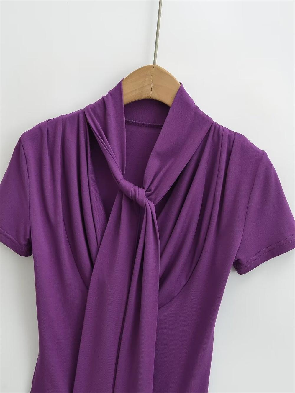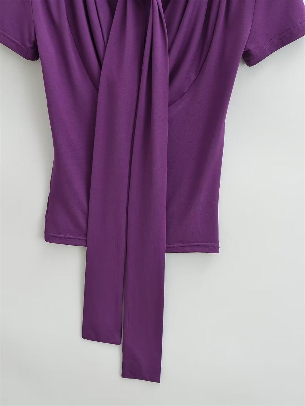 YPFF - Camiseta de manga corta con cuello alto para mujer, estilo veraniego, nueva moda, ajustada, con cordones, color liso, para chica atractiva
