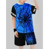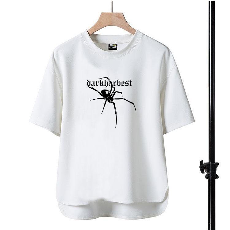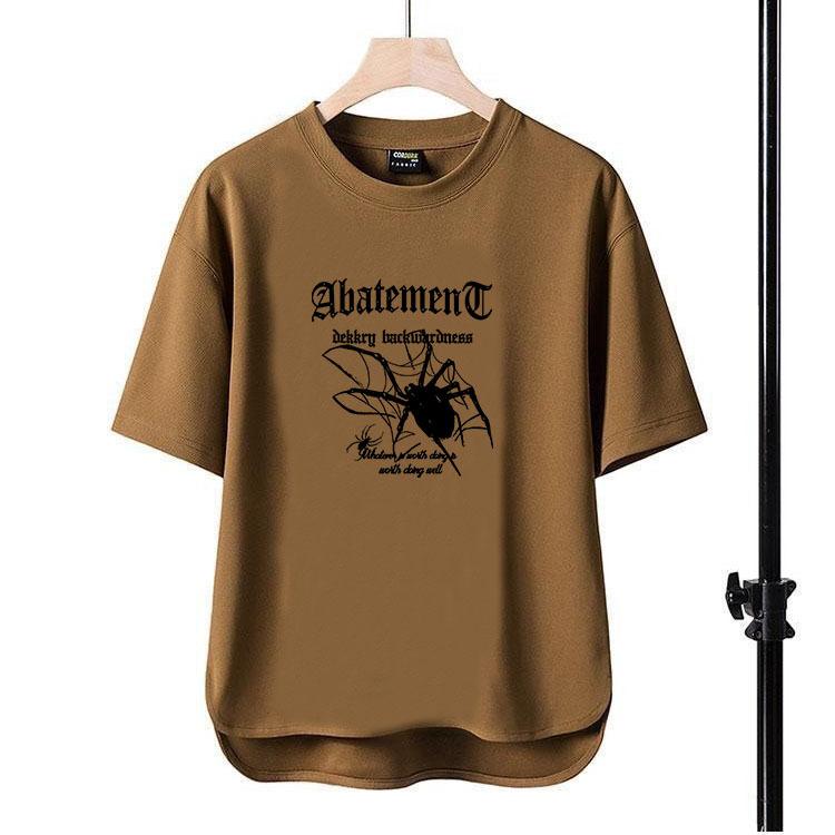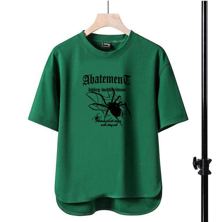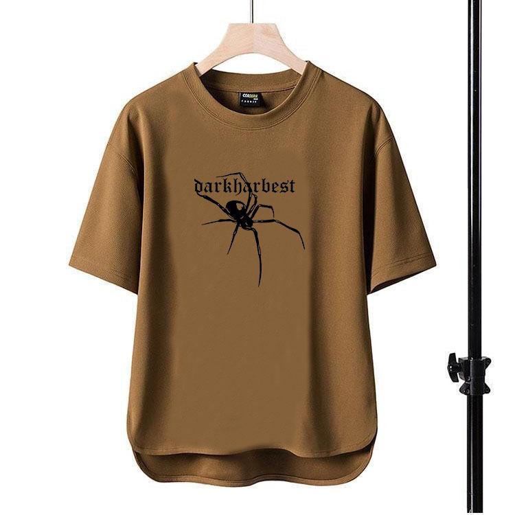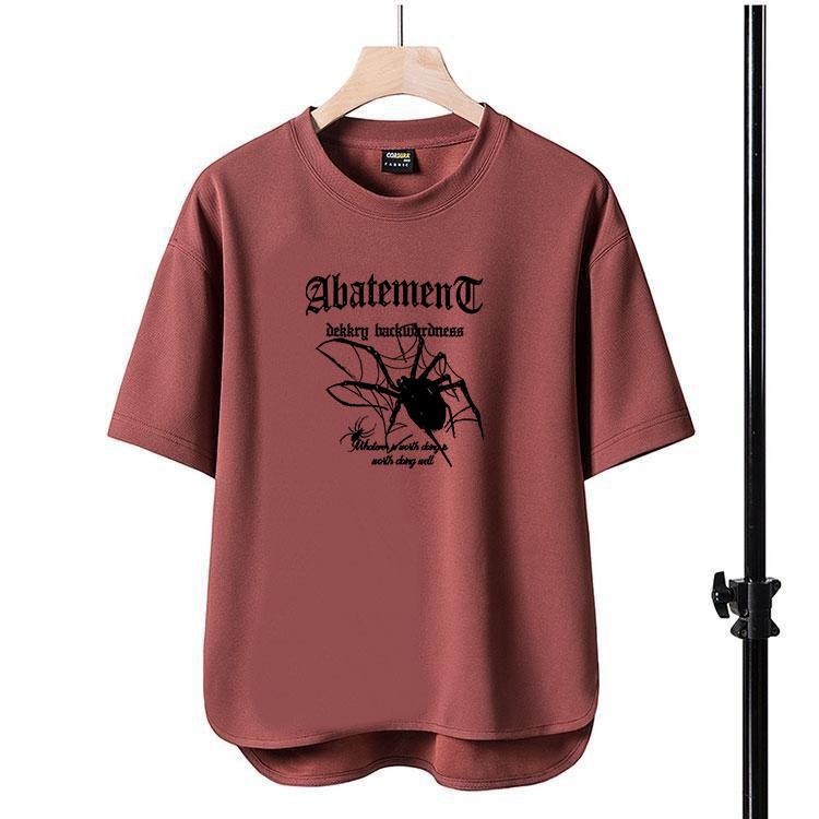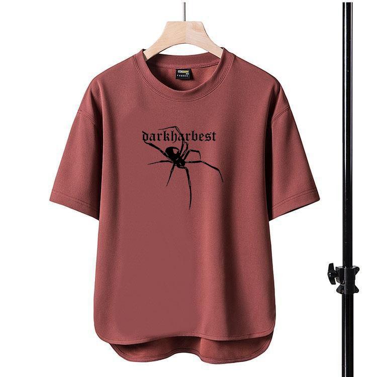 Camiseta de manga corta para hombre, nueva camiseta con estampado de araña y letras, cuello redondo, de secado rápido, holgada, de comercio exterior, Amazon, 2024