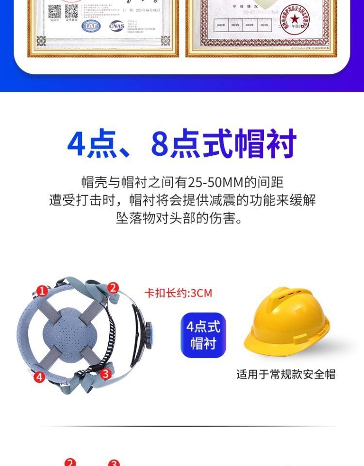 Forro para casco de obra de fibra de vidrio duradera, extraíble y absorbente del sudor de 4/8 puntos, con botón y perilla, para casco de construcción.