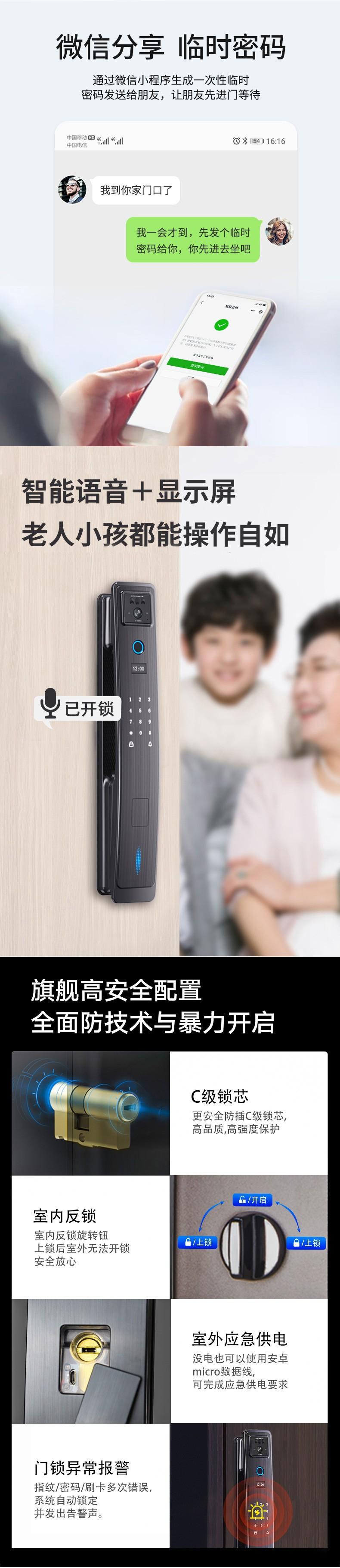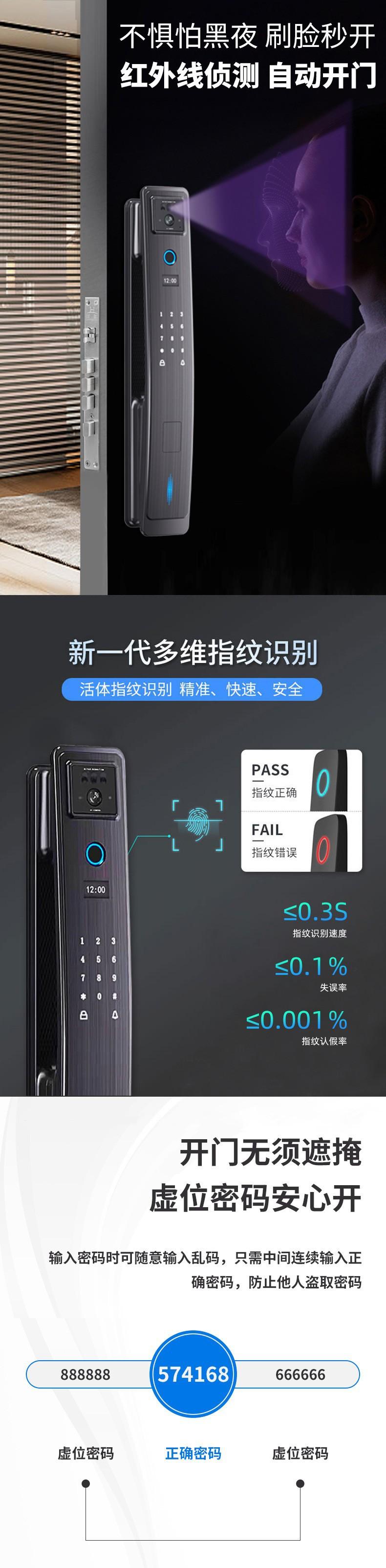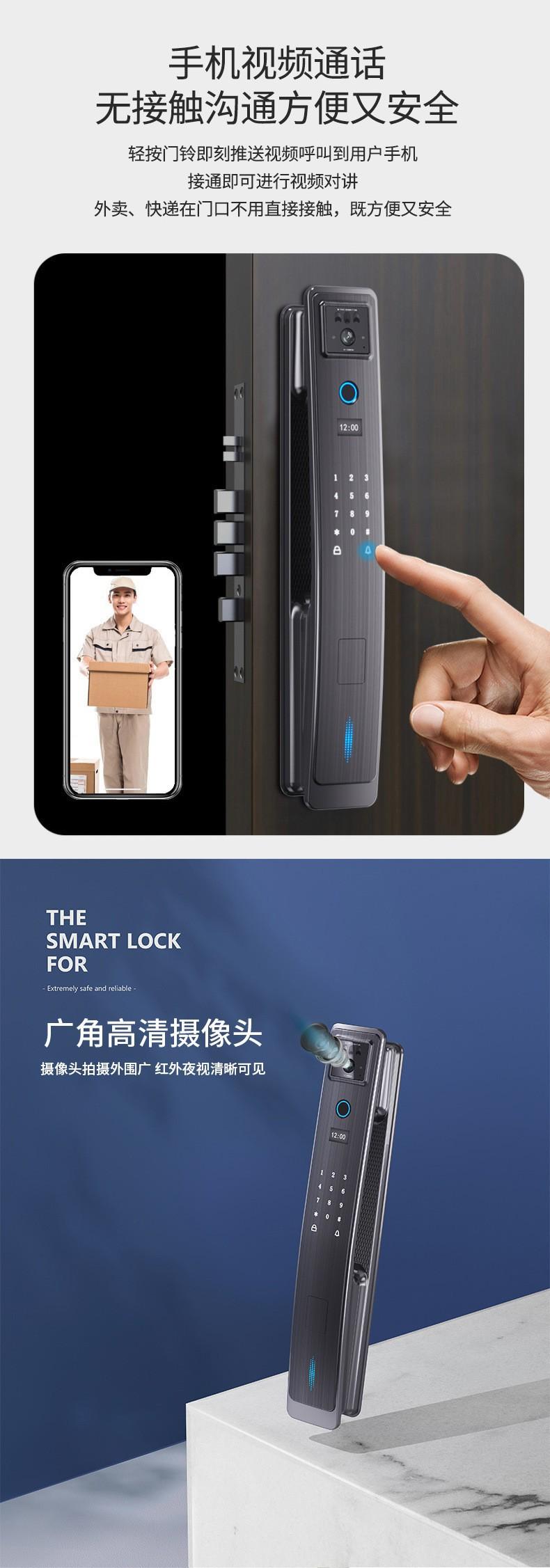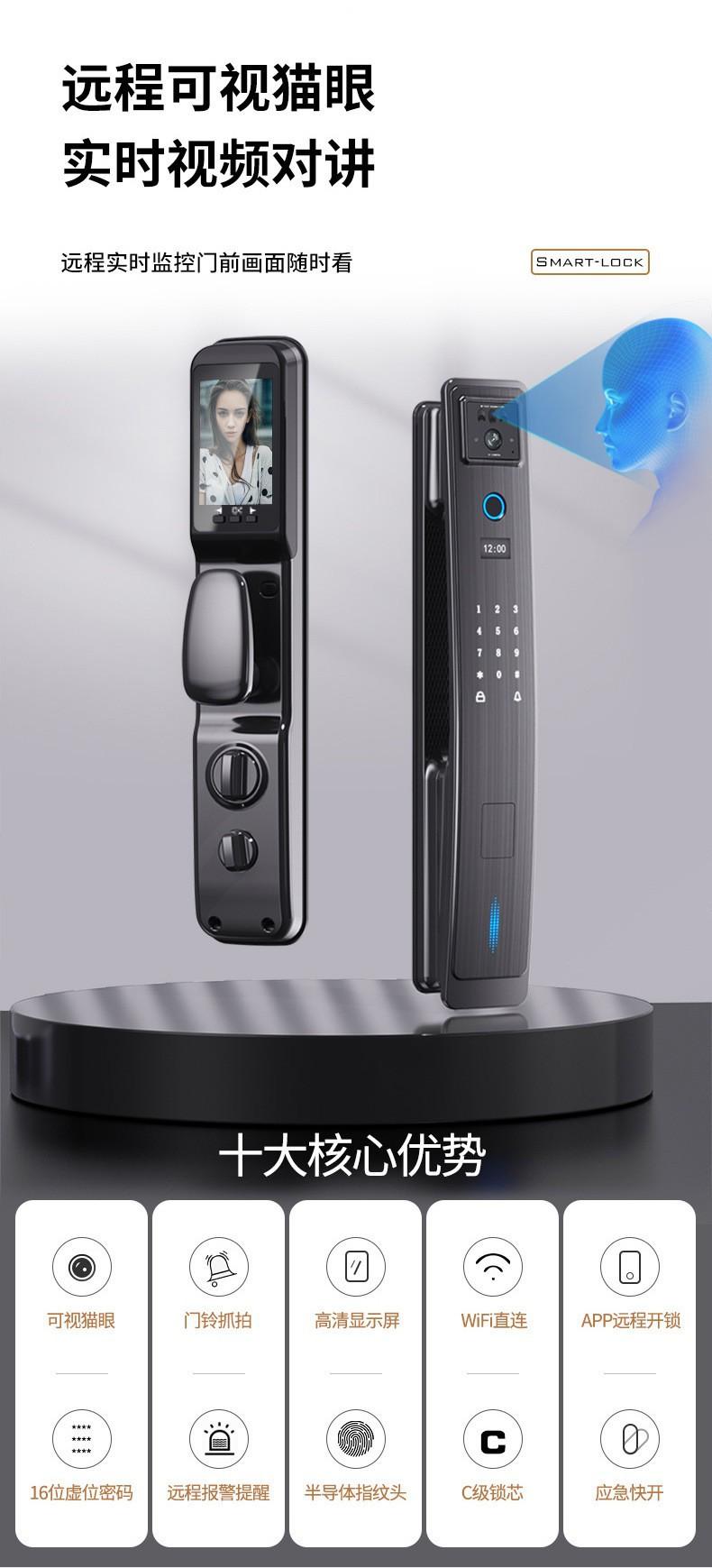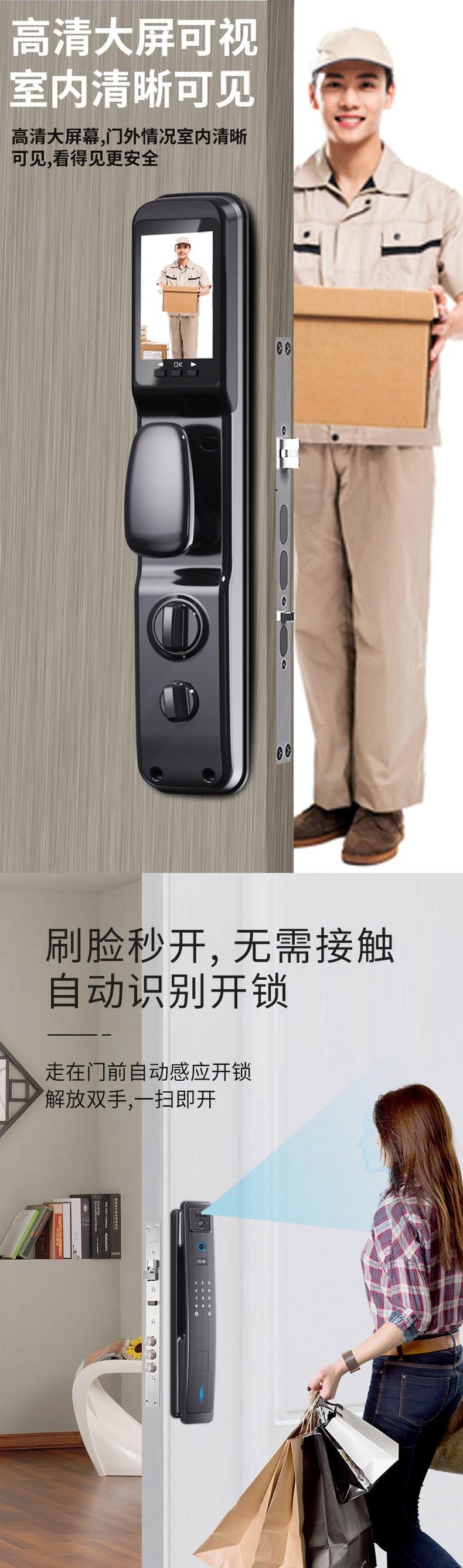 Cerradura de huella dactilar automática 3D con función de red WIFI, desbloqueo remoto, timbre, contraseña, tarjeta, puerta de madera