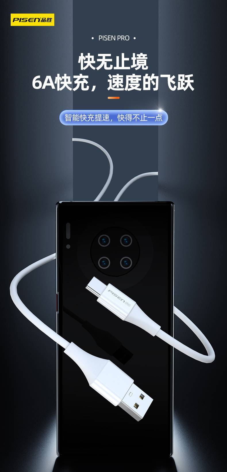 Cable de Datos Tipo C Pinsheng 66W Carga Rápida Adecuado para Cable de Carga Xiaomi Vivo/Oppo