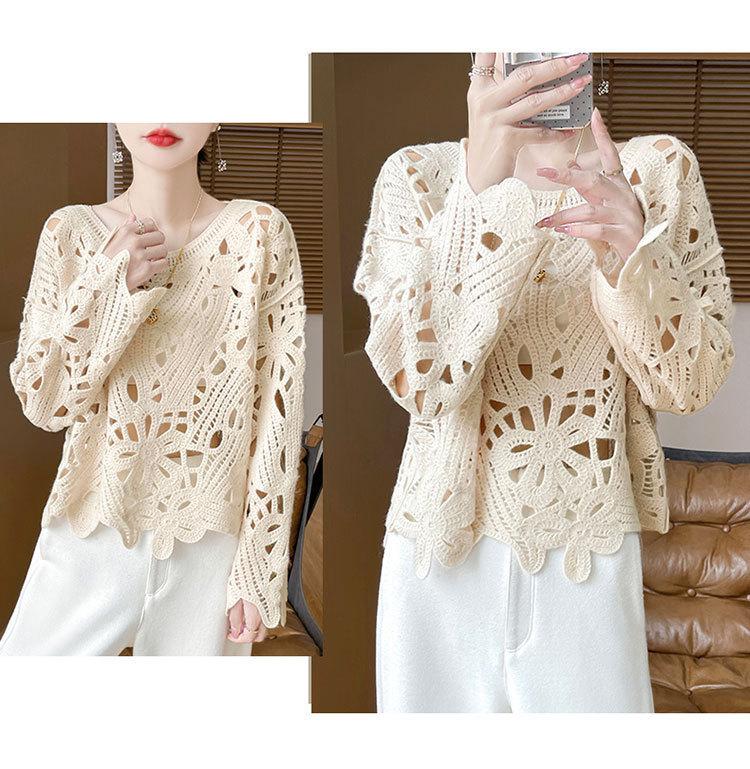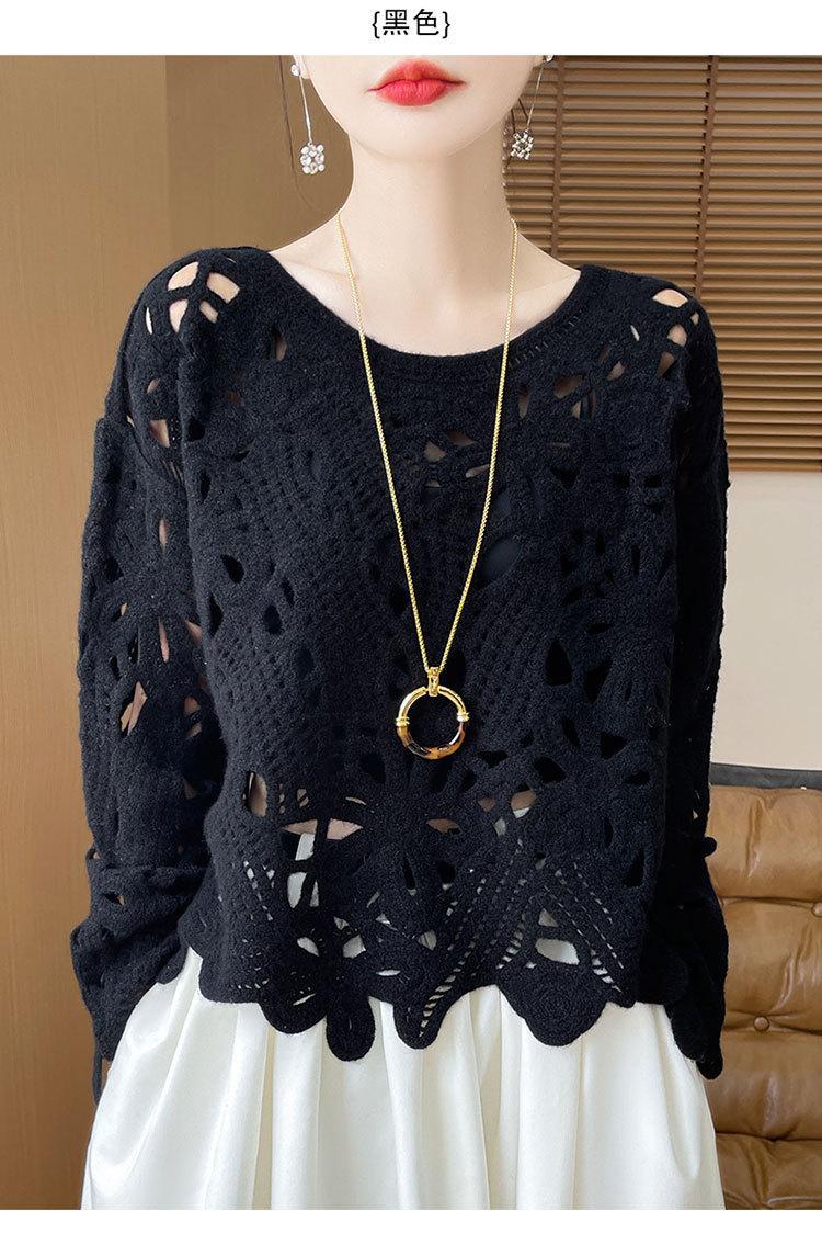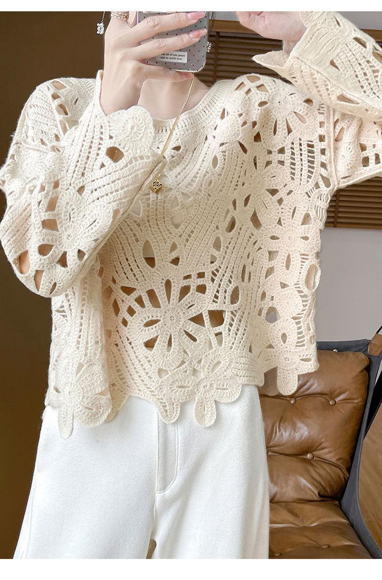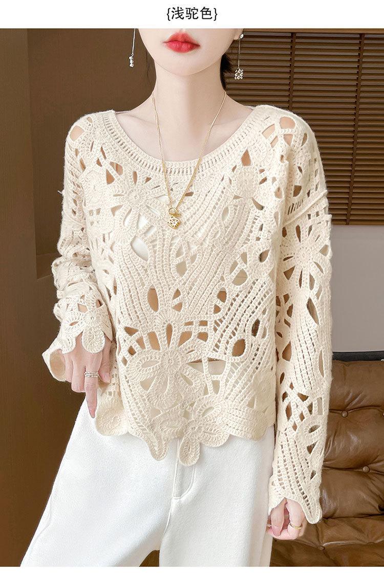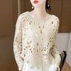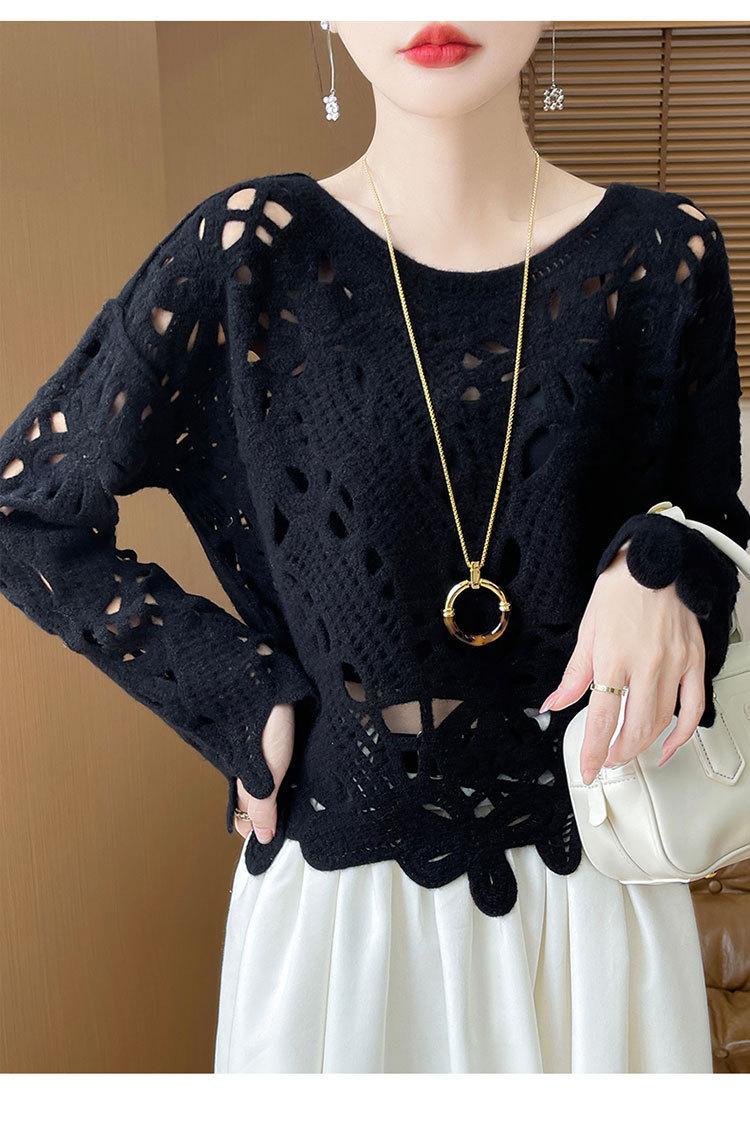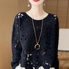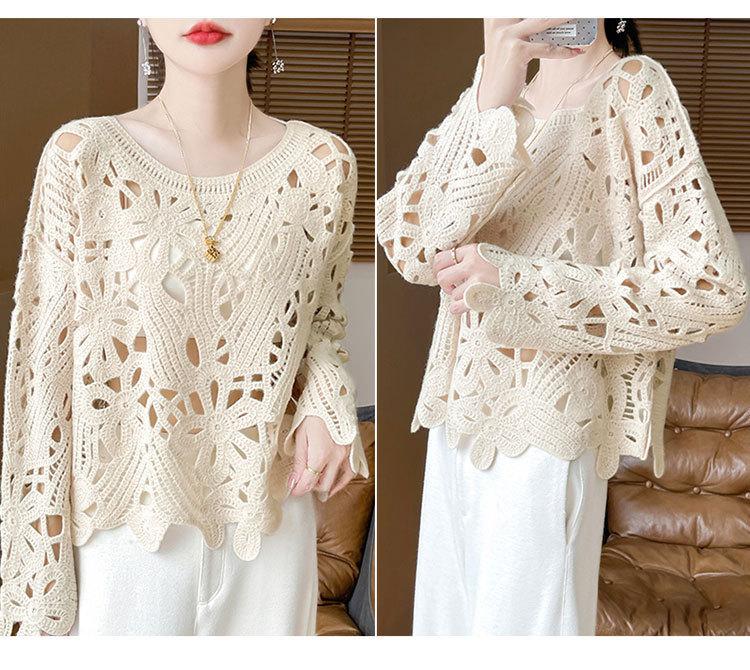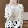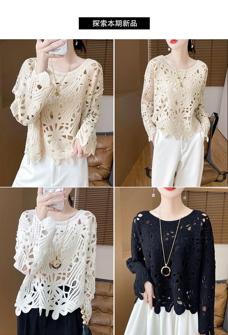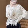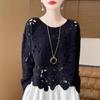 Cárdigan Otoño Temprano 2024 Top Calado Casual Cuello Redondo Manga Corta Larga Suéter Suelto Ajustado Ganchillo