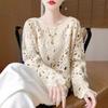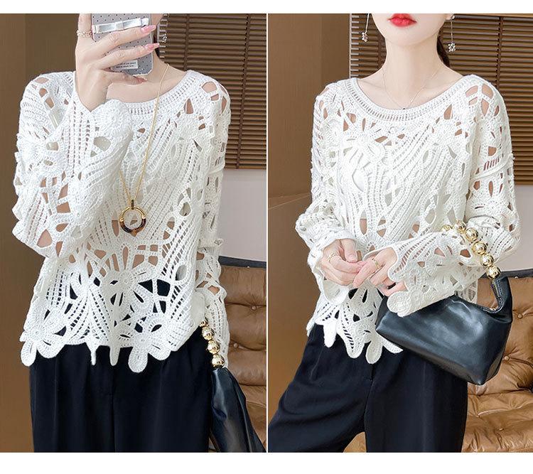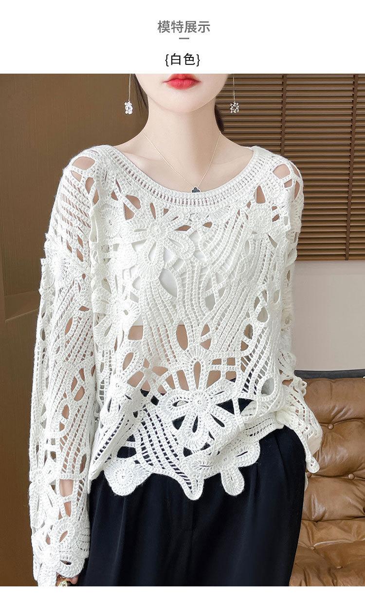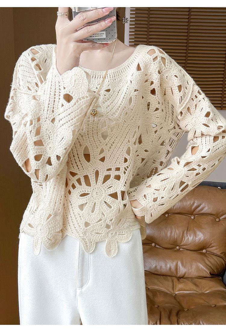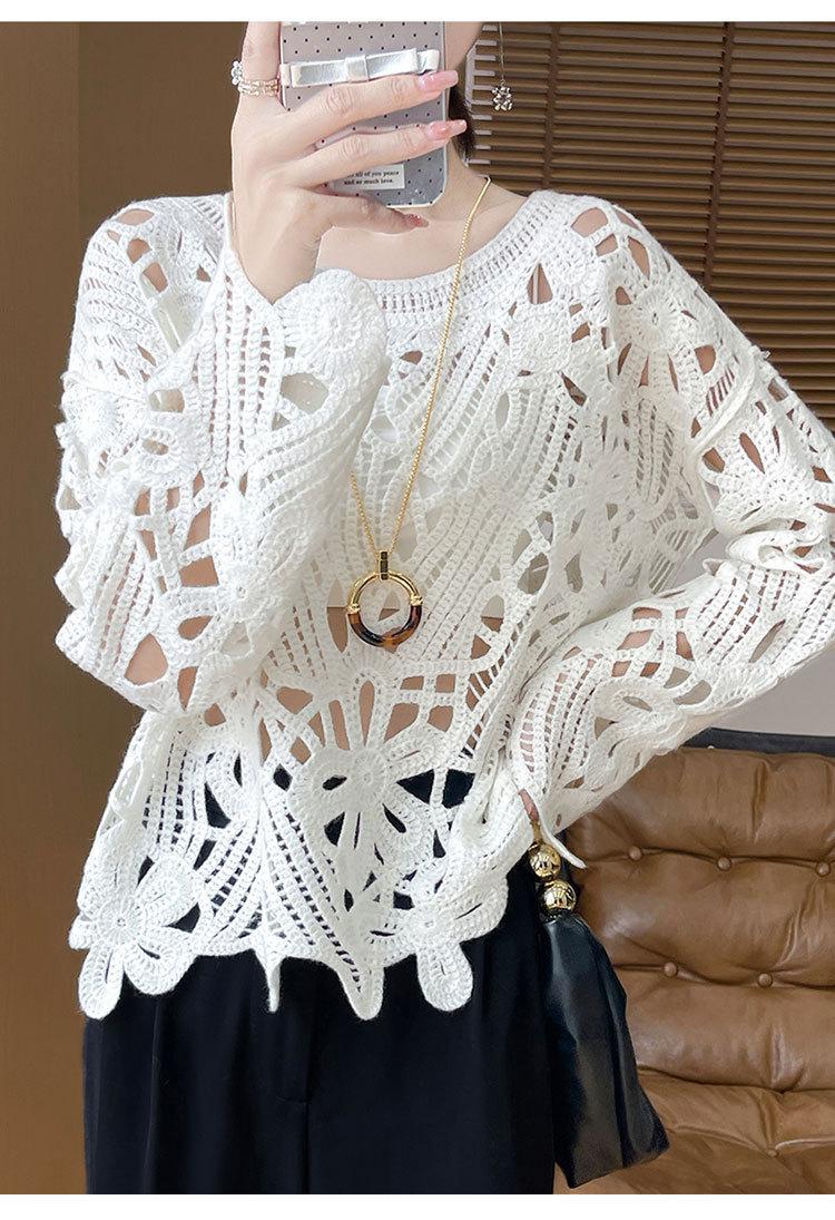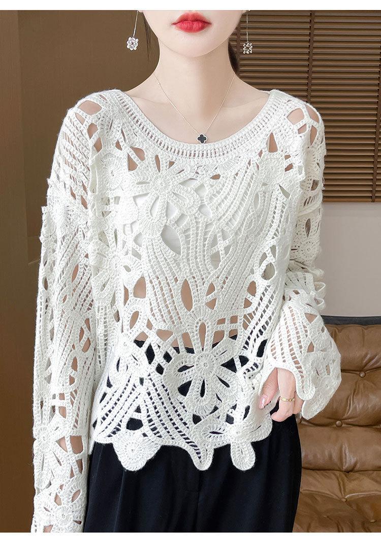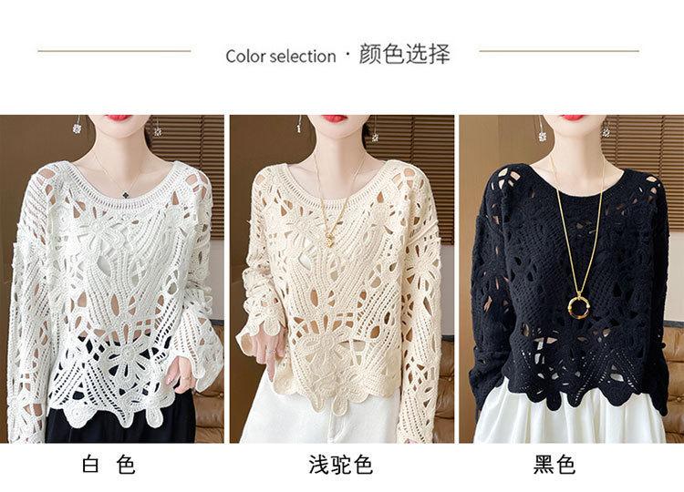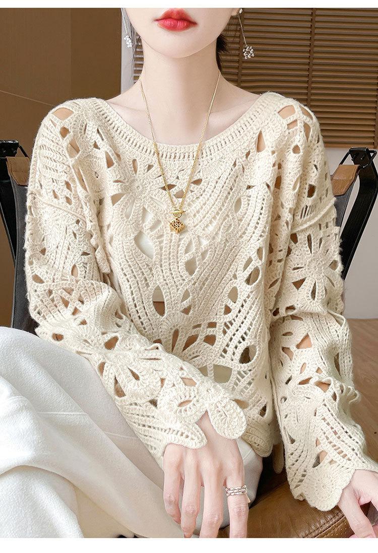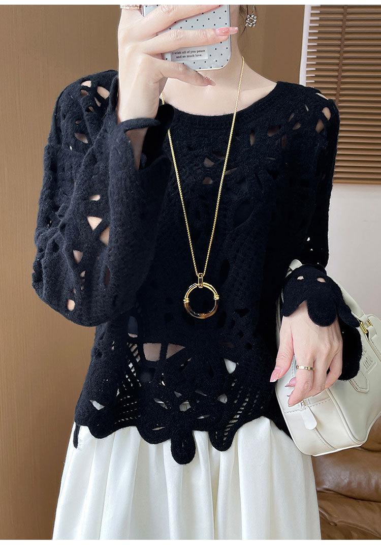 Cárdigan Otoño Temprano 2024 Top Calado Casual Cuello Redondo Manga Corta Larga Suéter Suelto Ajustado Ganchillo