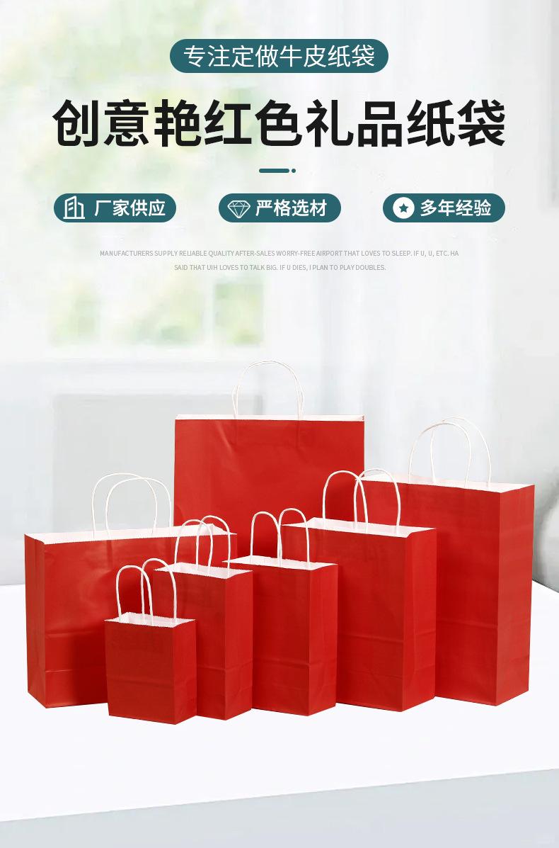 Bolsa de papel de regalo creativa de color rojo brillante, bolso grande para vacaciones, bolsa de embalaje de papel kraft blanco, venta al por mayor