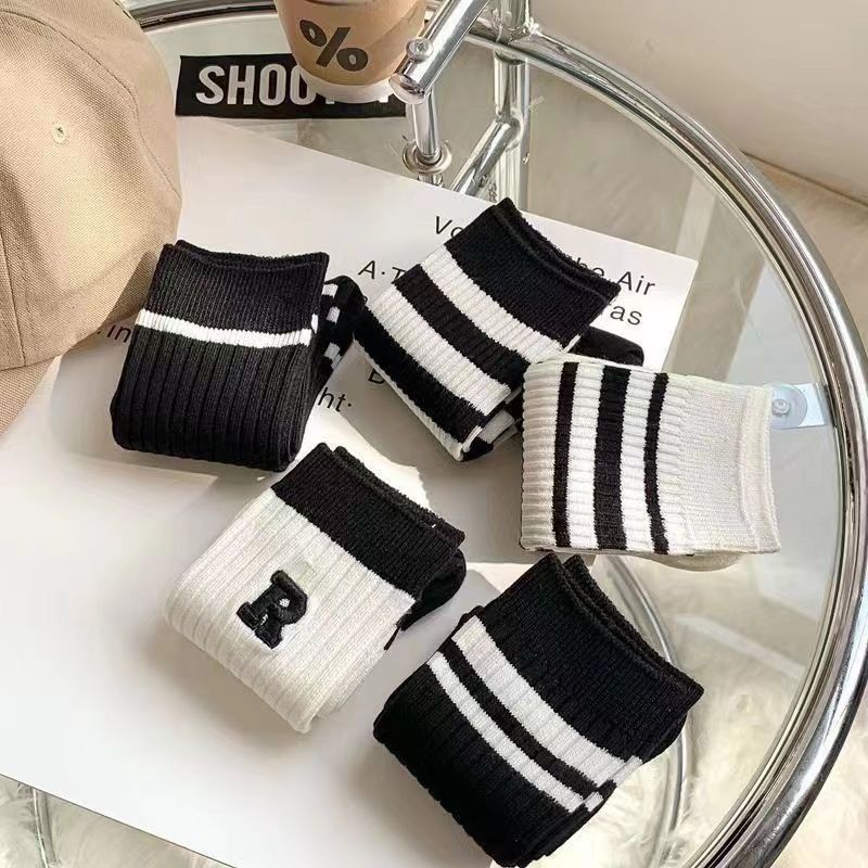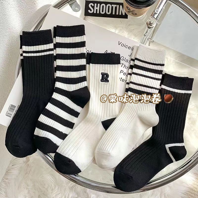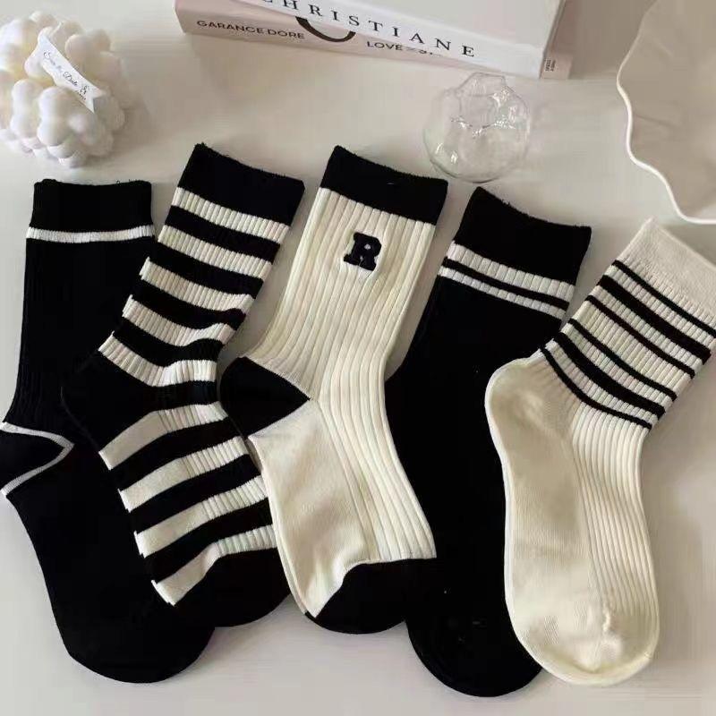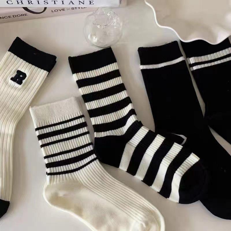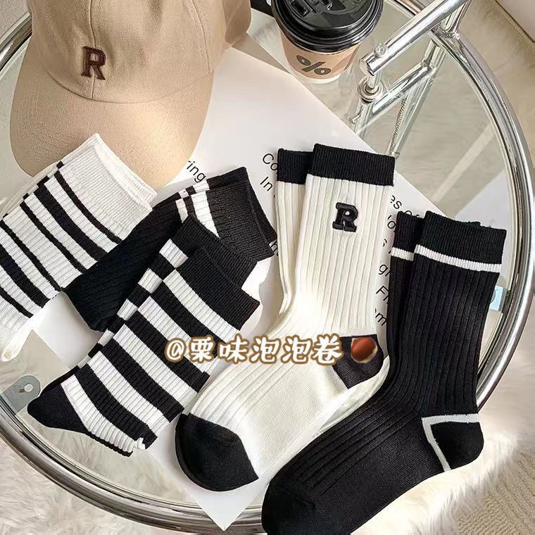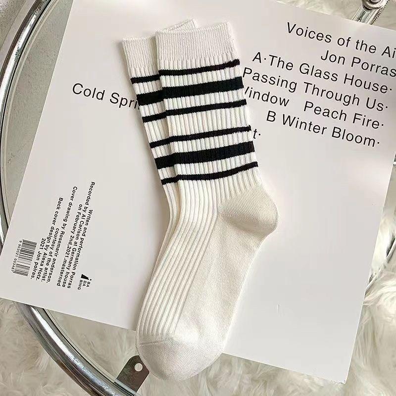 Medias largas transpirables de tubo negro y blanco para mujer, medias gruesas de otoño e invierno, calcetines de moda para mujer, calcetines de mediados de otoño, primavera y otoño, cómodos