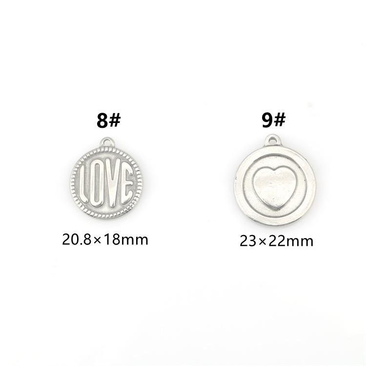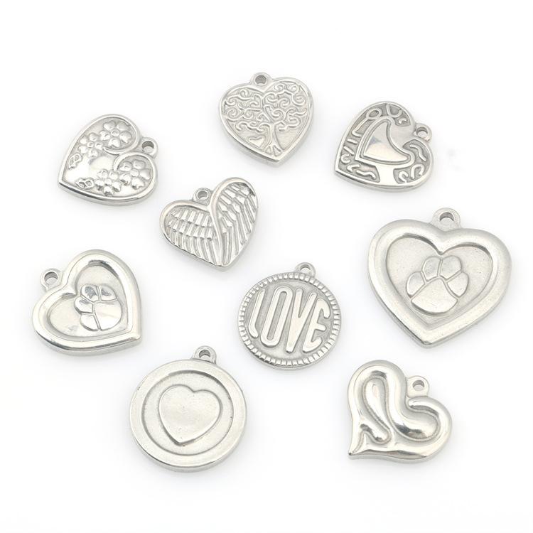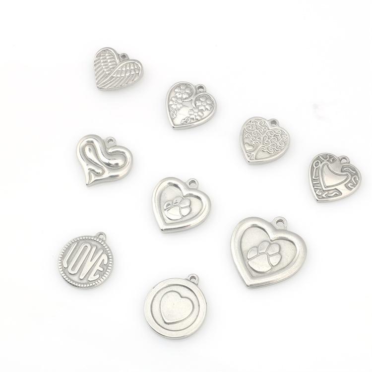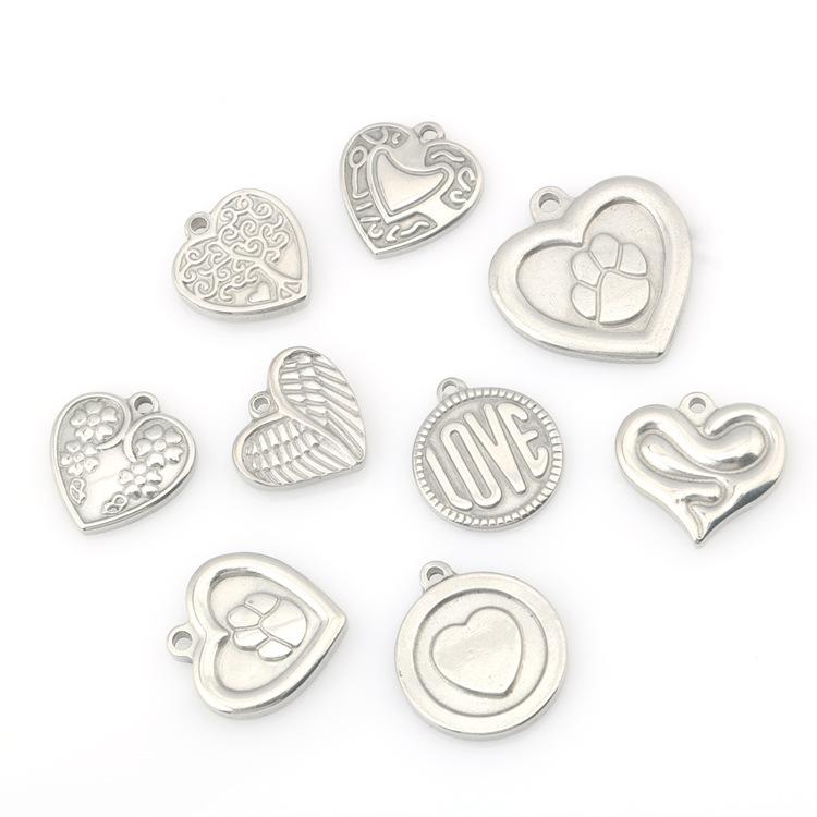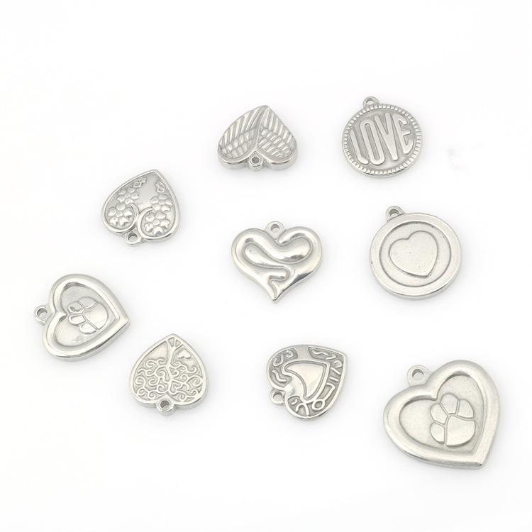 Colgante geométrico redondo de acero inoxidable con forma de corazón, pulsera, collar, accesorios de joyería de acero de titanio para bricolaje.