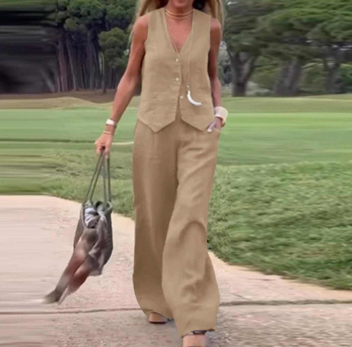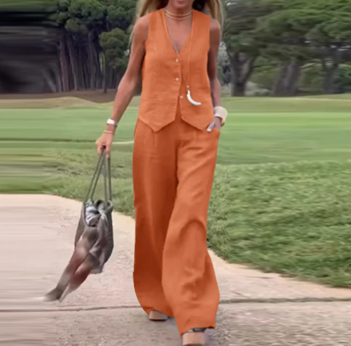 Conjunto informal de dos piezas con chaleco y pantalones de color liso para mujer, moda europea y americana, 2024