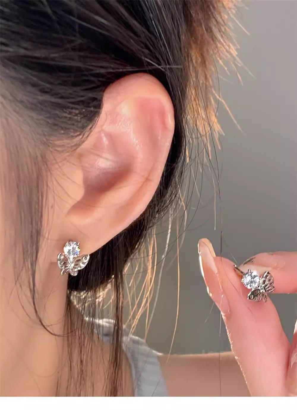 Pendientes de mariposa de circonita hueca, pendientes femeninos dulces y modernos, pendientes de diseño de nicho, hebilla de oreja de alta calidad