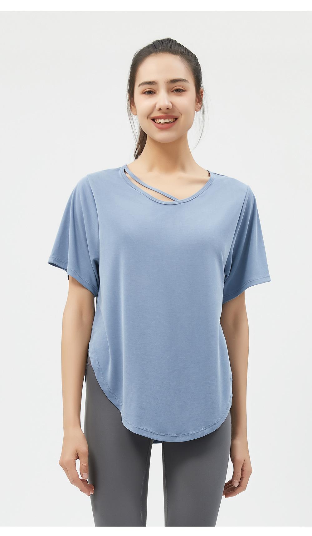 Ropa de yoga holgada de manga corta para mujer, blusa deportiva de verano de alta gama, top de fitness profesional, de secado rápido, para correr