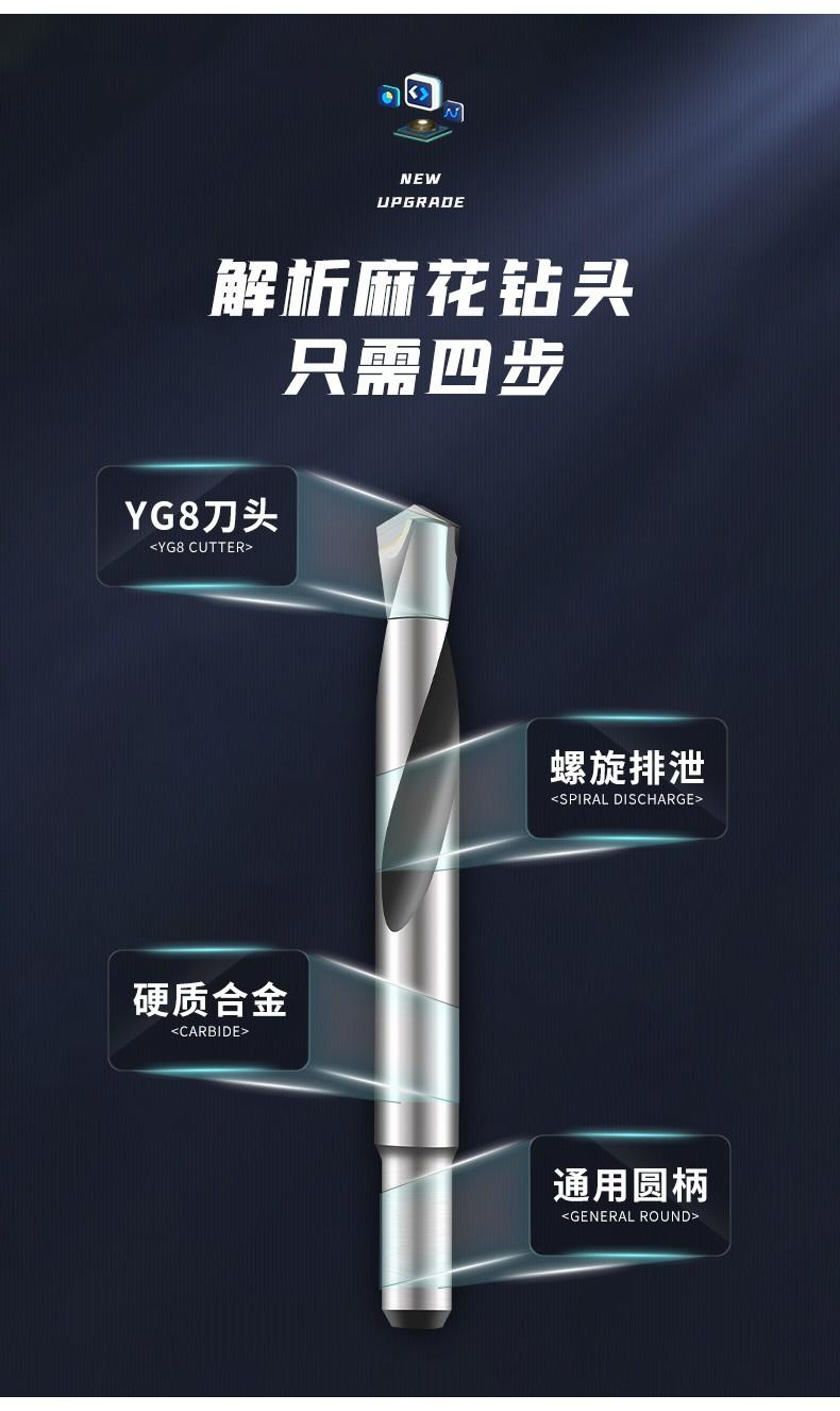 Broca de aleación, acero de tungsteno, broca helicoidal dura, acero inoxidable, acero para resortes, ángulo de acero, hierro fundido, broca helicoidal de metal especial