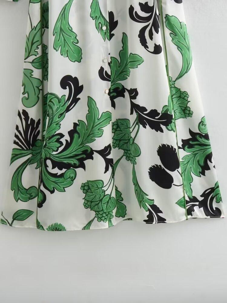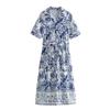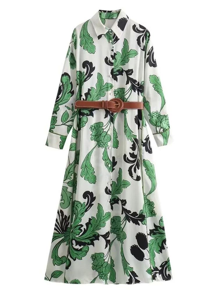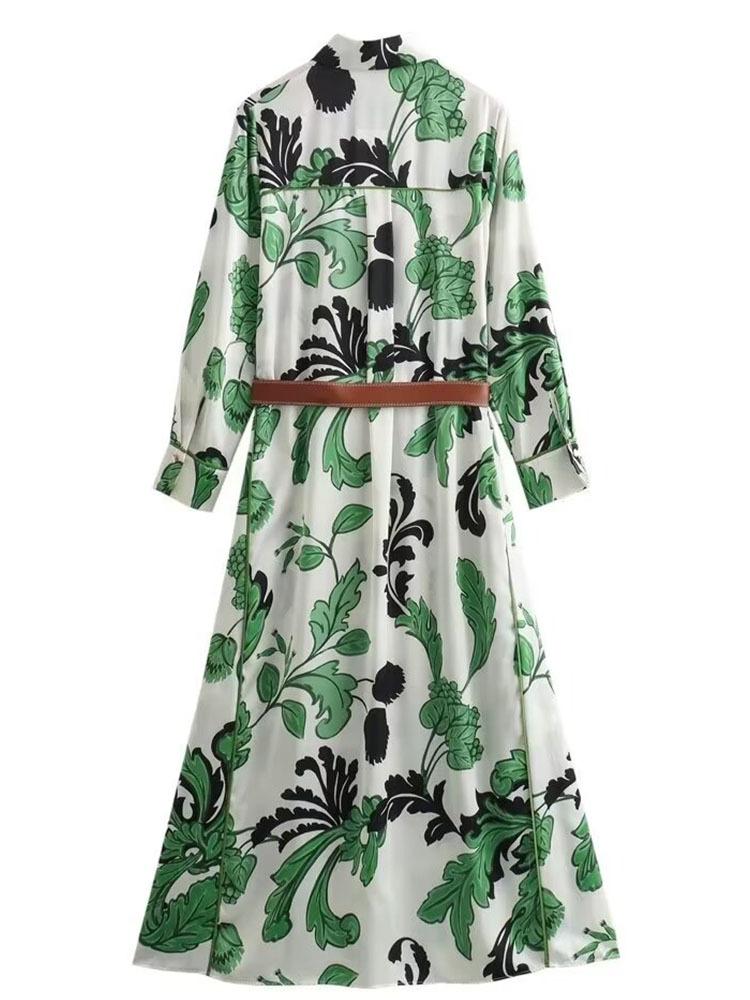 Vestido estampado con cinturón elegante e informal estilo pastoral de cintura nueva de primavera y verano de Europa y América 2024