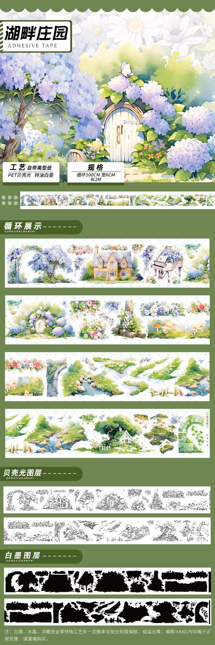 Cinta adhesiva de cáñamo para cuentas de mano, paisajismo, carcasa ligera, impermeable, pegatina de collage de PET, material decorativo, pegatina de collage de cuentas de mano