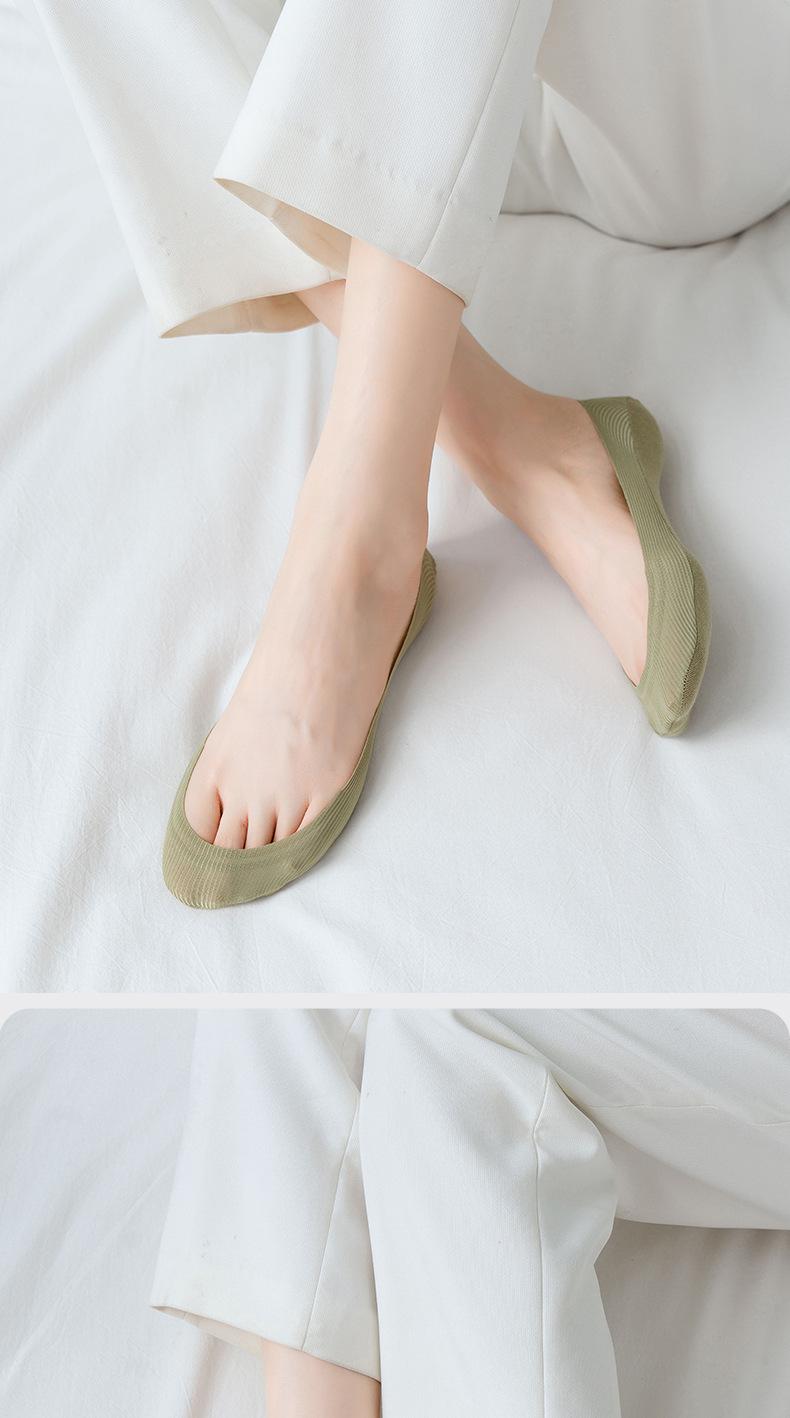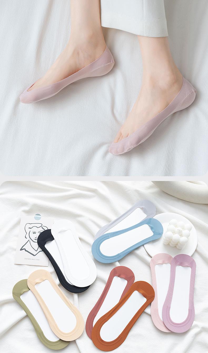 Calcetines náuticos de seda de hielo para mujer, de algodón de verano, finos, antideslizantes, de tacón alto, de corte bajo, invisibles, de algodón para mujer