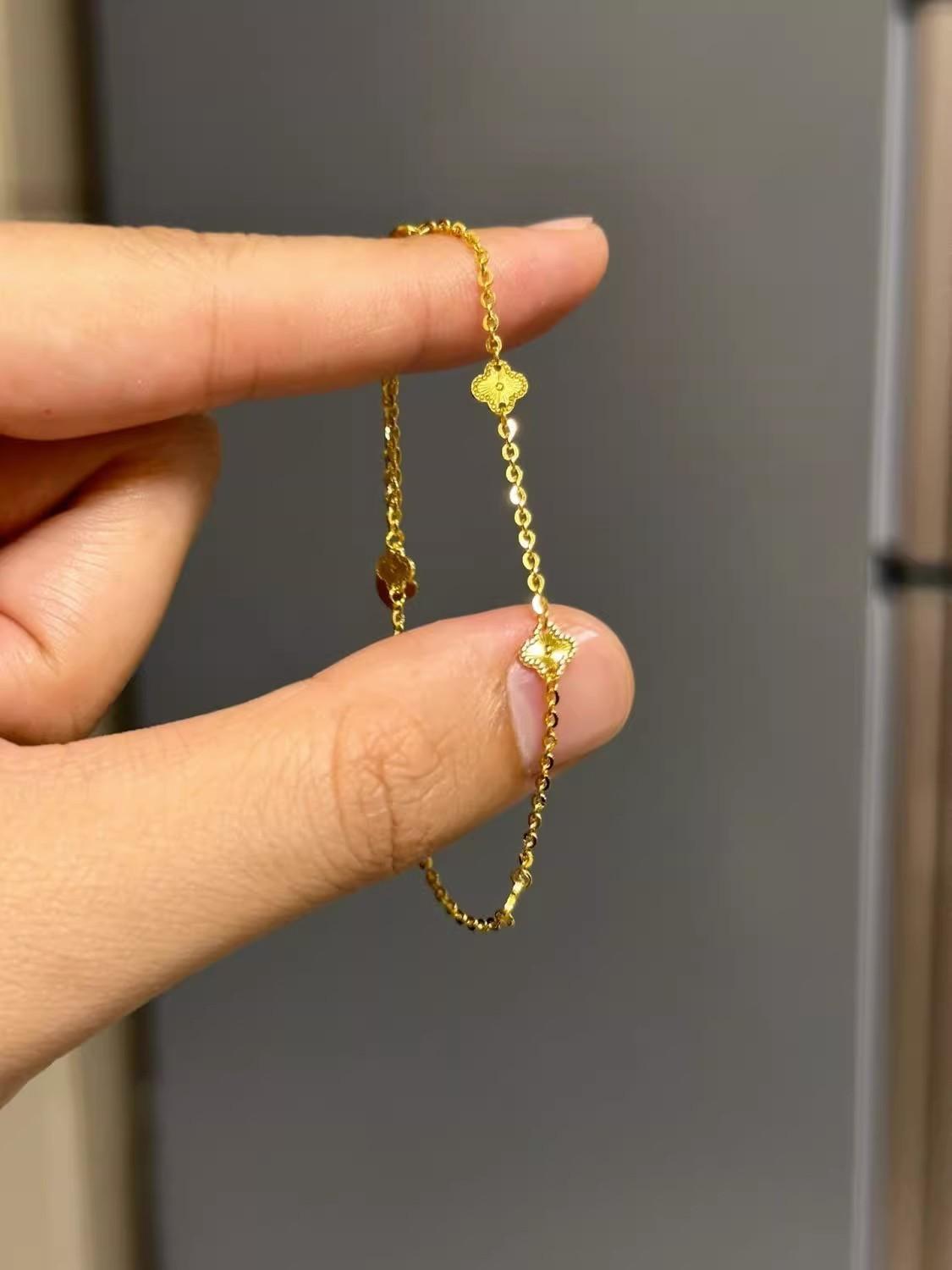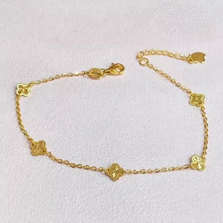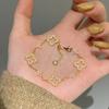 Pulsera Exquisita de Lujo Ligero Color Oro Trébol de Cuatro Hojas para Mujer Diseño Nicho de Lujo Ligero Elegante Versátil Pulsera Joyería con Sentido de Alta Gama