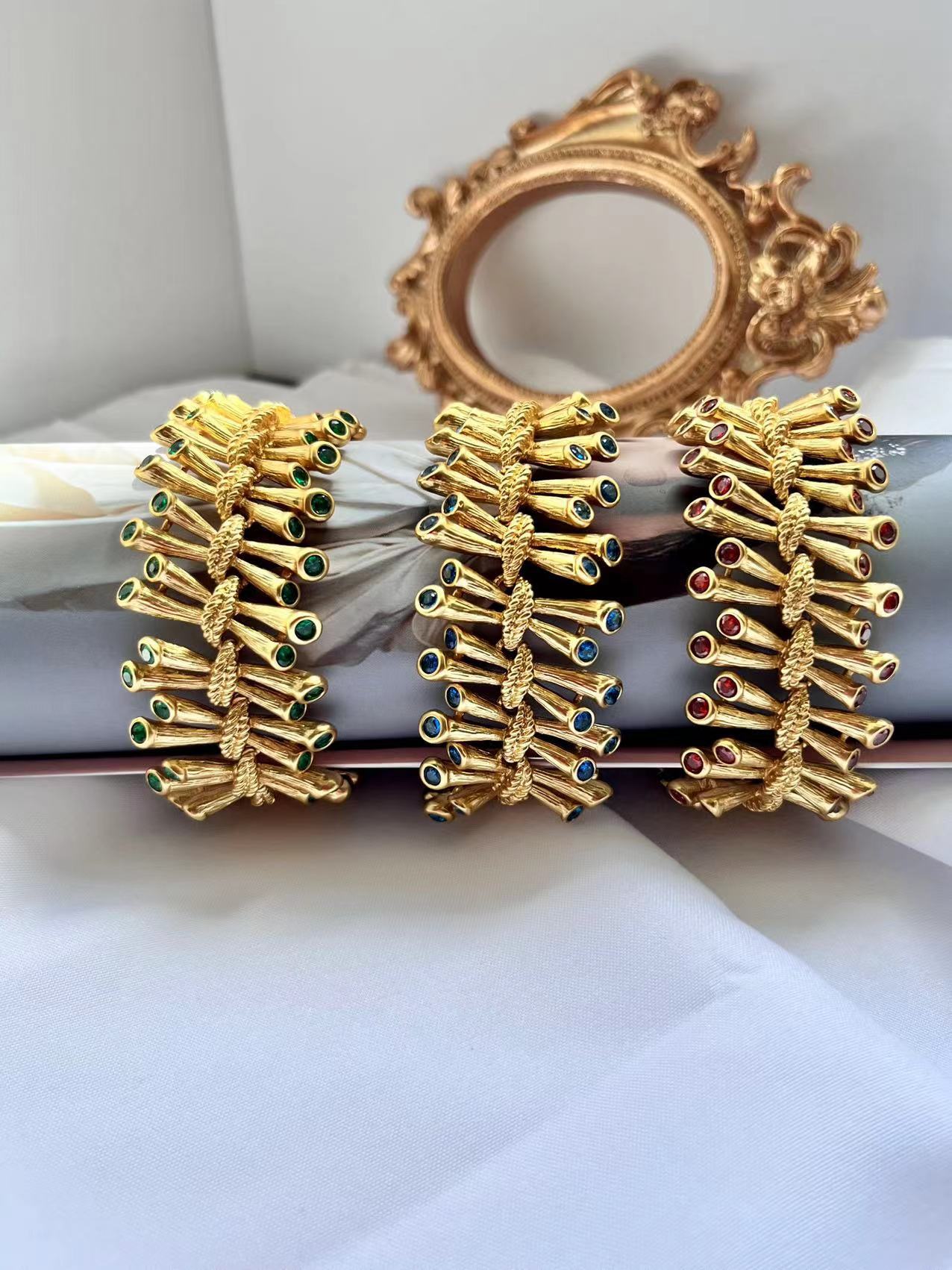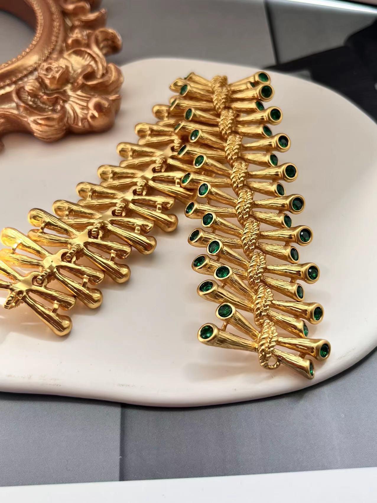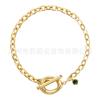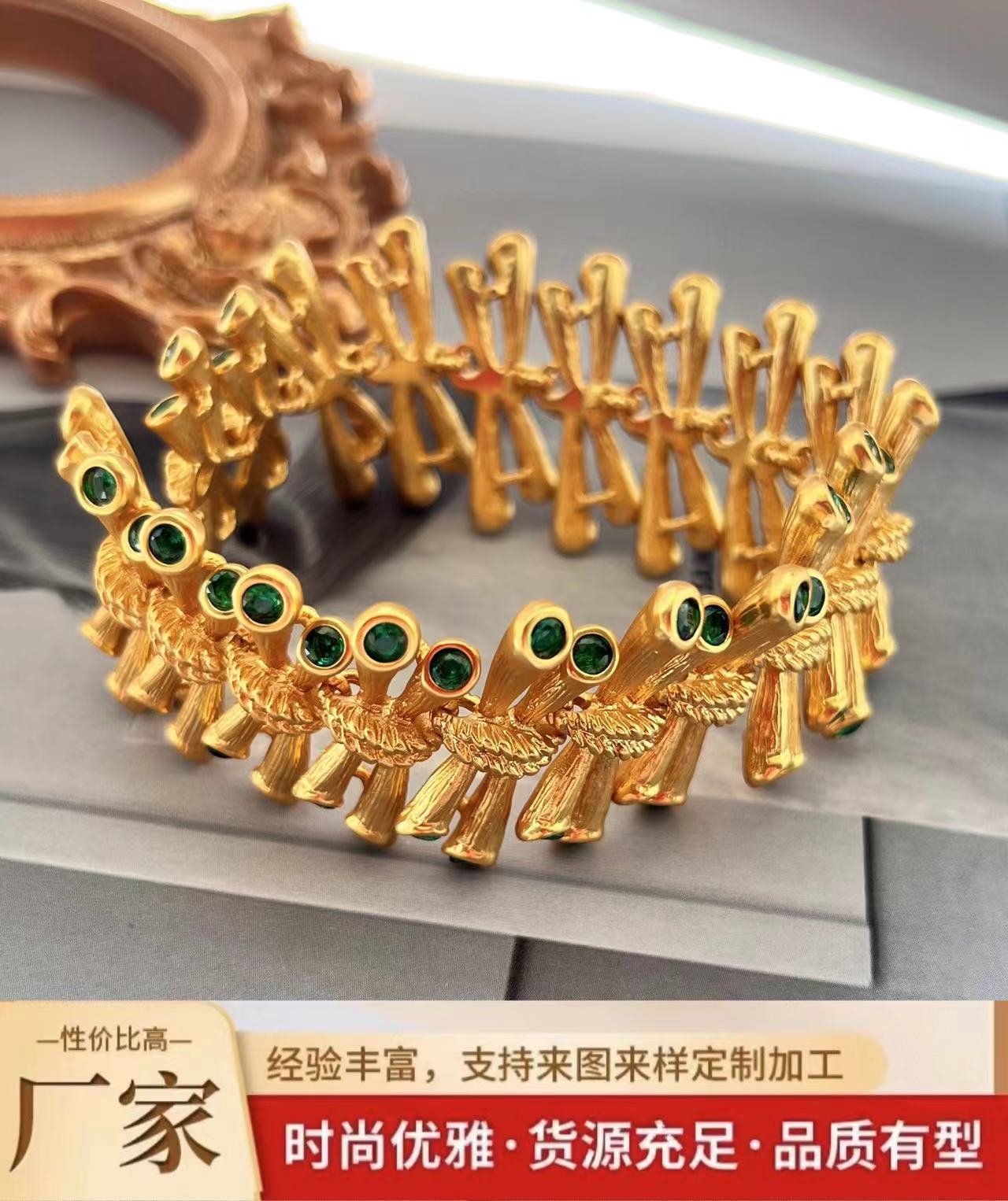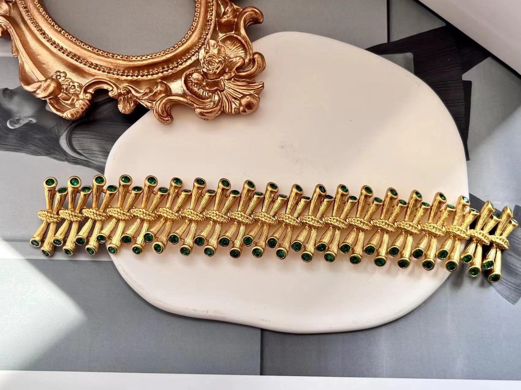 Pulsera Cuifa Verde Medio Antigua Chapada en Oro Real con Zircón Verde Incrustado, Pulsera de Moda Fresca Pequeña
