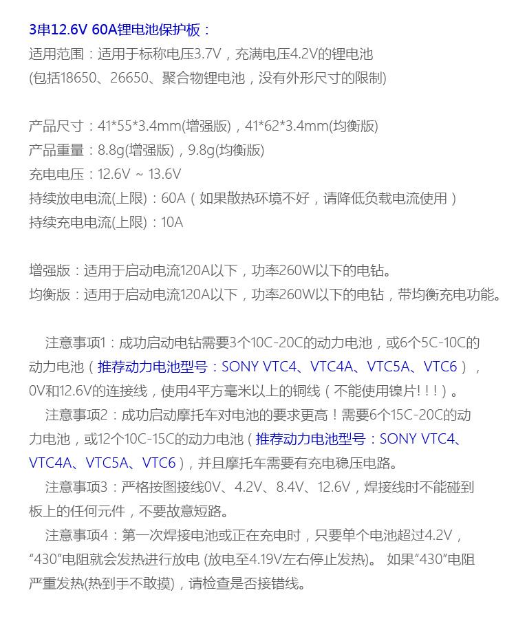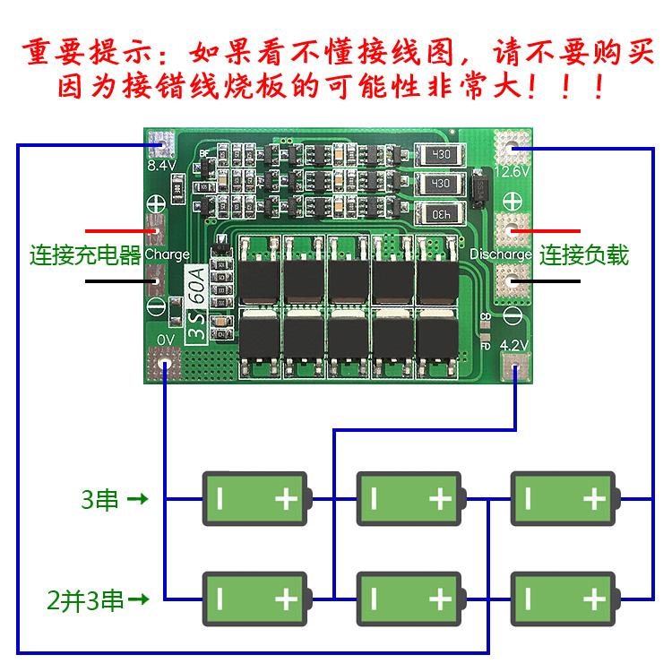 Placa de protección de batería de litio 18650 de 3 cadenas, 11,1 V y 12,6 V, versión equilibrada mejorada, división de corriente de 60 A