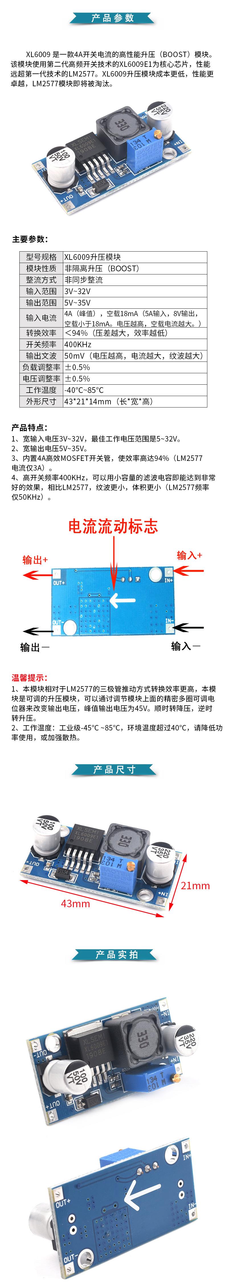 Módulo elevador XL6009 Módulo de potencia CC-CC Salida ajustable Super LM2577 Corriente 4A