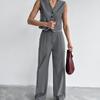 Transfronterizo 2024 Primavera y Verano Nueva Moda Traje de Pantalón sin Mangas Europeo y Americano INS Casual Bolsillo Chaleco Conjunto de Dos Piezas para Mujer