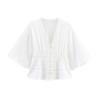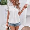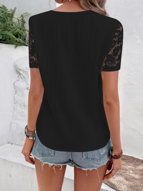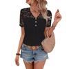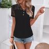 2024 Transfronterizo Amazon Temu Primavera y Verano Ropa Europea y Americana Color Puro Encaje Manga Corta Cuello V Camisa Moderna y Versátil