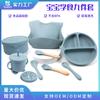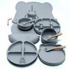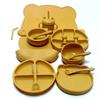 Plato de cena de oso de dibujos animados, juego de vajilla de silicona de seis piezas para niños, suplemento alimenticio para bebés, tazón con ventosa, cuchara, madre y bebé