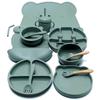 Creamy-white (3 Grid 4 silicone plate + bear bowl + children's bowl + mat + Cup tube + Bib + wooden handle spoon Fork + full silicone spoon Fork + short silicone spoon Fork)