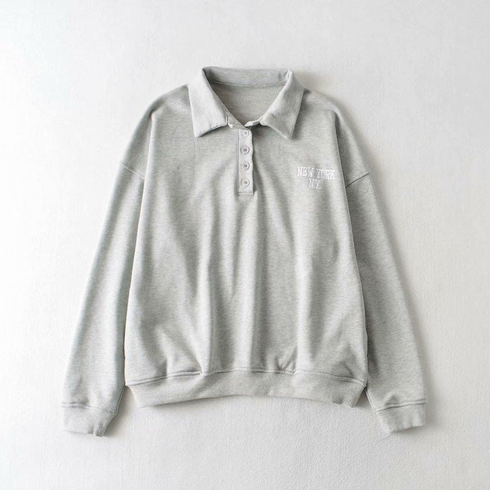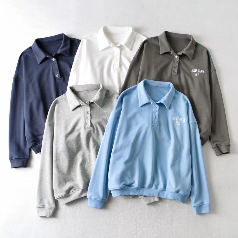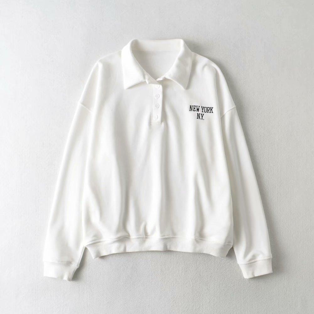 Suéter de cuello polo bordado con letras sueltas de estilo perezoso, abrigo de estudiante de otoño 2021, moda femenina