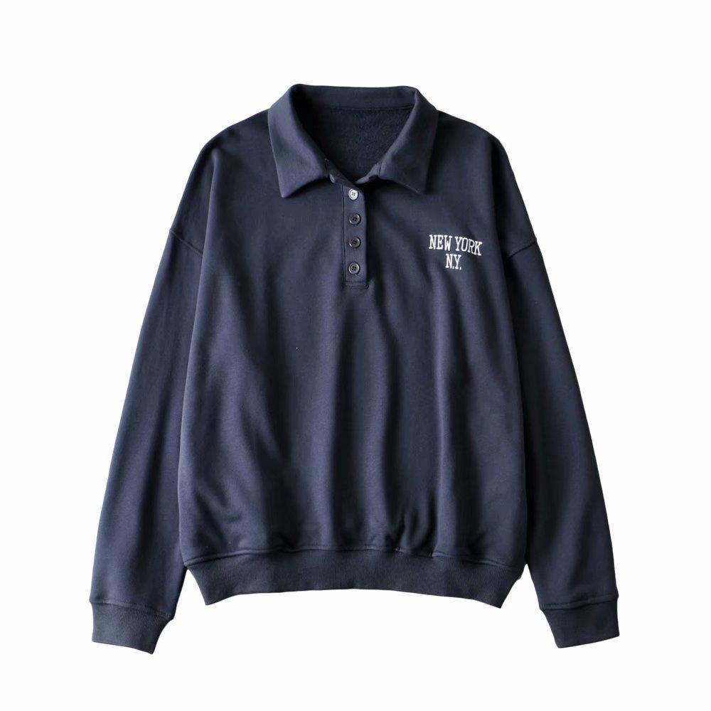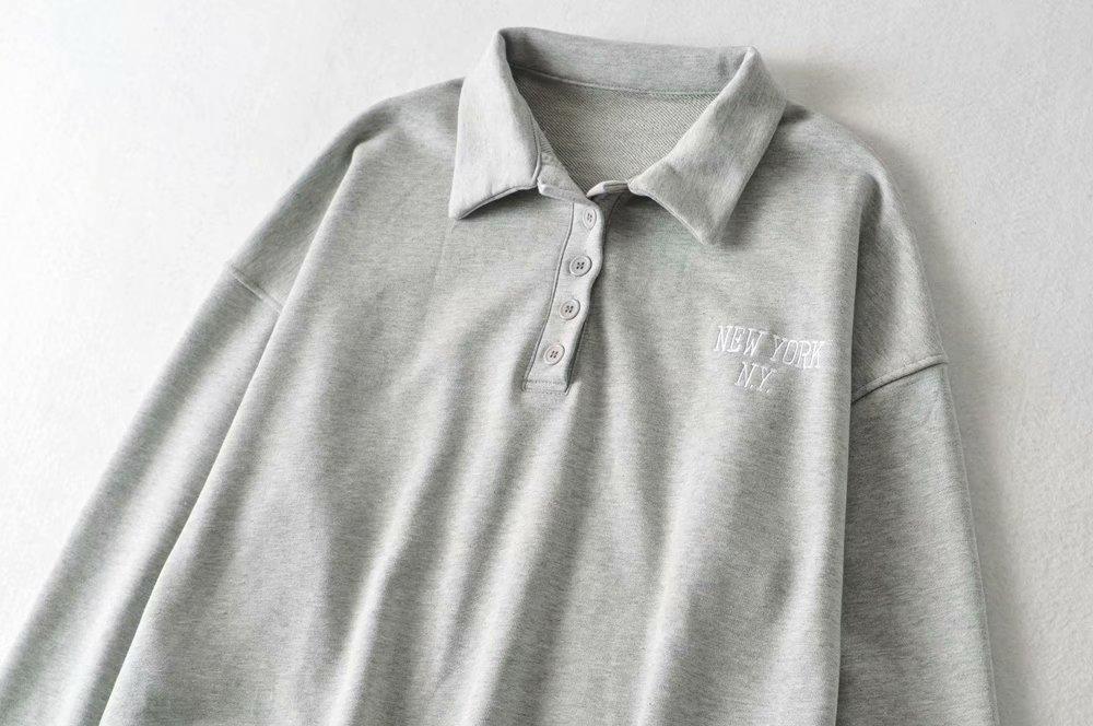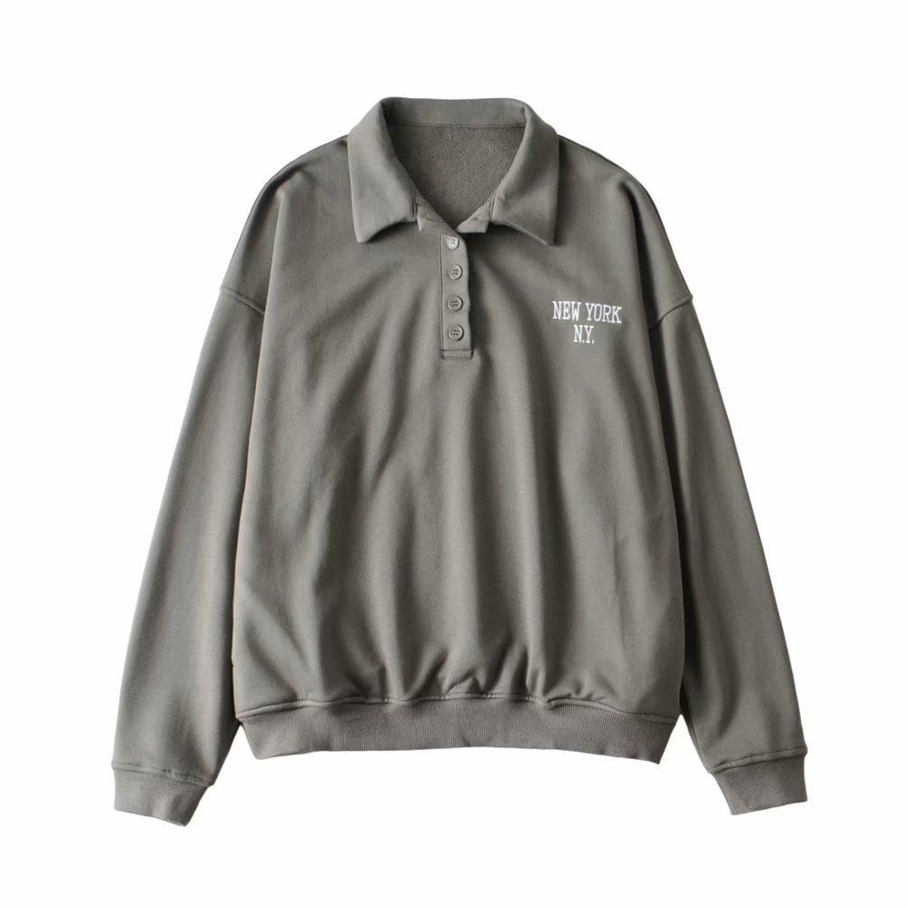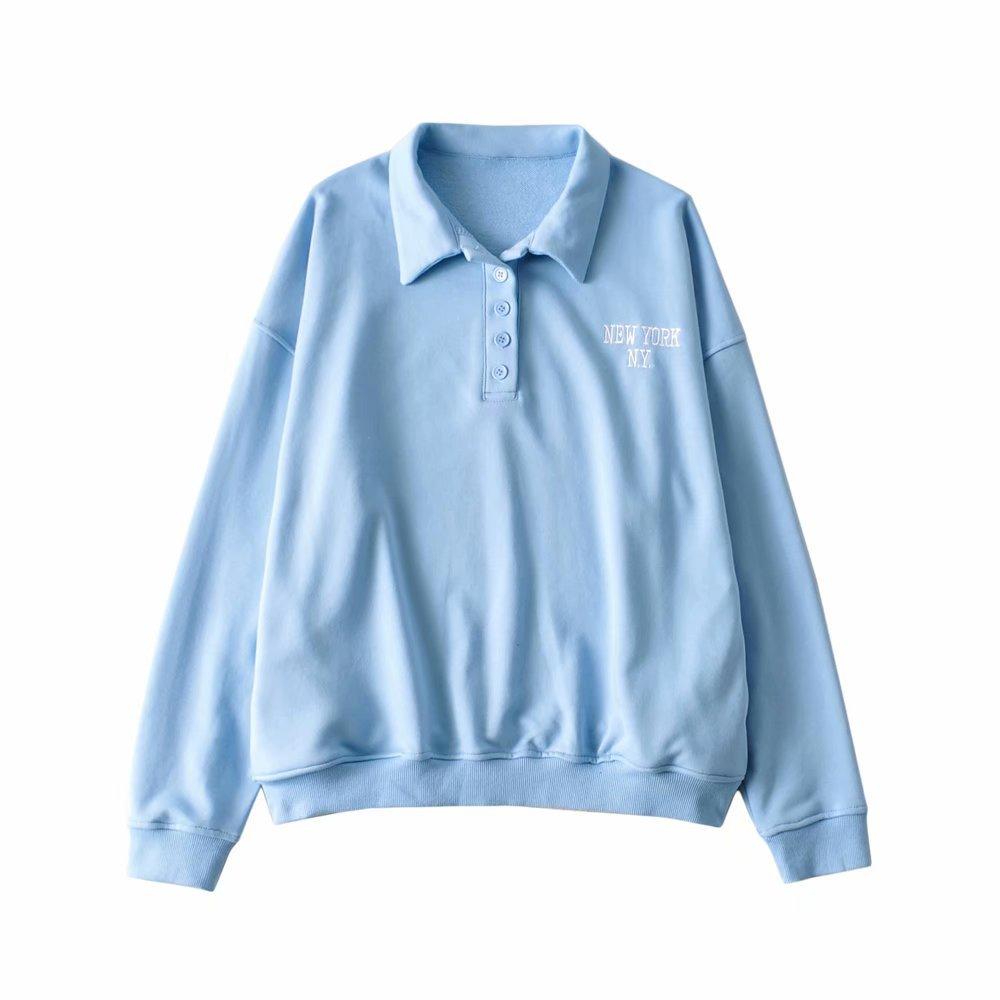 Suéter de cuello polo bordado con letras sueltas de estilo perezoso, abrigo de estudiante de otoño 2021, moda femenina