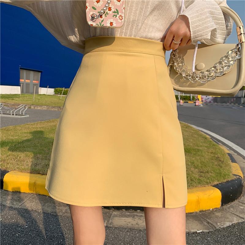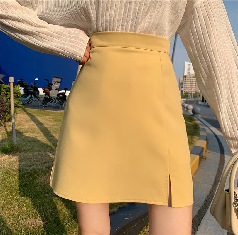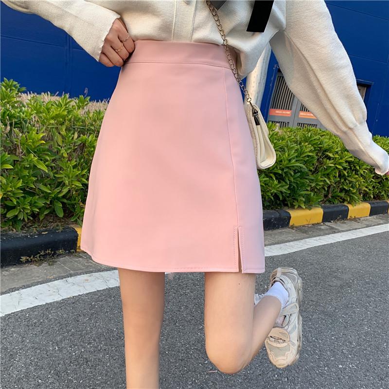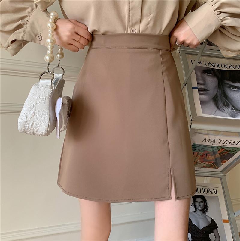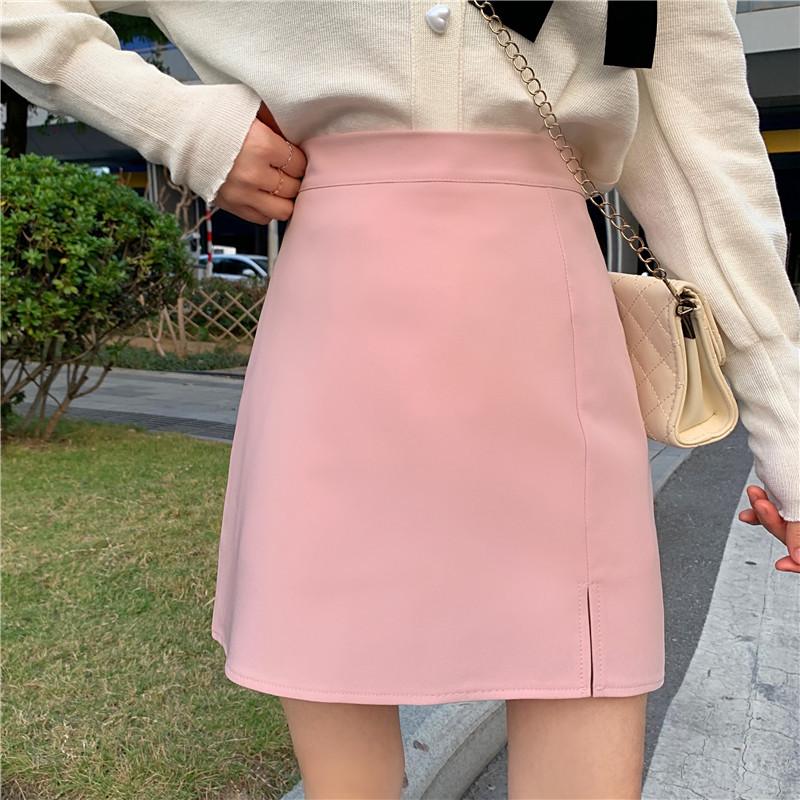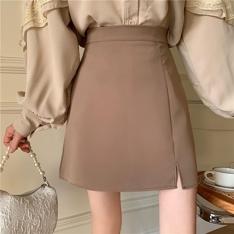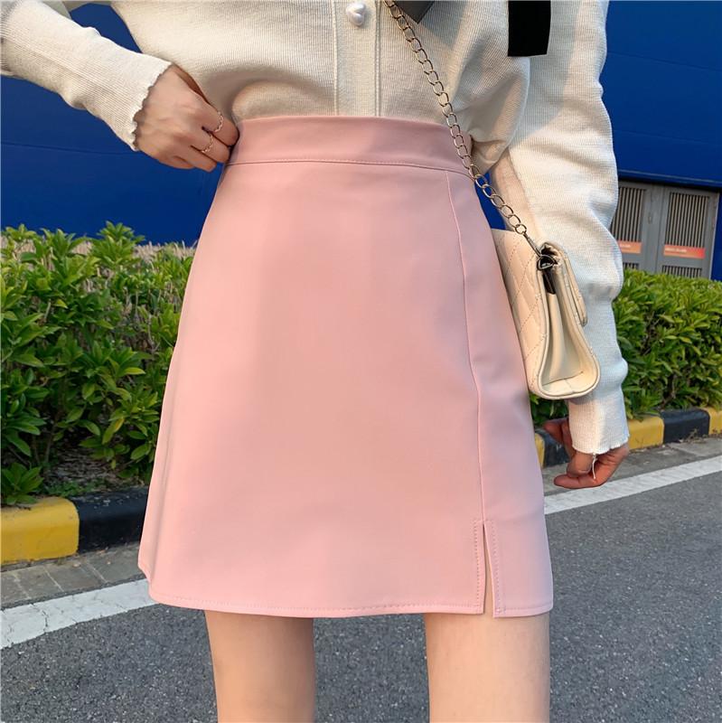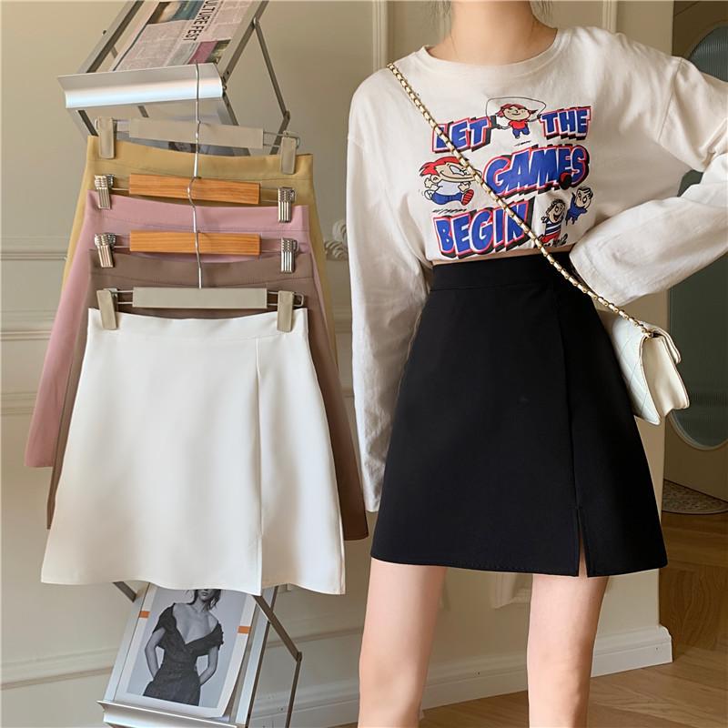 5 Colores Disponibles, Falda Básica A-Line con Abertura en Color Caramelo, Falda Versátil de Cintura Alta Estilo Coreano 2025 para Estudiantes