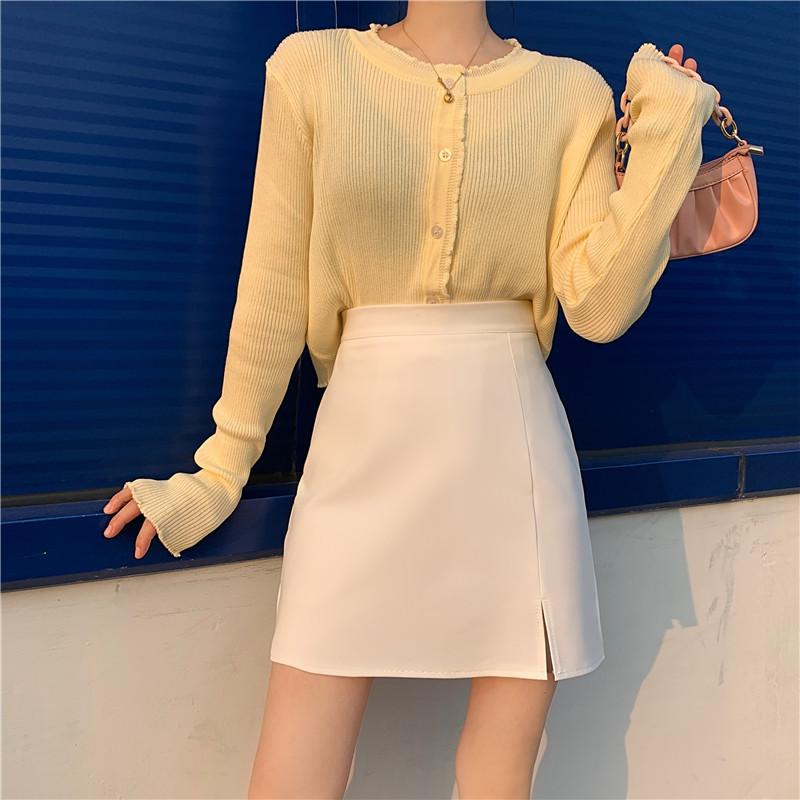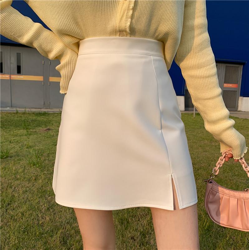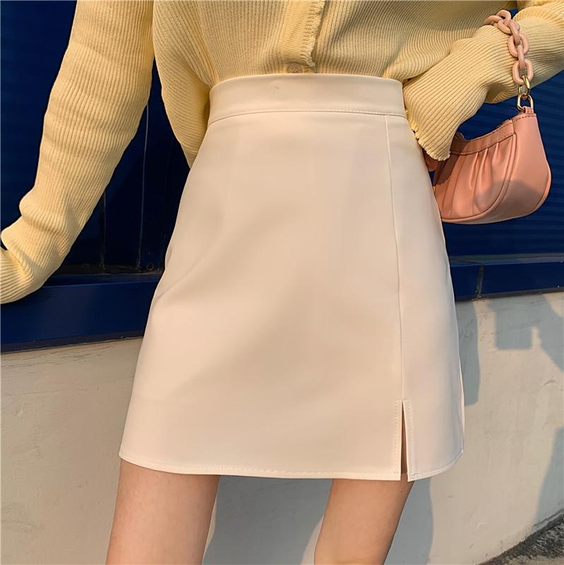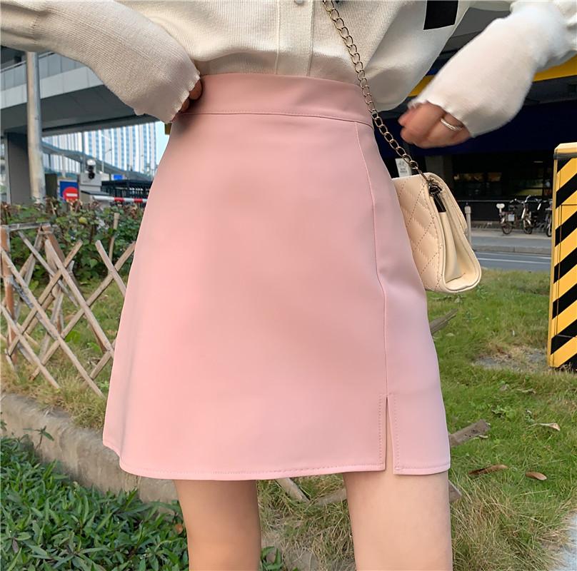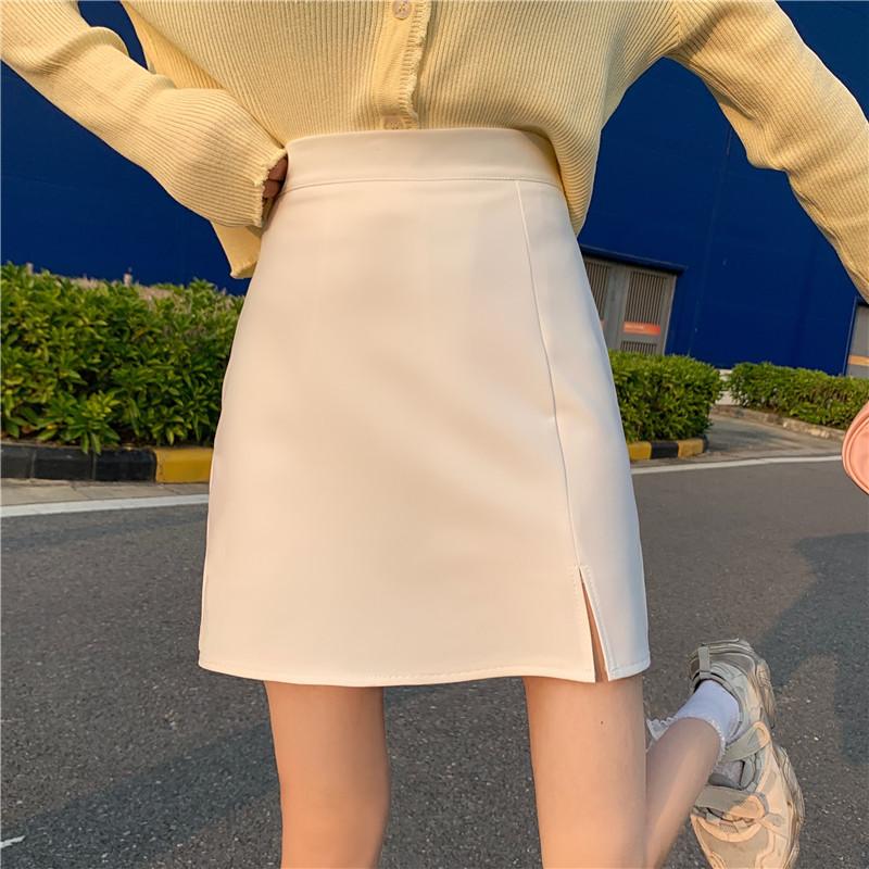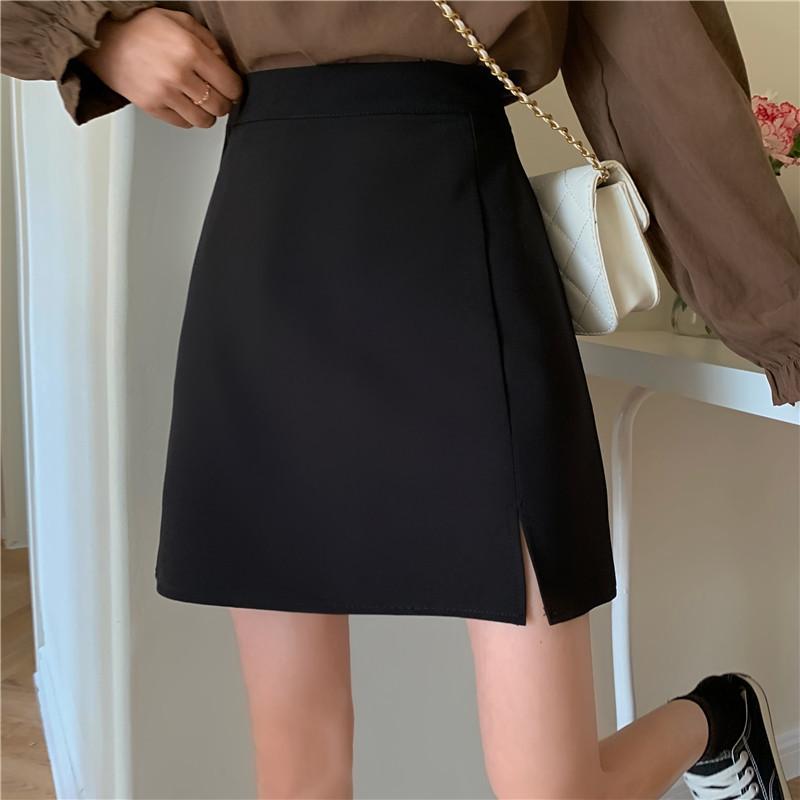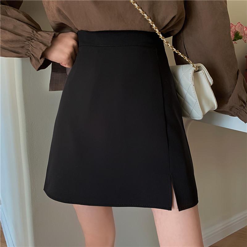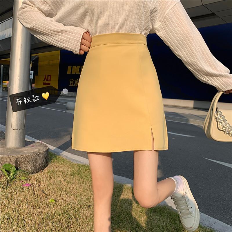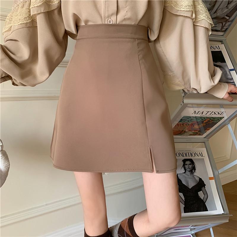 5 Colores Disponibles, Falda Básica A-Line con Abertura en Color Caramelo, Falda Versátil de Cintura Alta Estilo Coreano 2025 para Estudiantes