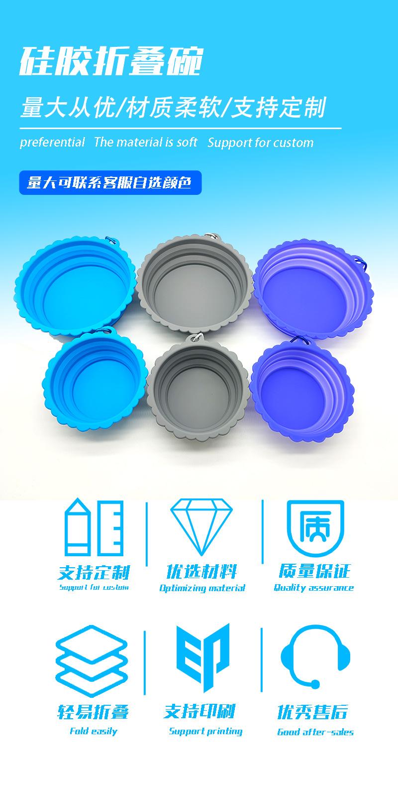Los fabricantes suministran cuencos plegables de silicona para mascotas, cuencos portátiles para comida de perros al aire libre, vajilla de alimentación, cuencos para gatos para viajes al aire libre.