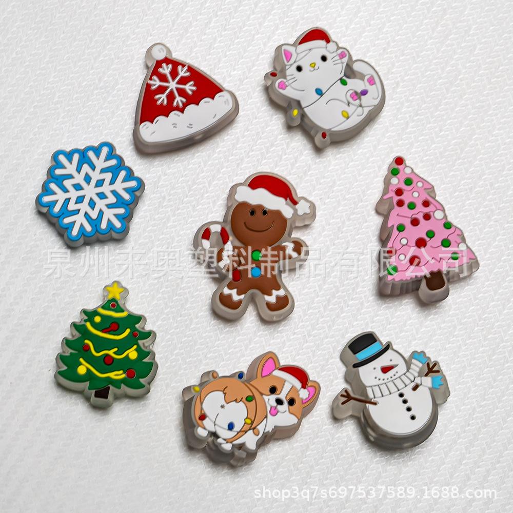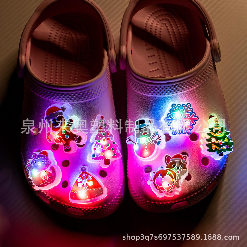 Zapatos de Jardín de Venta Caliente Transfronteriza DIY Abalorios para Zapatos Accesorios en Stock Dibujos Animados Navidad Luz LED Intermitente Zapatos con Agujeros Accesorios de Luz para Zapatos de Flores